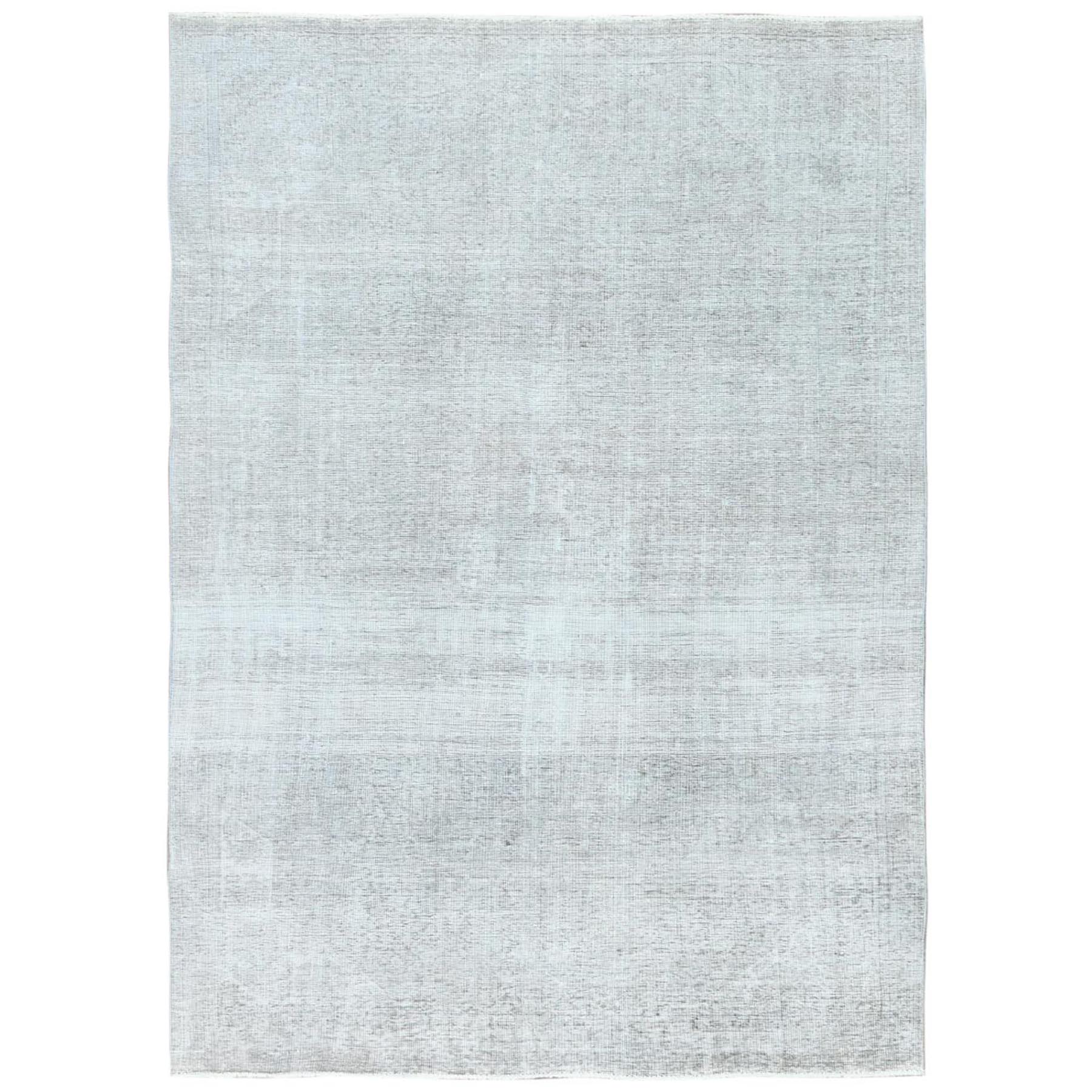 7'x10'2" Light Gray, Hand Knotted Vintage Persian Tabriz, Shaved Down Rustic Look, Worn Wool, Oriental Rug FWR492630
