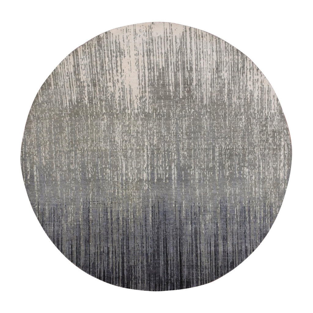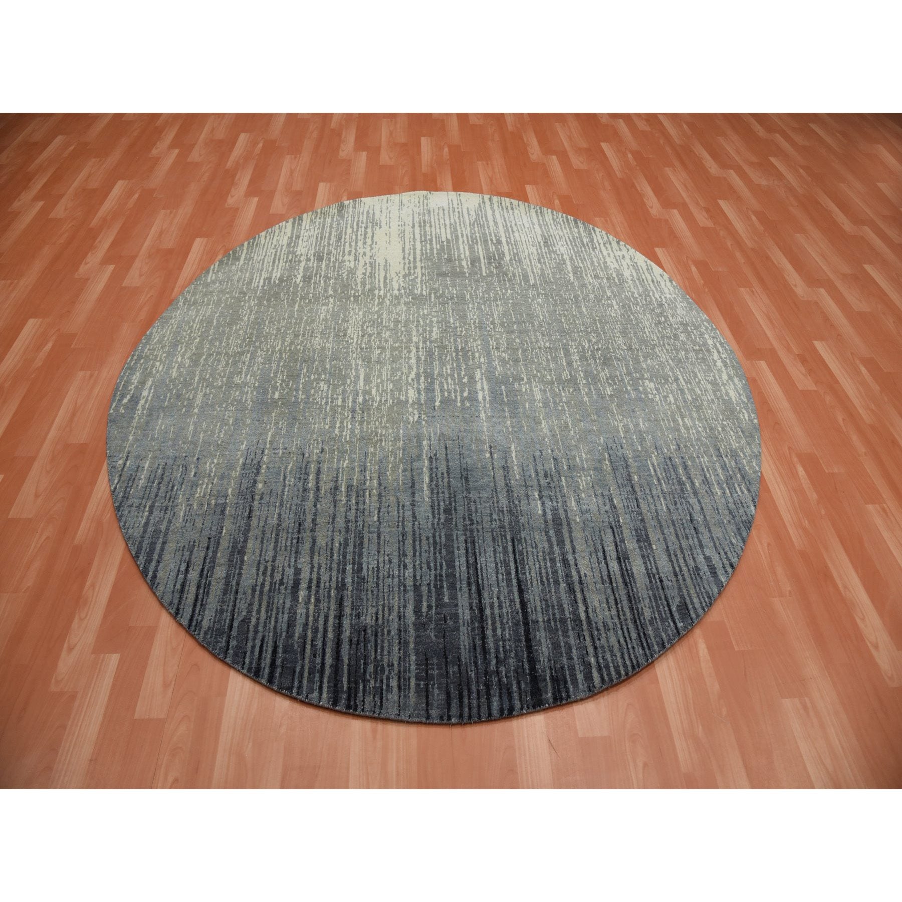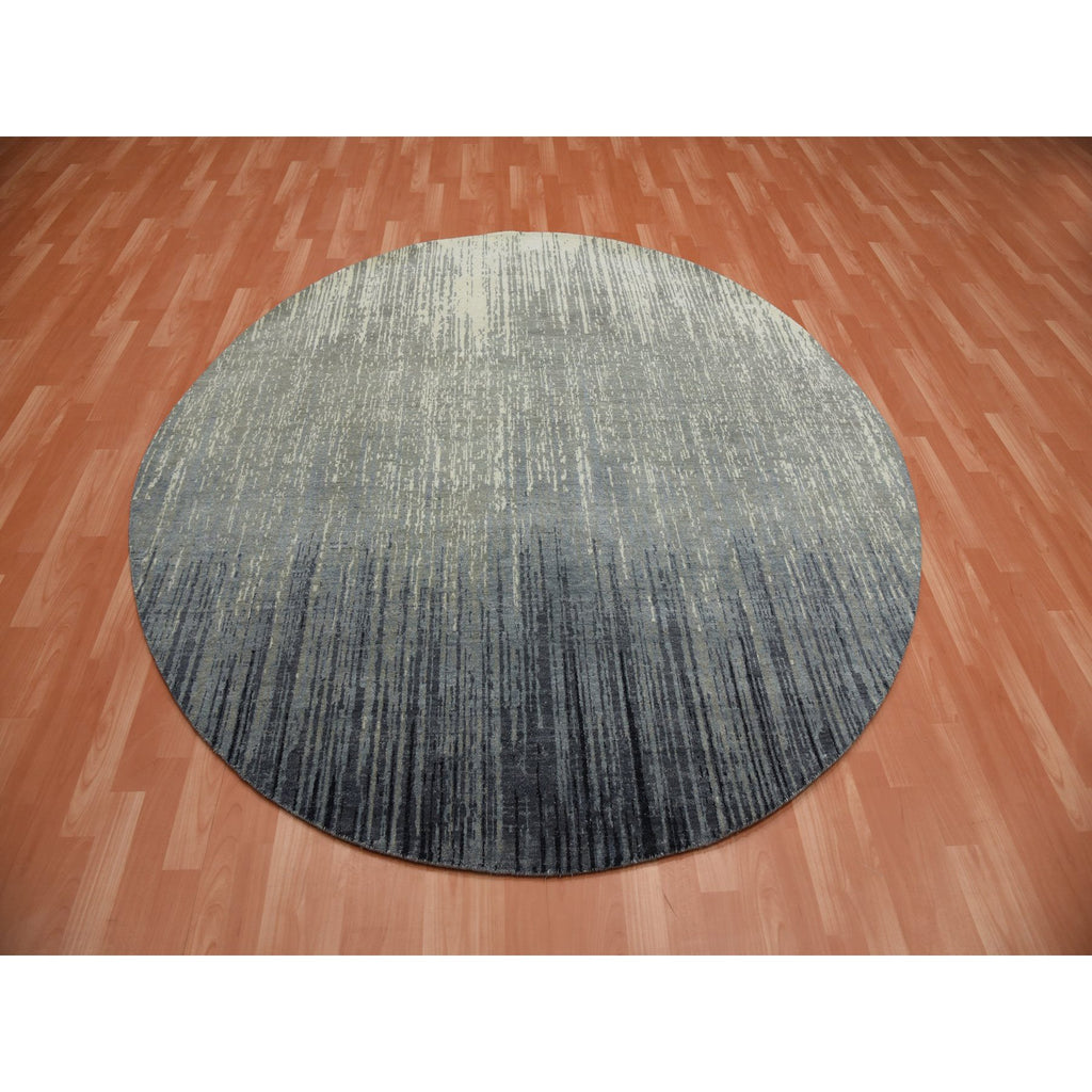 7'x7'2" Gray And Black Densely Woven Hand Knotted Modern Ombre Design Pure Wool Round Oriental Rug FWR450882