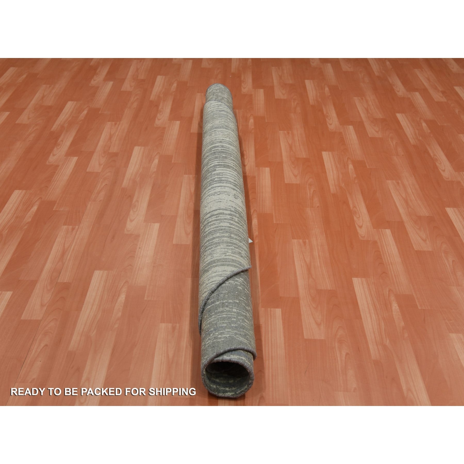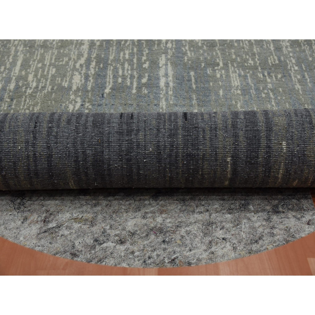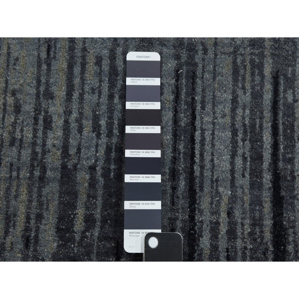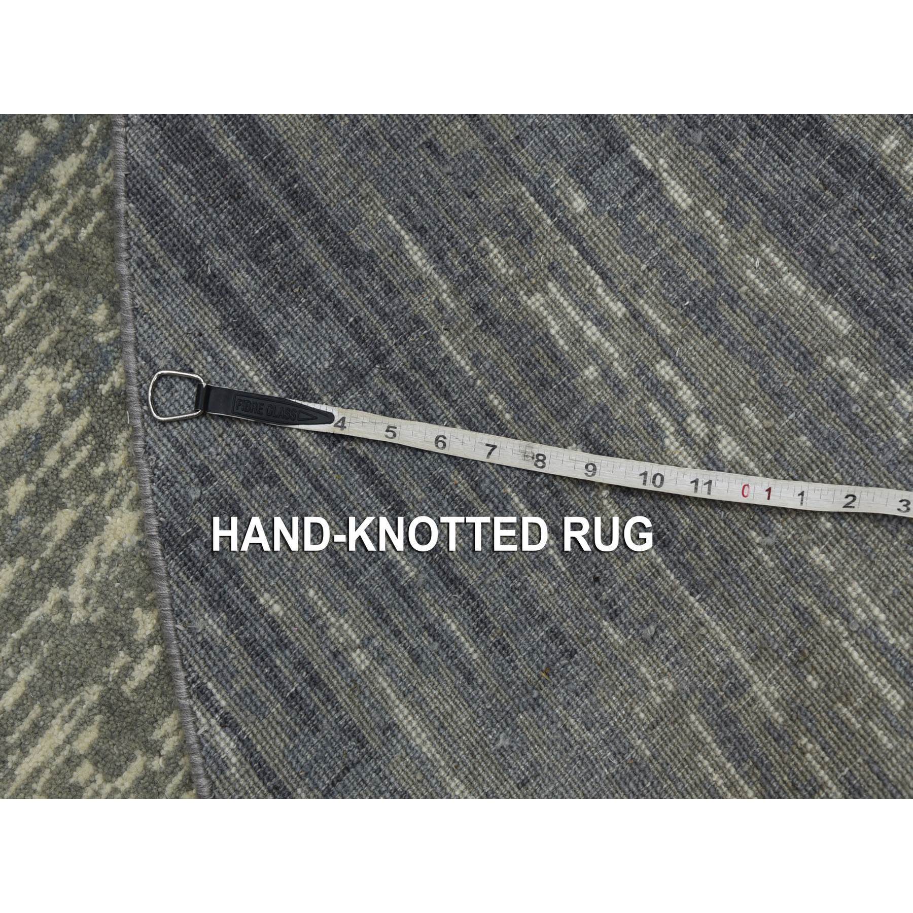 7'x7'2" Gray And Black Densely Woven Hand Knotted Modern Ombre Design Pure Wool Round Oriental Rug FWR450882