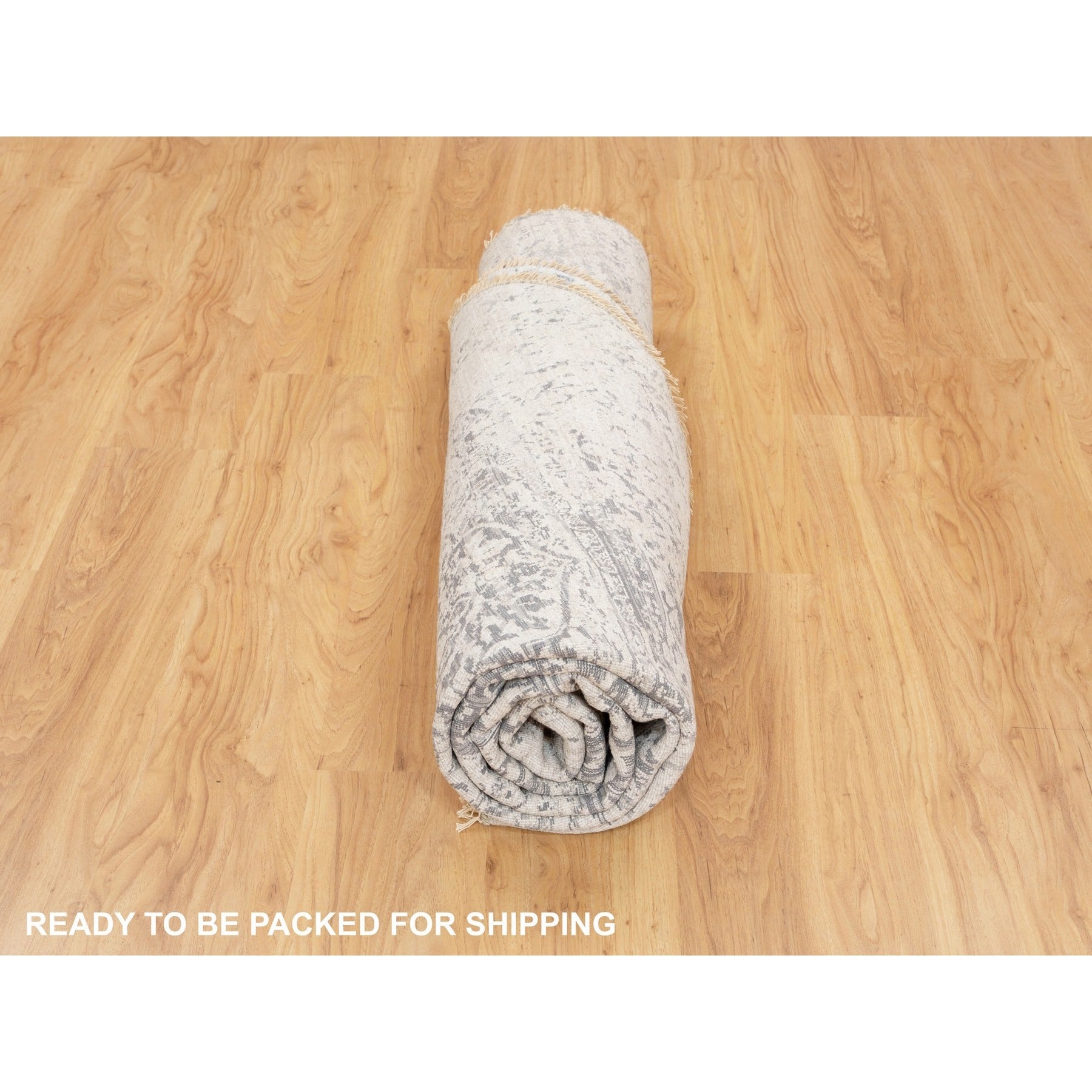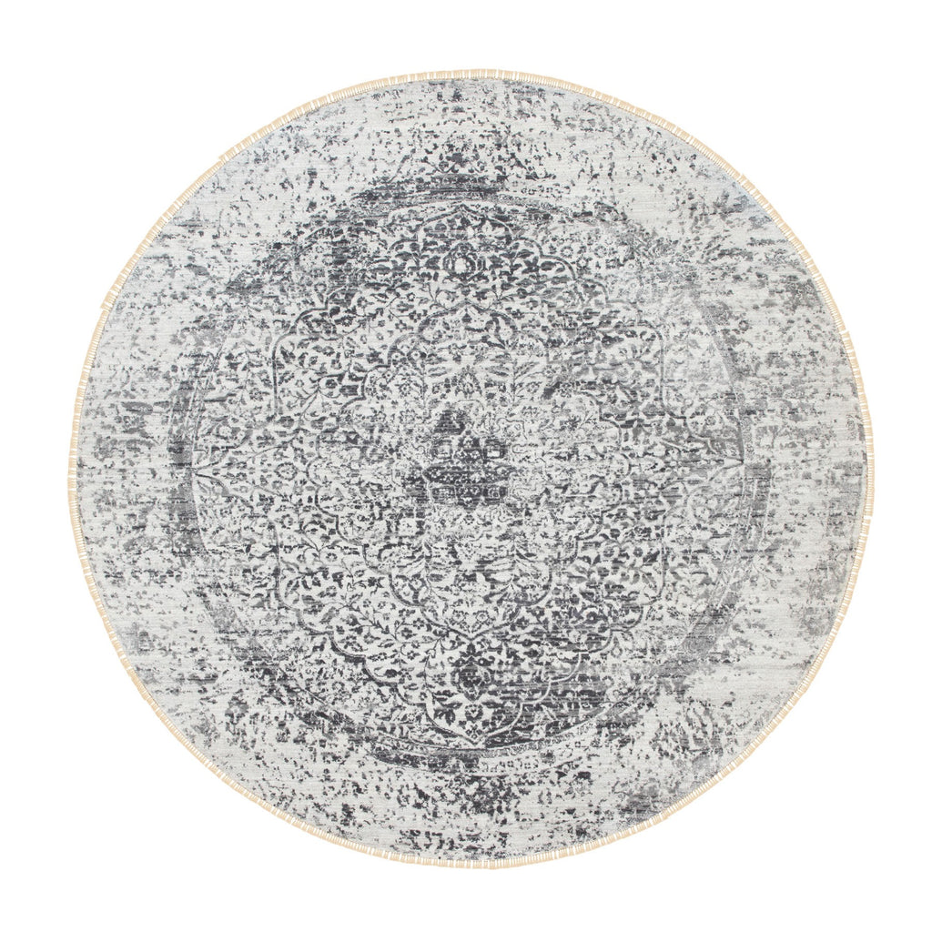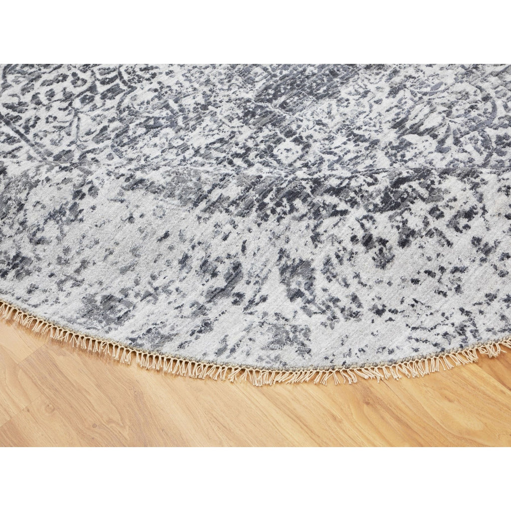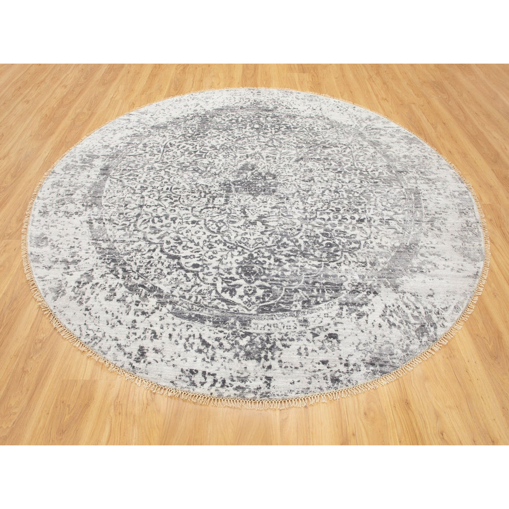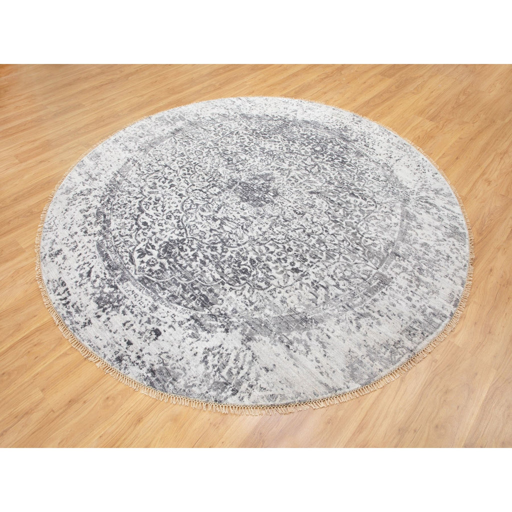 7'x7' Round Broken Persian Design Wool And Pure Silk Hand Knotted Oriental Rug FWR350448