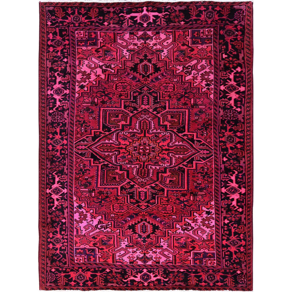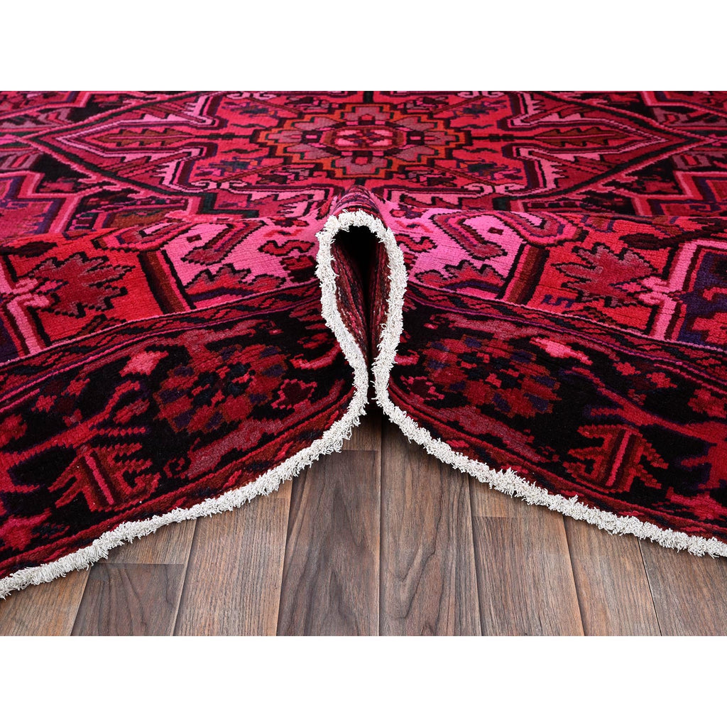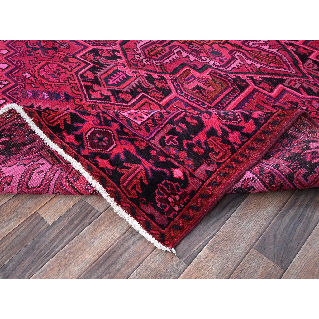 7'x9'5" Red Overdyed, Semi Antique Persian Heriz With Large Medallion, Worn Down, Sheared Low, Zero Pile, Sides And Ends Professionally Secured, Hand Knotted, 100% Wool, Oriental Rug FWR7650