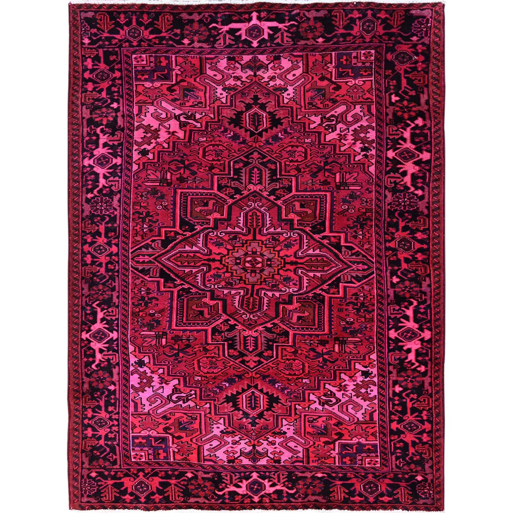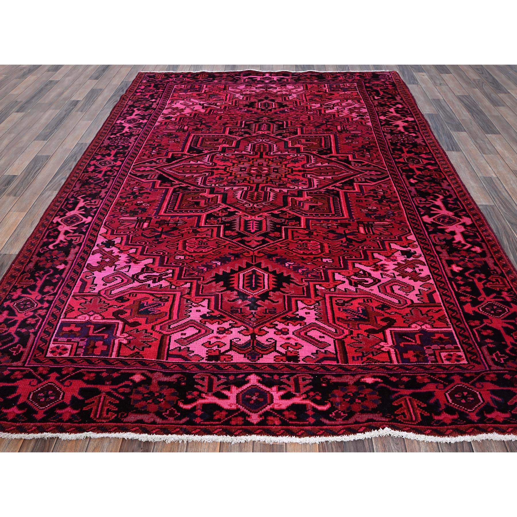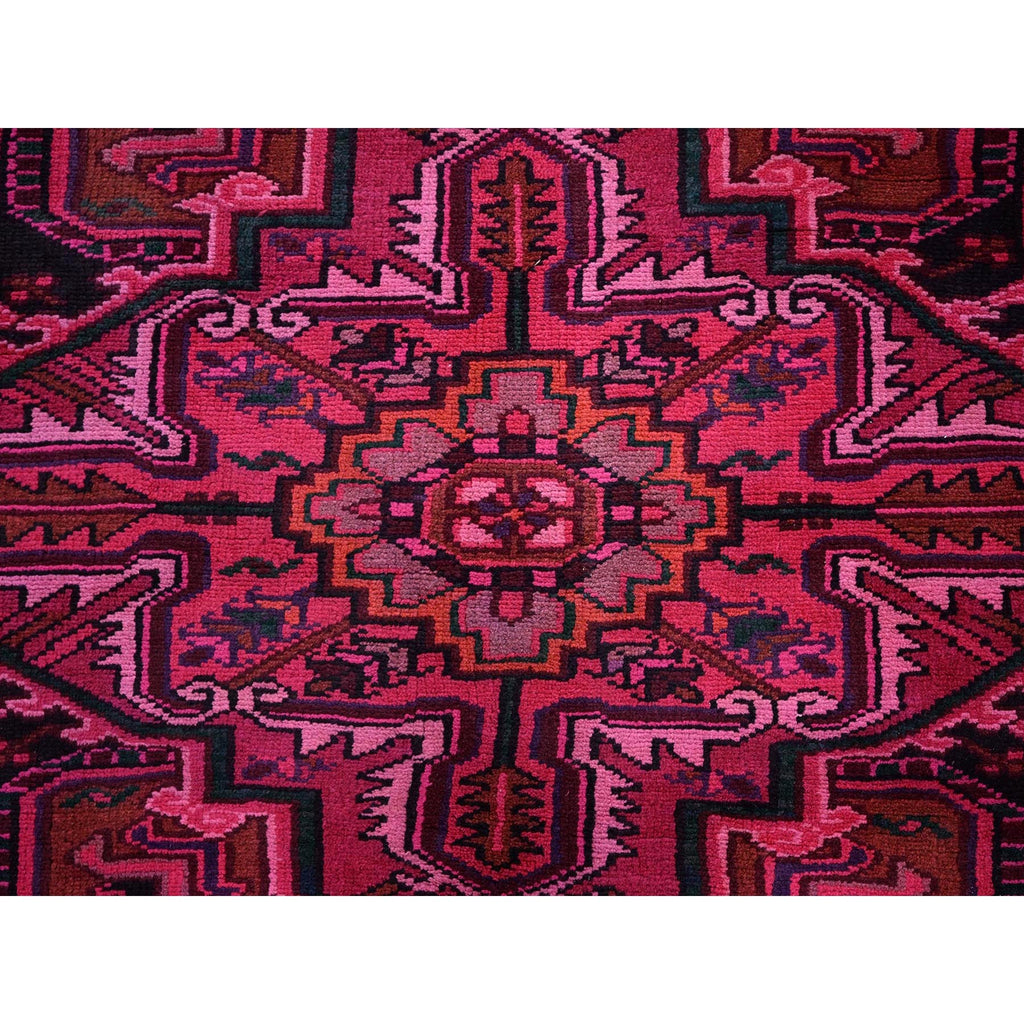 7'x9'5" Red Overdyed, Semi Antique Persian Heriz With Large Medallion, Worn Down, Sheared Low, Zero Pile, Sides And Ends Professionally Secured, Hand Knotted, 100% Wool, Oriental Rug FWR7650