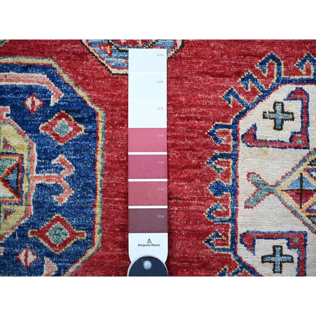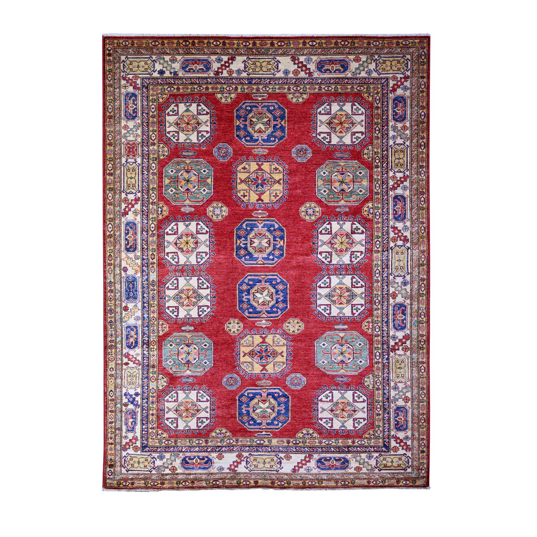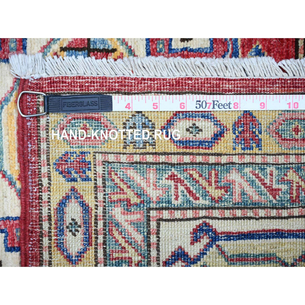 7'x9'8" Rusty Red, 100% Wool, Vegetable Dyes, Afghan Super Kazak With All Over Medallions, Hand Knotted, Oriental Rug FWR448950