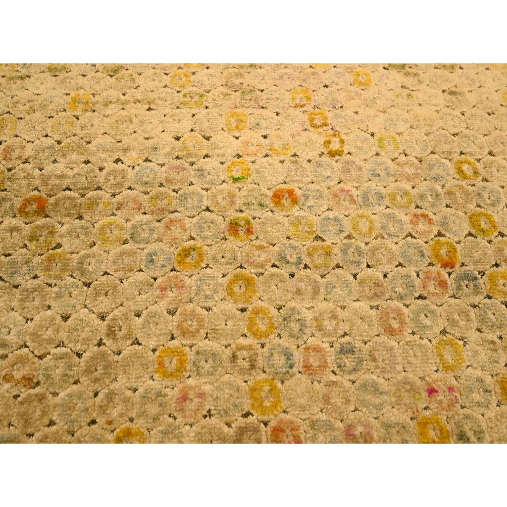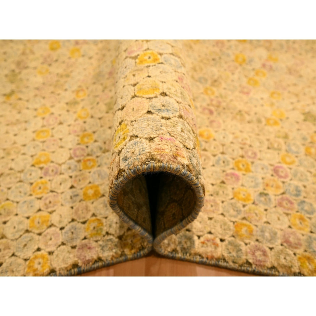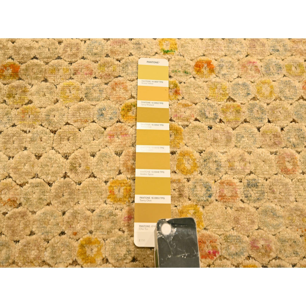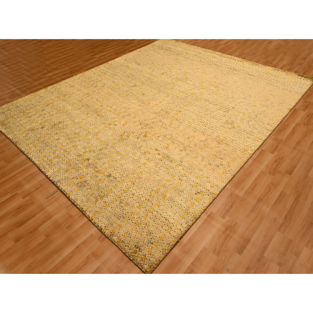 8'1"x10'1" Beige With Golden Yellow, The Buttons, Distressed Colors, Wool And Sari Silk, Hand Knotted, Soft To The Touch, Oriental Rug FWR457104