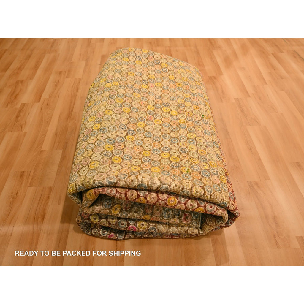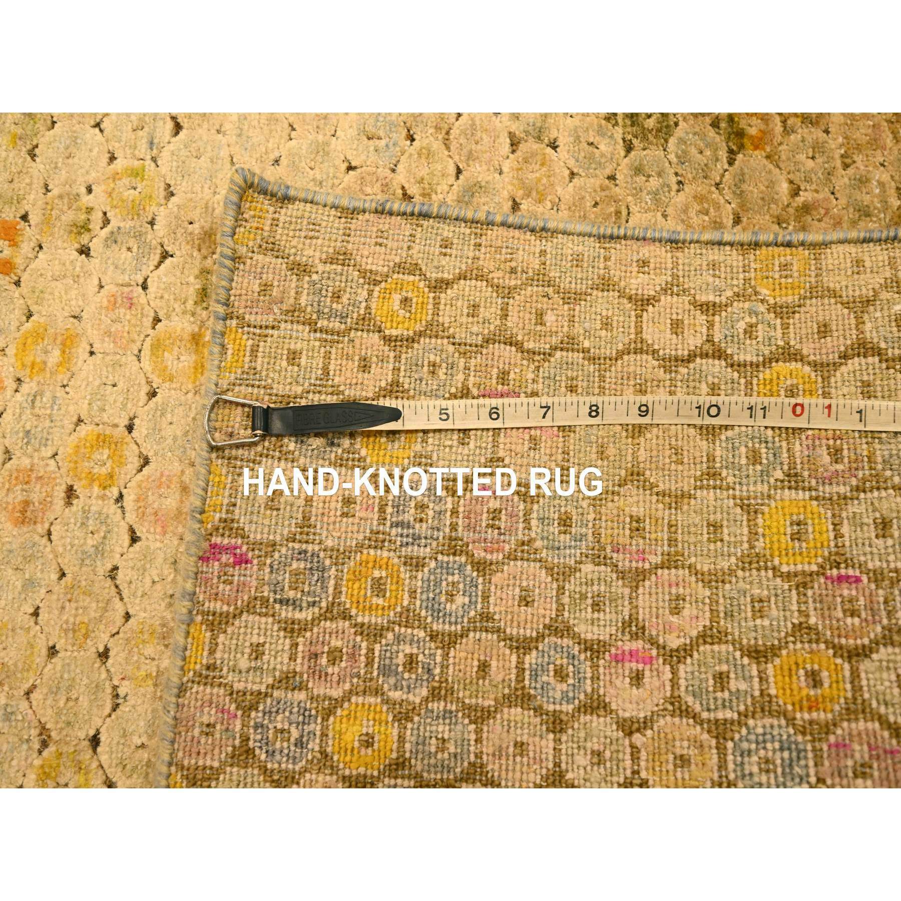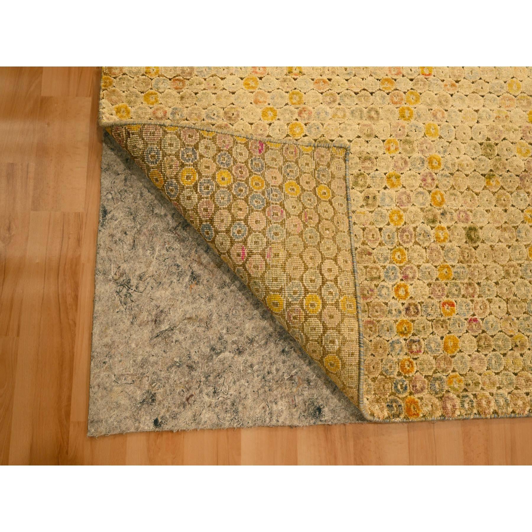 8'1"x10'1" Beige With Golden Yellow, The Buttons, Distressed Colors, Wool And Sari Silk, Hand Knotted, Soft To The Touch, Oriental Rug FWR457104