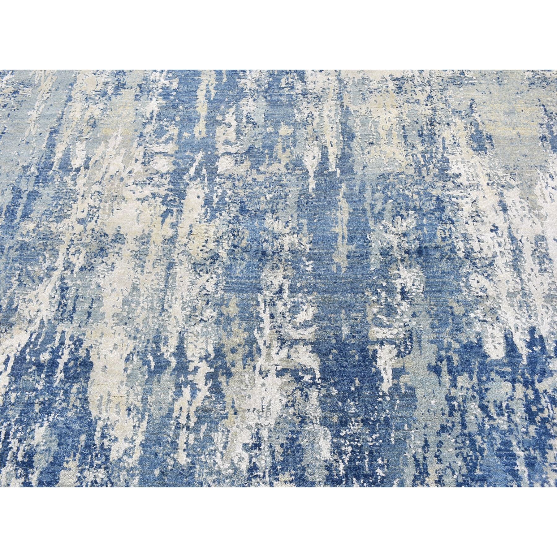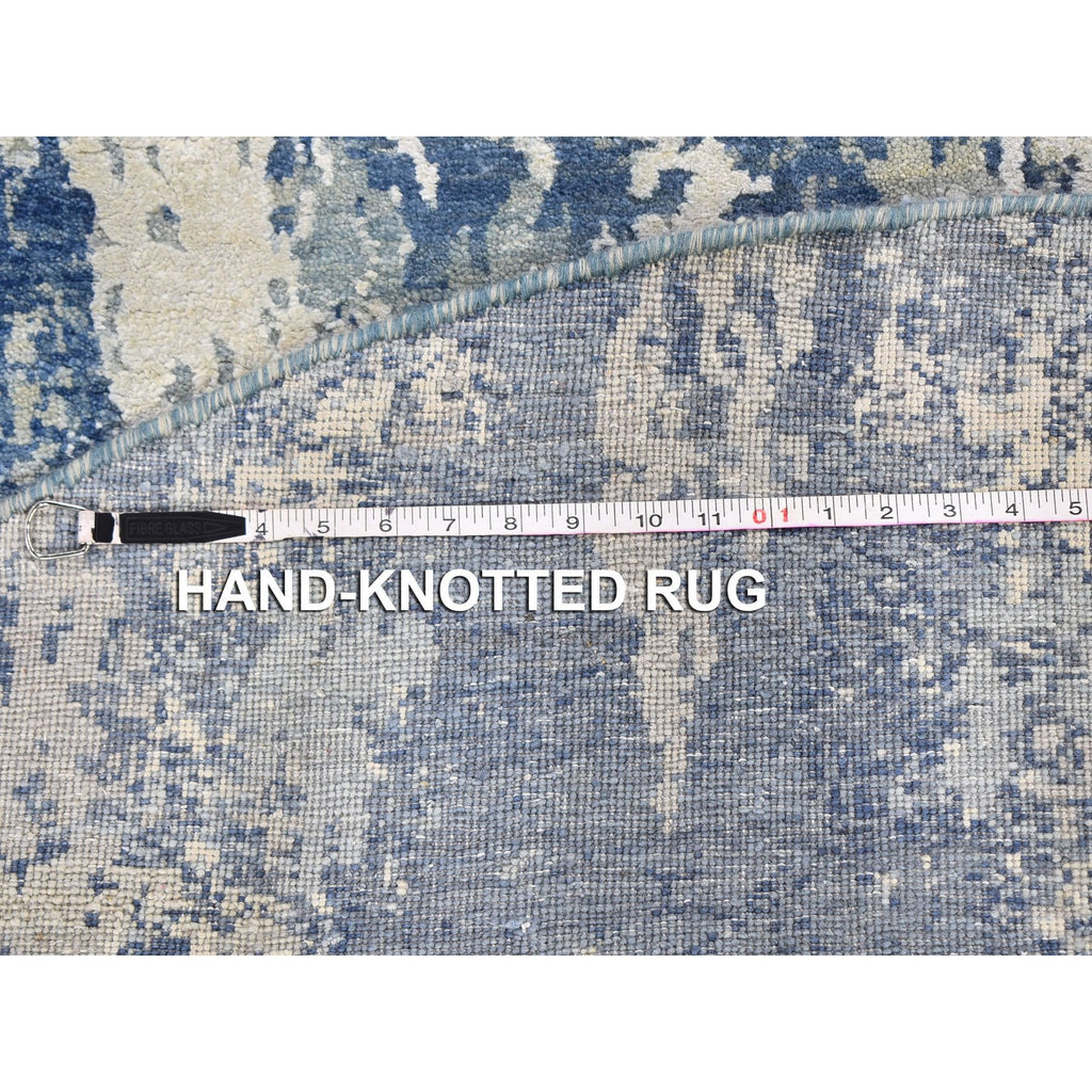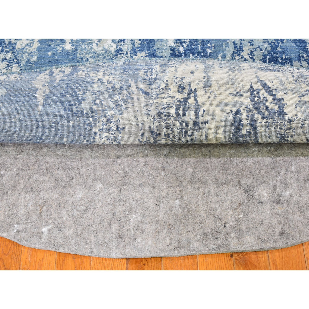 8'1"x10'1" Blue Abstract Design Wool And Real Silk Oval Hand Knotted Oriental Rug FWR357126