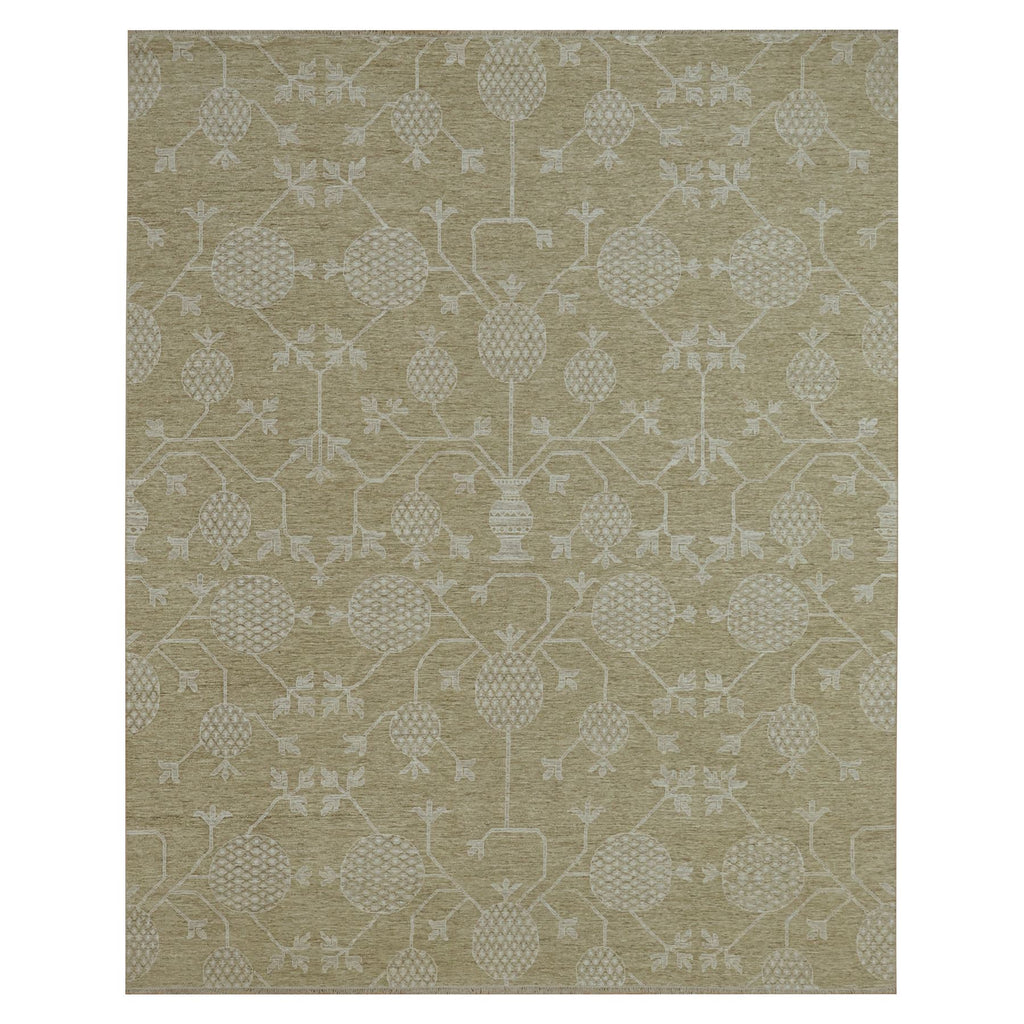 8'1"x10'1" Dark Vanilla Brown, Pomegranate Khotan Design, Tone On Tone, Zero Pile, 100% Wool, Hand Knotted, Dense Weave, Oriental Rug FWR456996