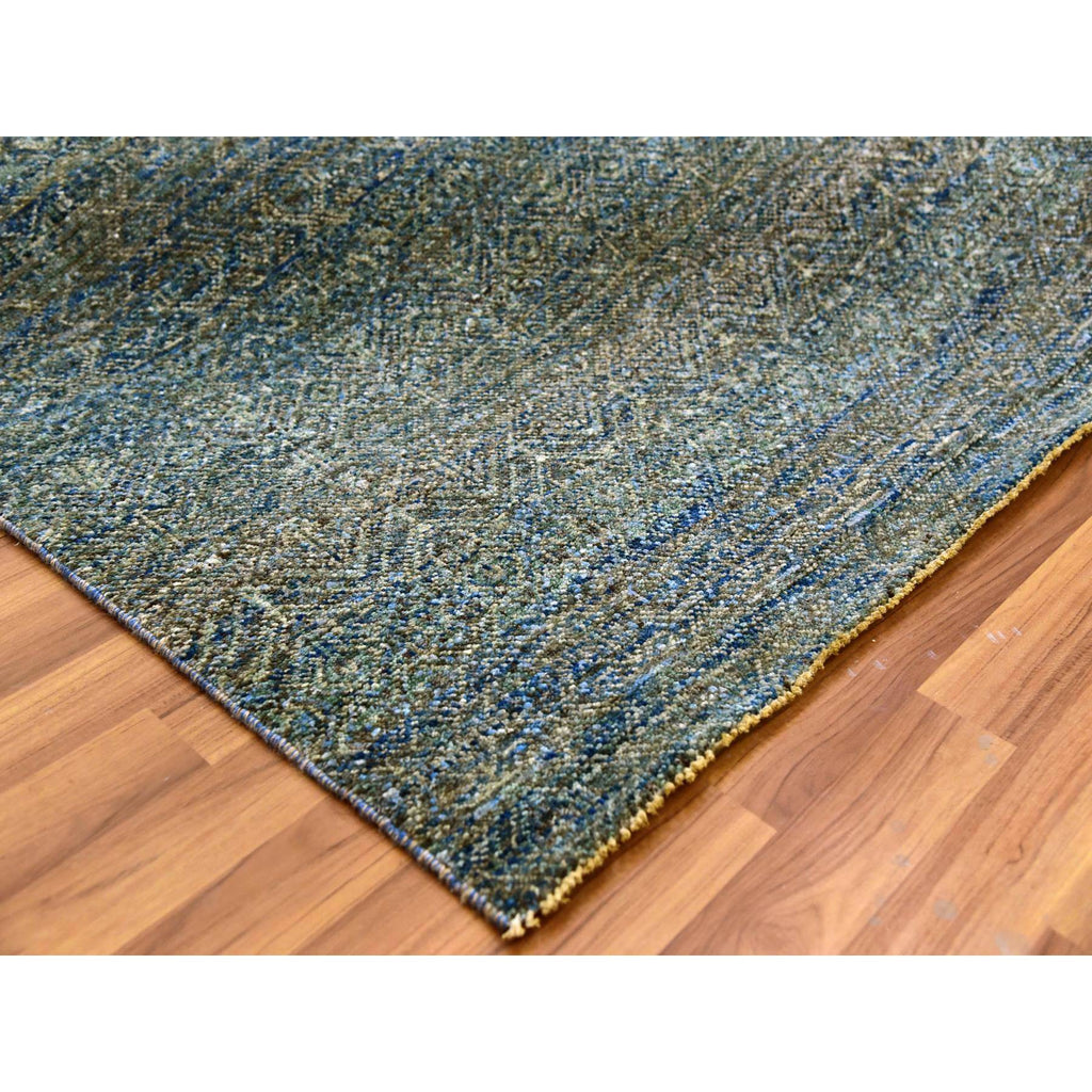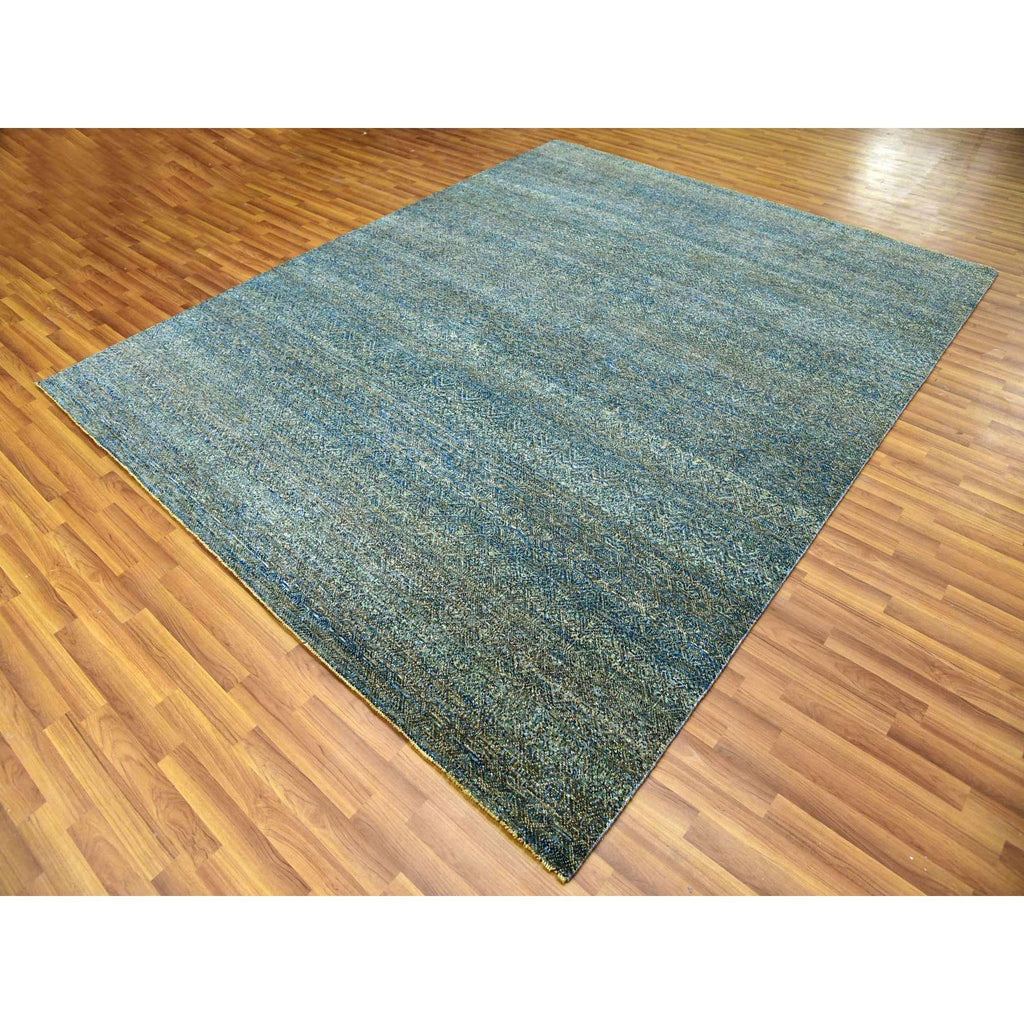 8'1"x10'1" Hunter Forest Green, Borderless Hand Knotted, Diamond Shape Repetitive Design, Kohinoor Herat, Soft To The Touch, All Wool, Oriental Rug FWR477990