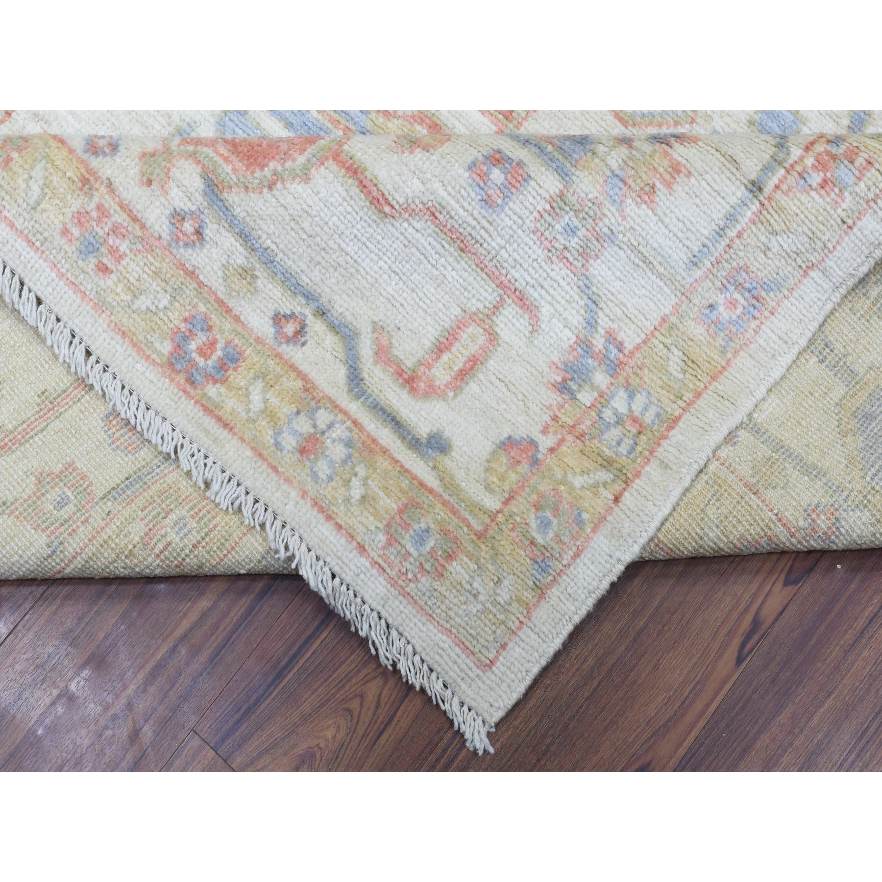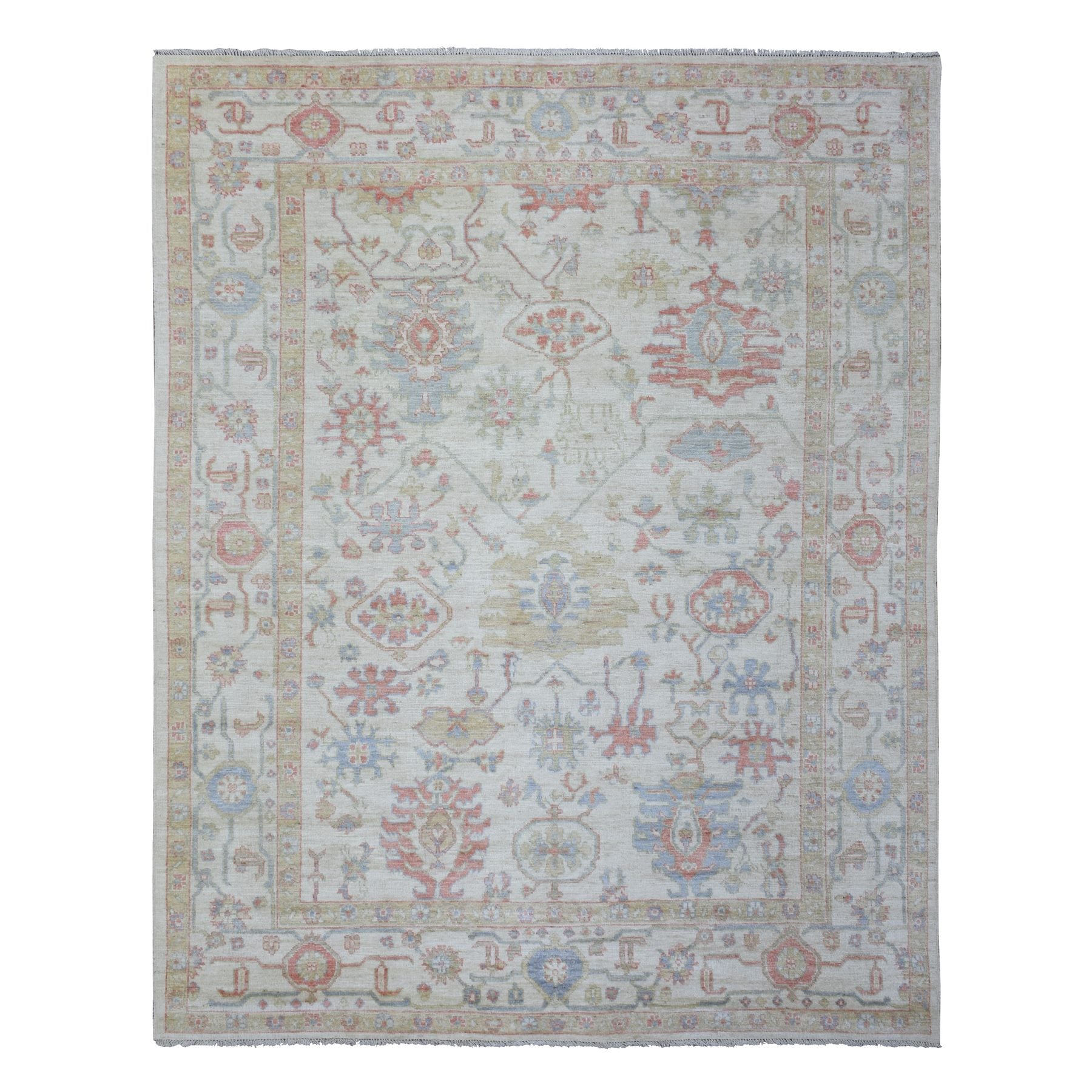 8'1"x10'2" Ivory Afghan Angora Oushak With Branch And Flower Design Natural Dyes, Soft Wool Hand Knotted, Oriental Rug FWR435534
