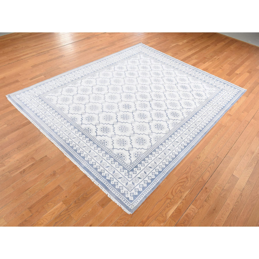 8'1"x10'2" Ivory, Agra Mughal Dynasty Design, Cotton, Hand Knotted, Oriental Rug FWR522246