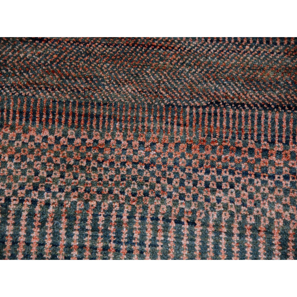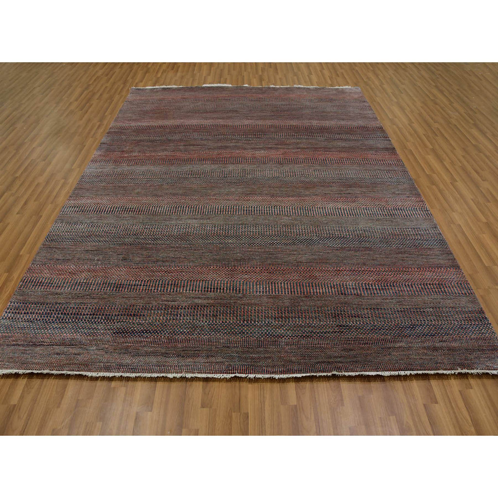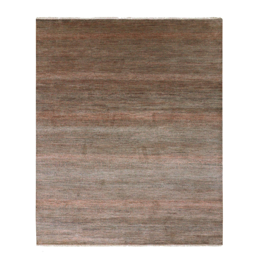 8'1"x10'2" Rust Brown, Modern Grass Design, Soft Pile, Dense Weave, Tone On Tone, Dyed, Wool And Silk Hand Knotted, Oriental Rug FWR477702