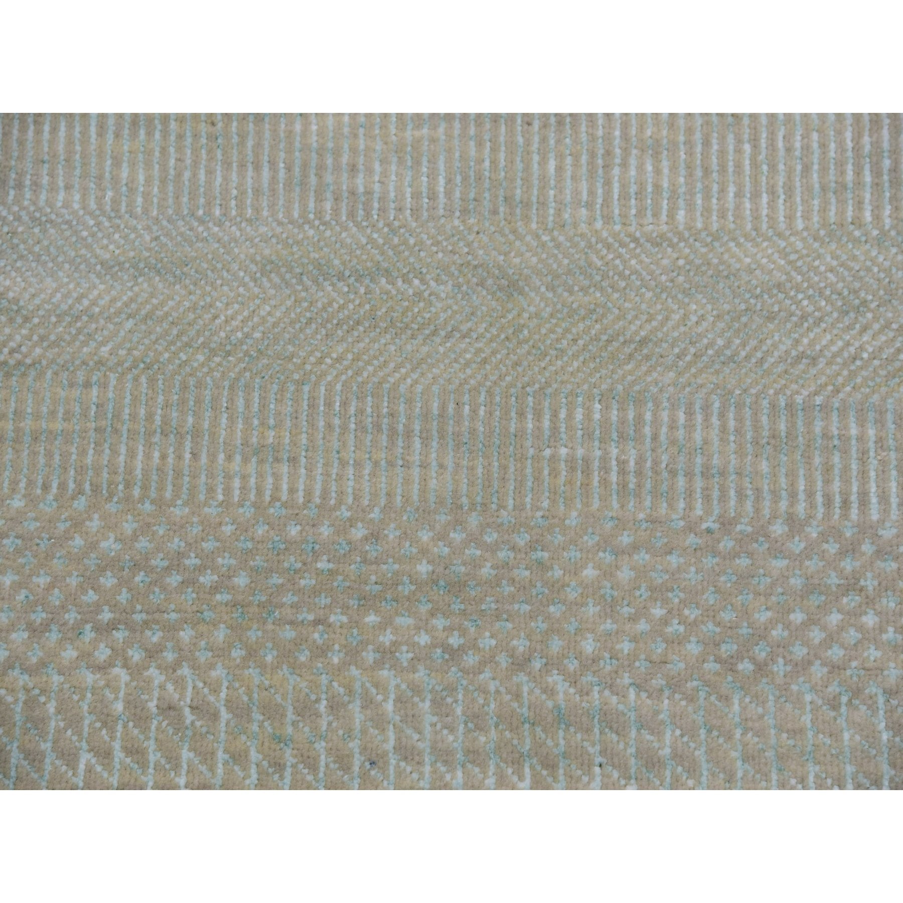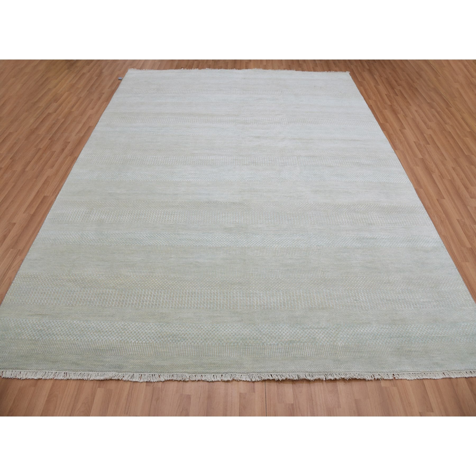 8'1"x10'3" Bleeker Beige, Denser Weave Tone On Tone, Hand Knotted Natural Wool With Grass Design, Oriental Rug FWR498636