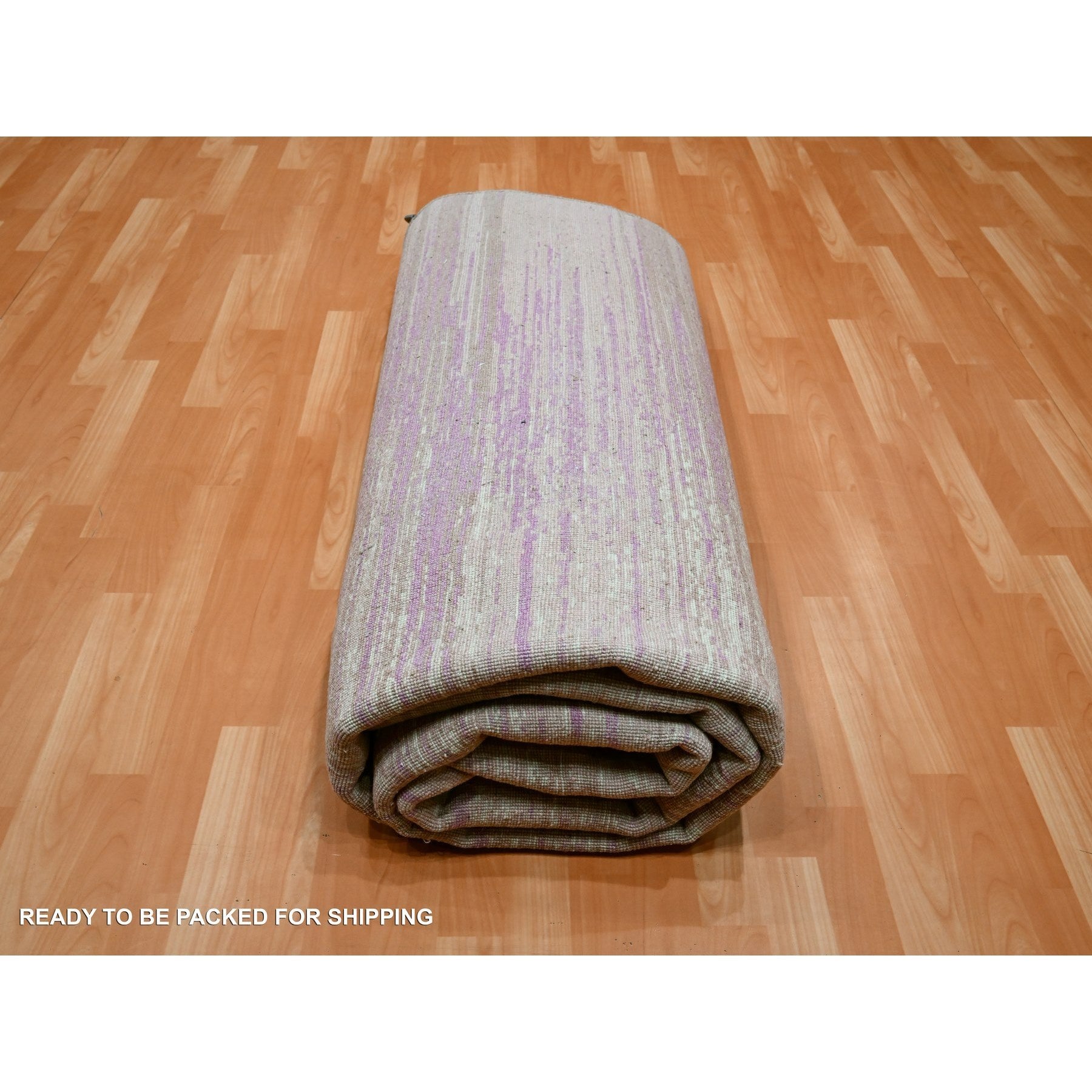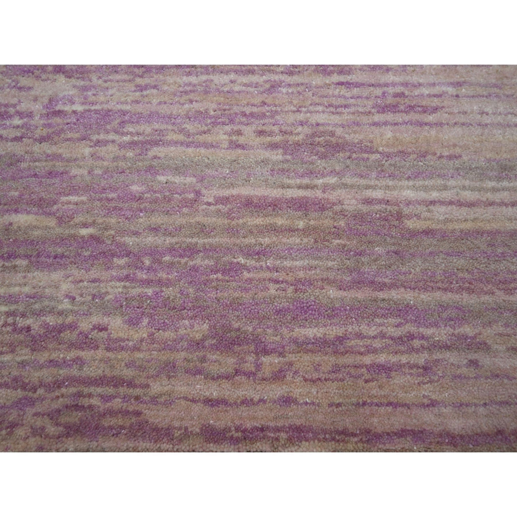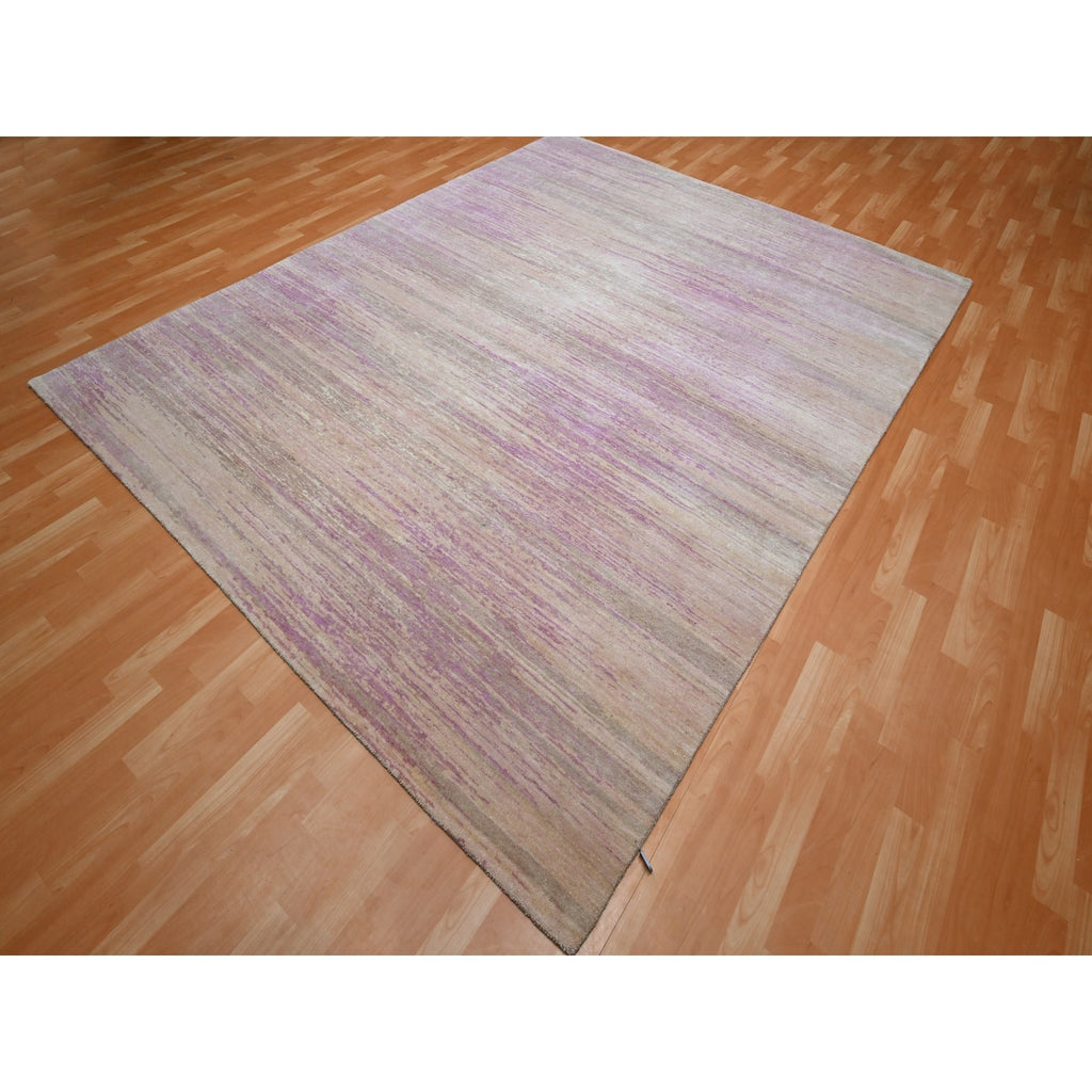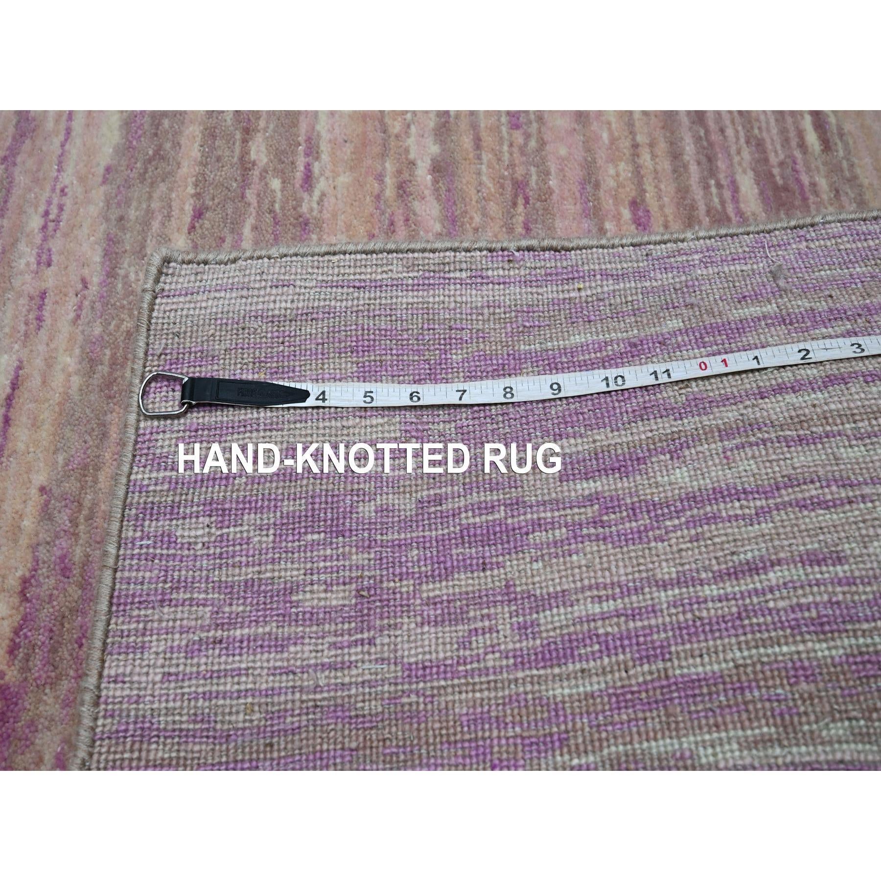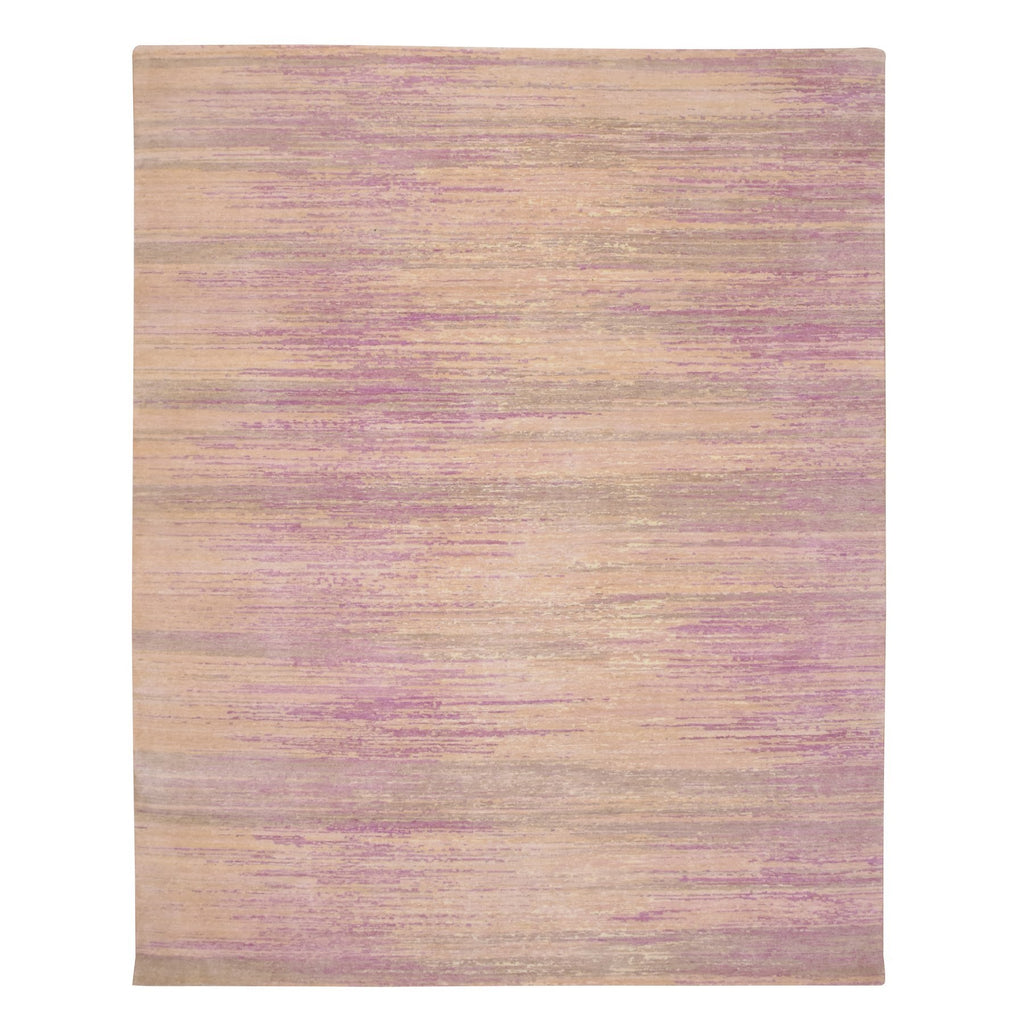 8'1"x10'3" Fuscia Pink With Ivory, Horizontal Ombre Design, Hand Knotted, Pure Wool, Oriental Rug FWR453078