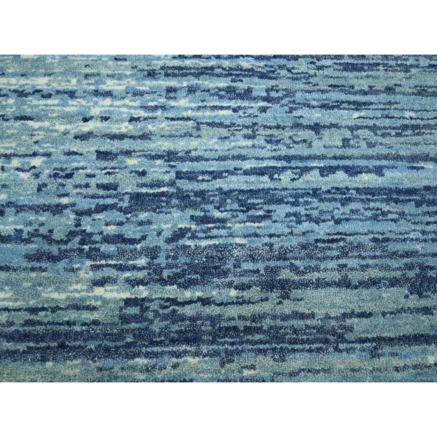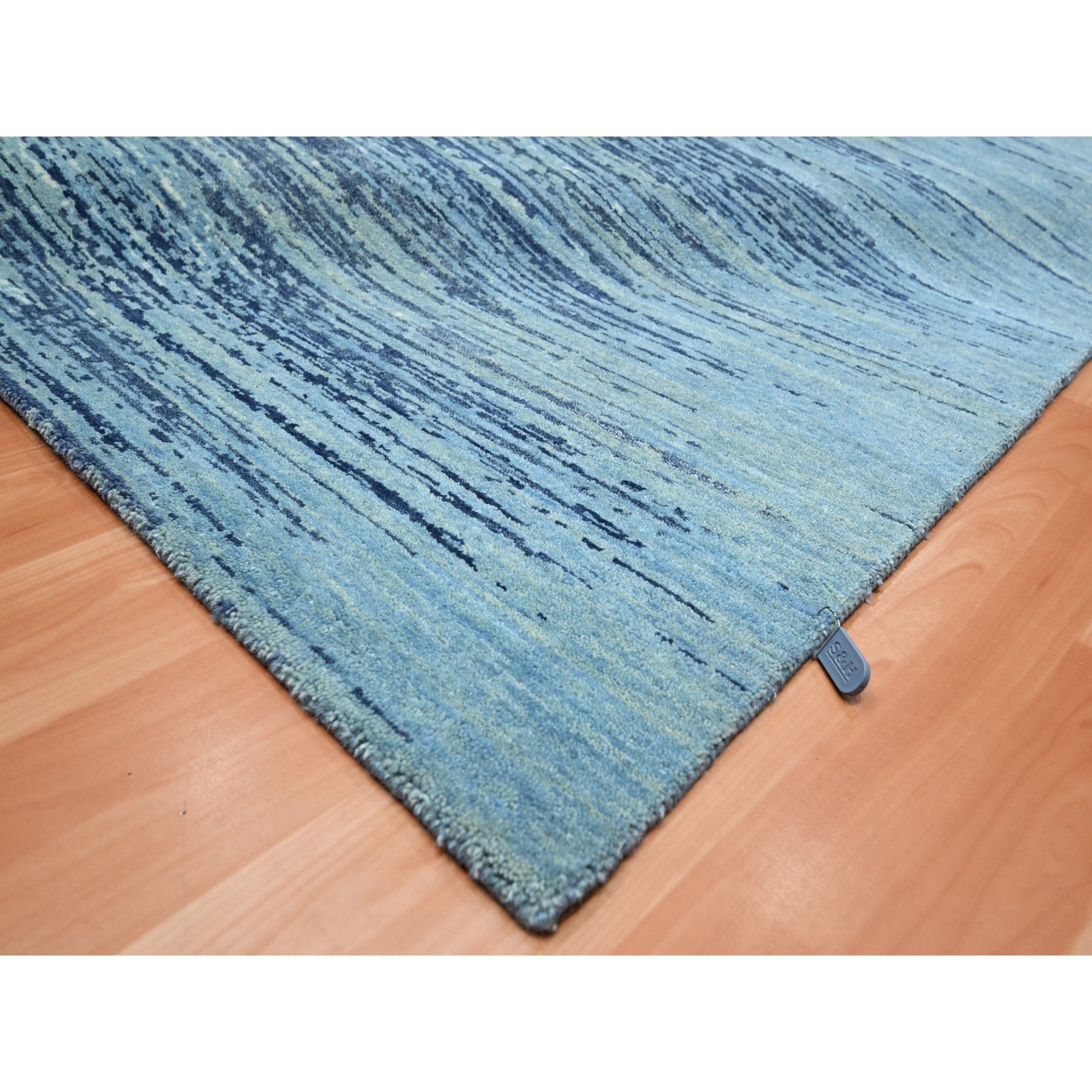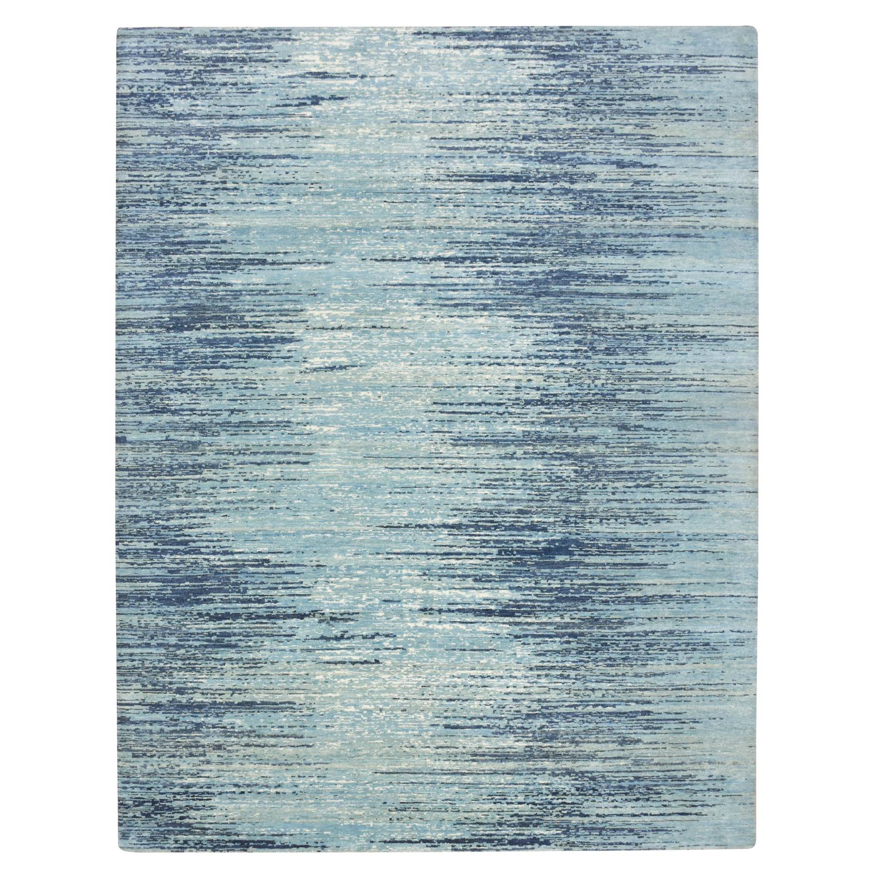 8'1"x10'4" Shades Of Blue, Horizontal Ombre Design, Pure Wool, Hand Knotted, Oriental Rug FWR453114
