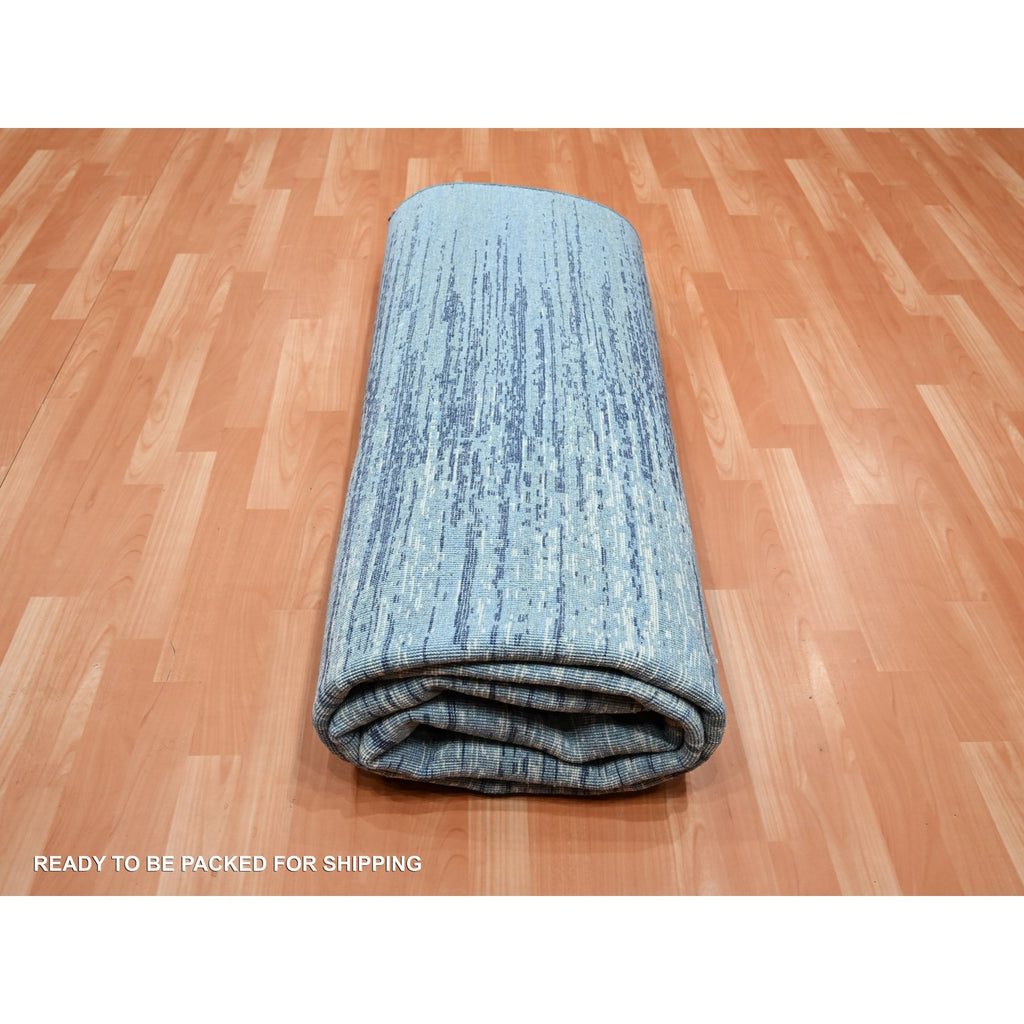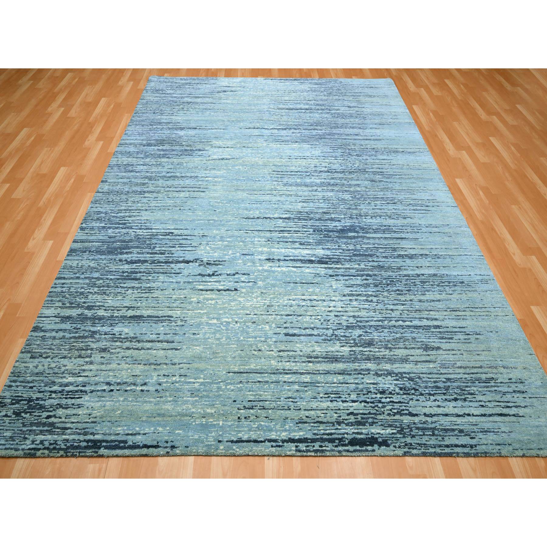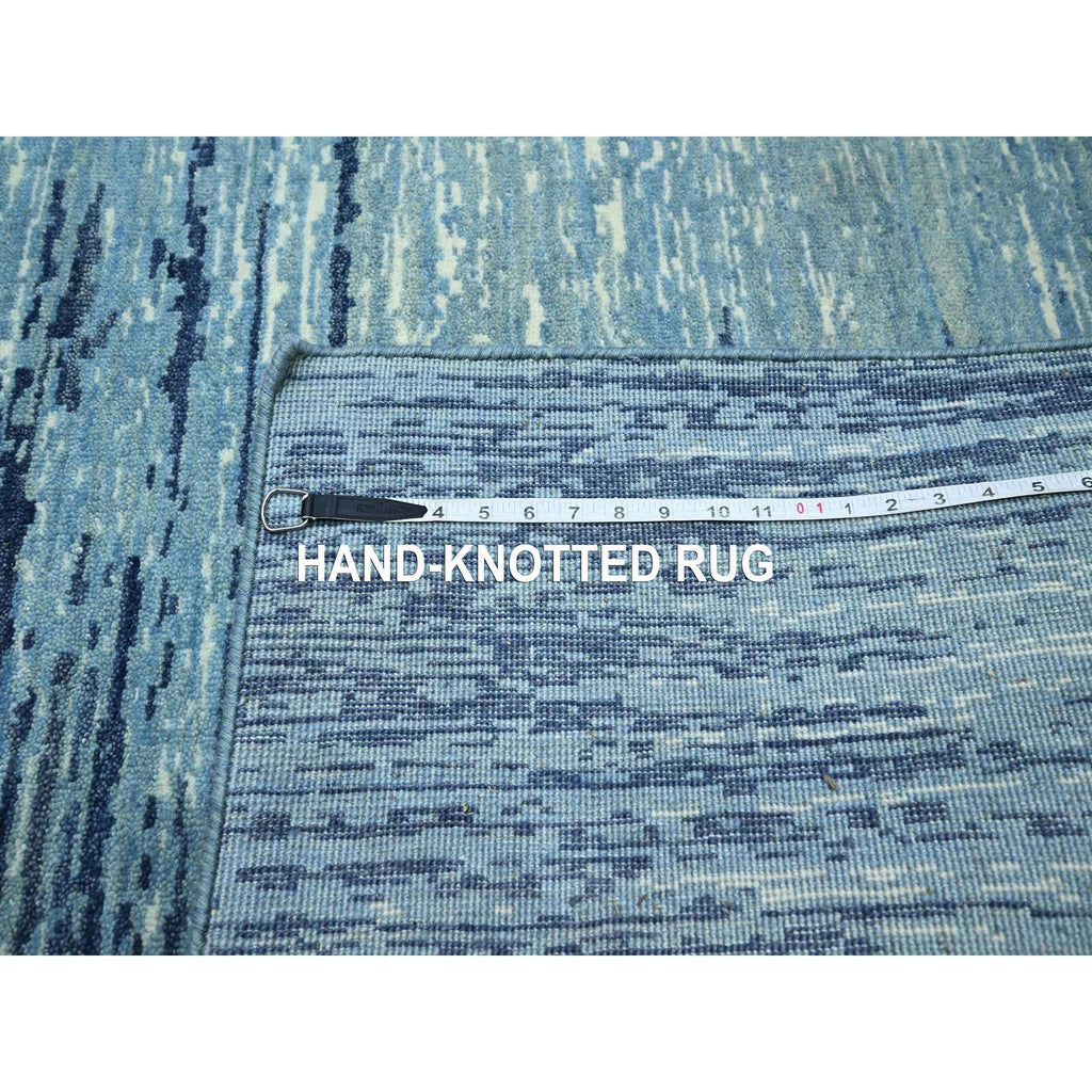 8'1"x10'4" Shades Of Blue, Horizontal Ombre Design, Pure Wool, Hand Knotted, Oriental Rug FWR453114