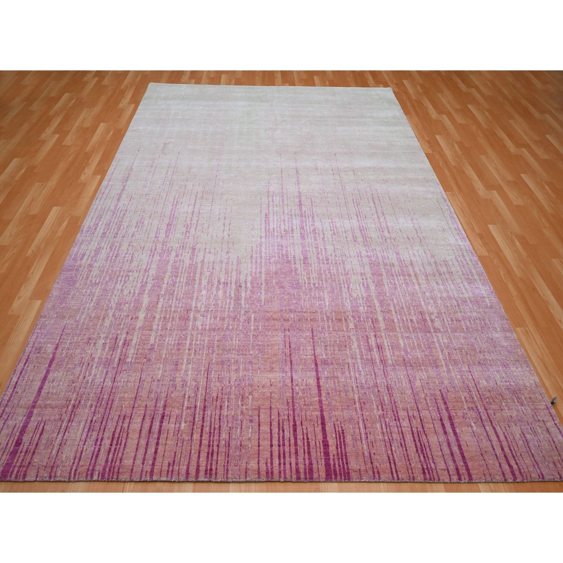 8'1"x10'4" Shades Of Pink, Vertical Ombre Design, Natural Wool, Hand Knotted, Oriental Rug FWR453084