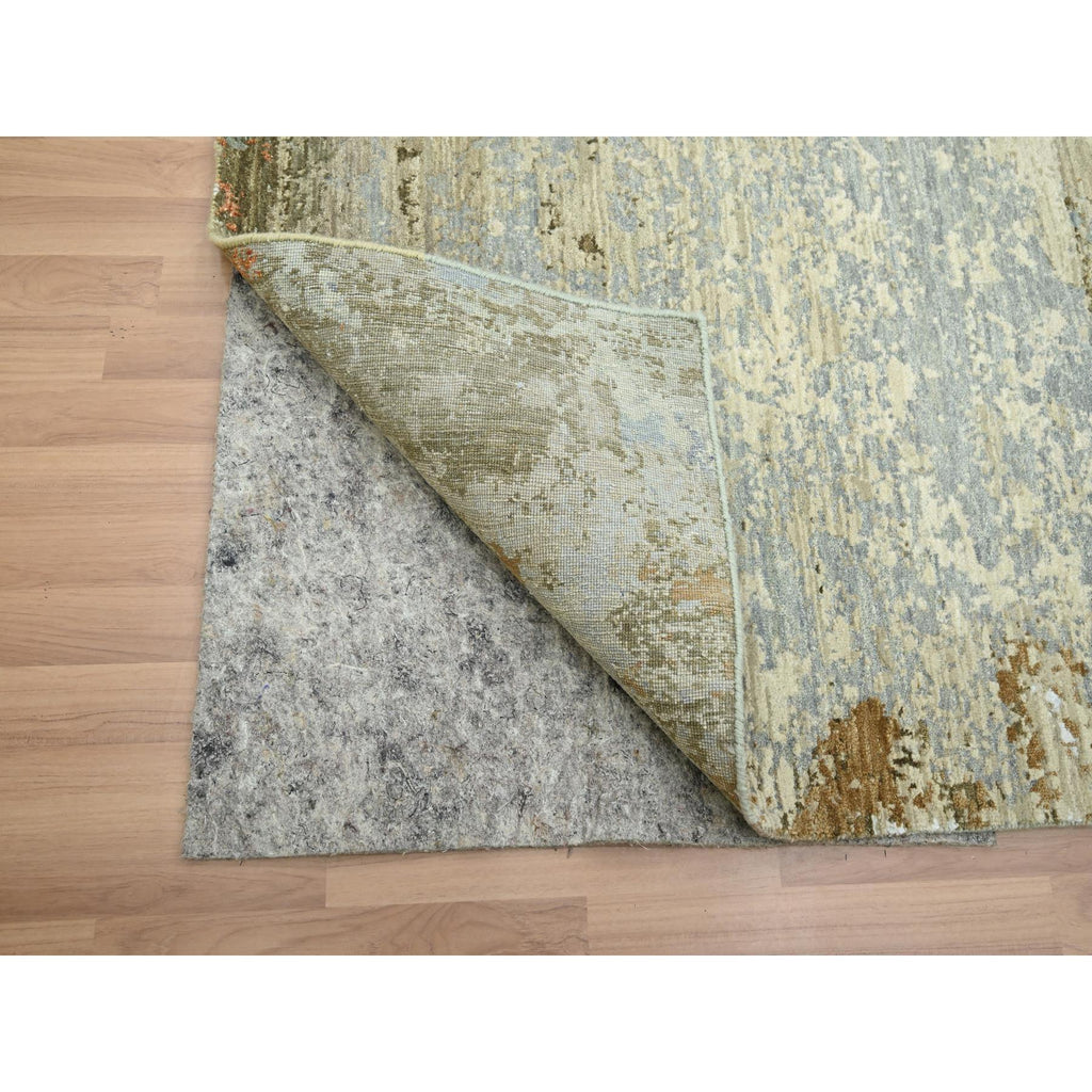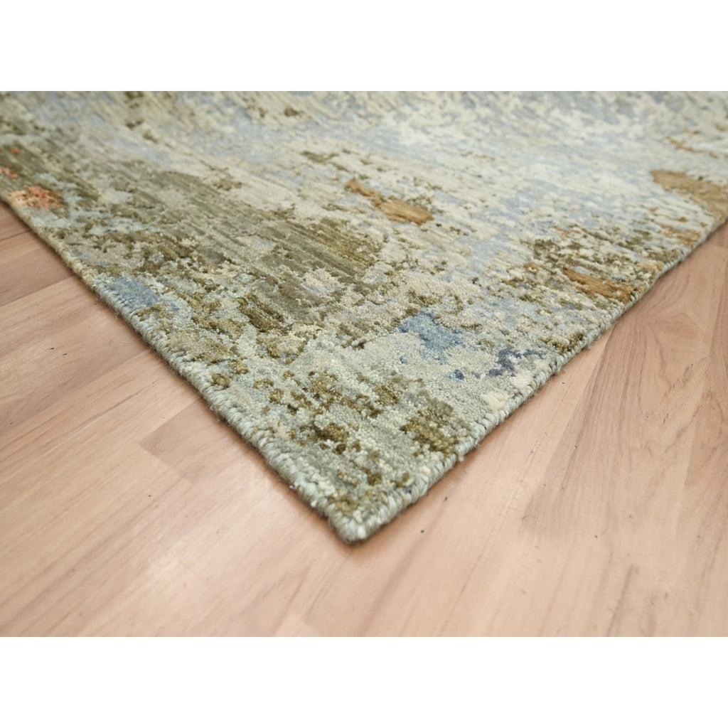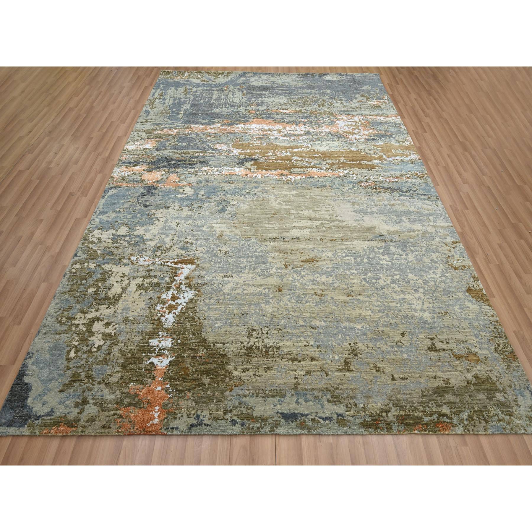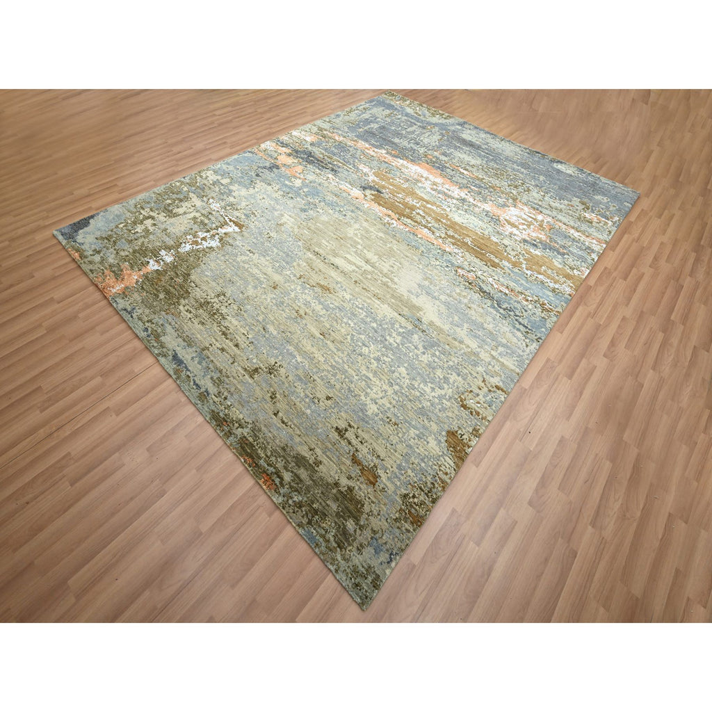 8'1"x10'5" Laurel Green With Aegean Blue, Persian Knot, Abstract With Galaxy Design, Densely Woven, Pure Wool, Hand Knotted, Oriental Rug FWR498792