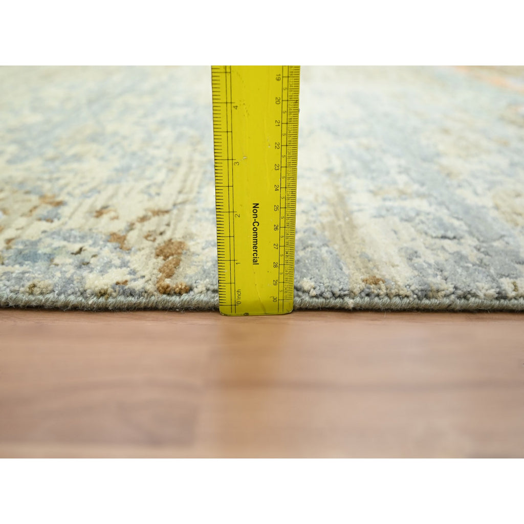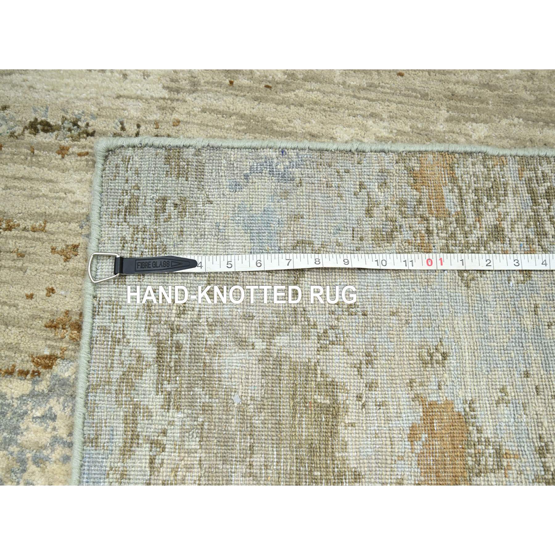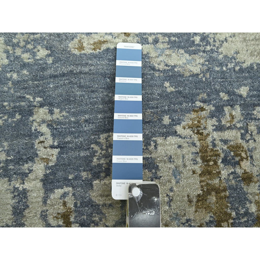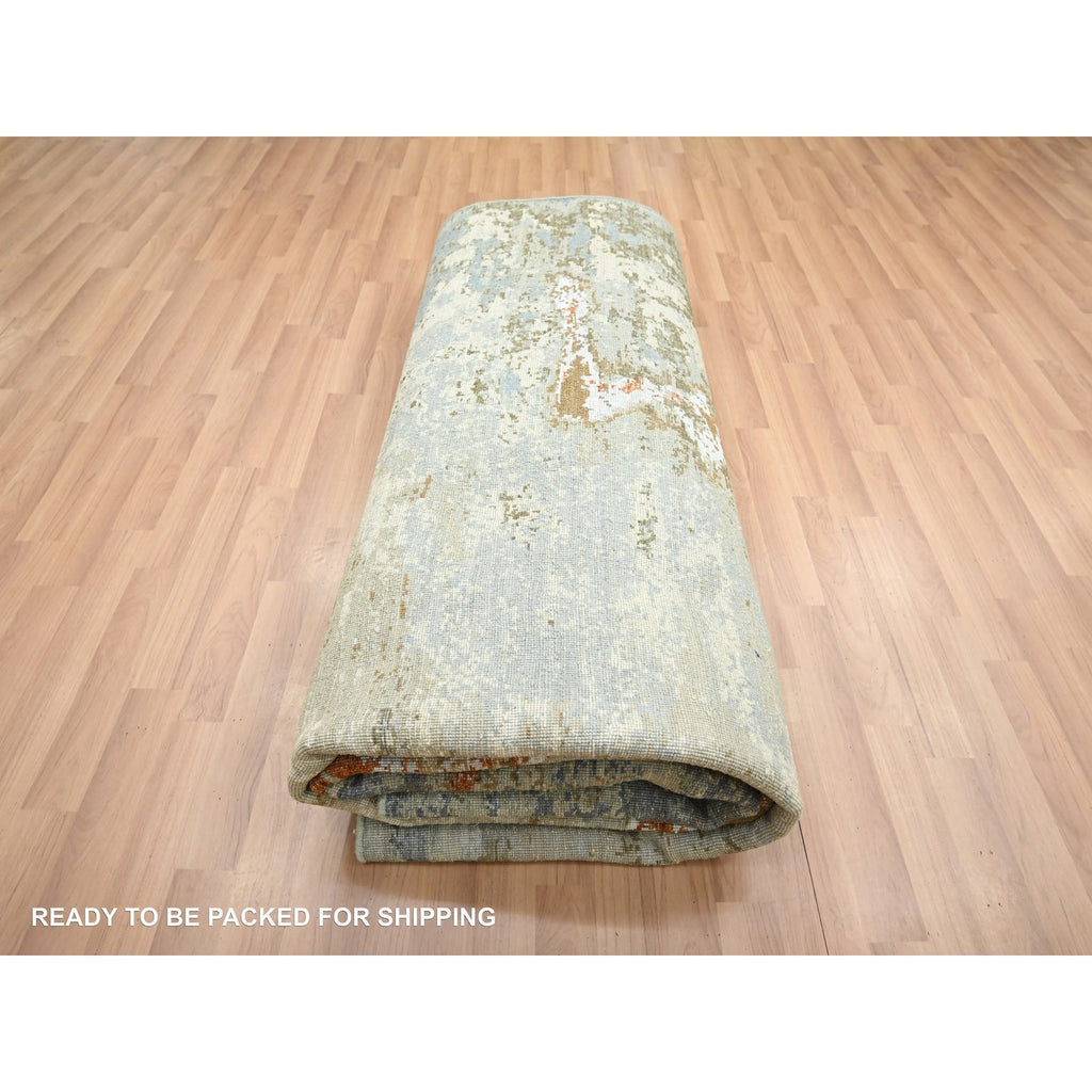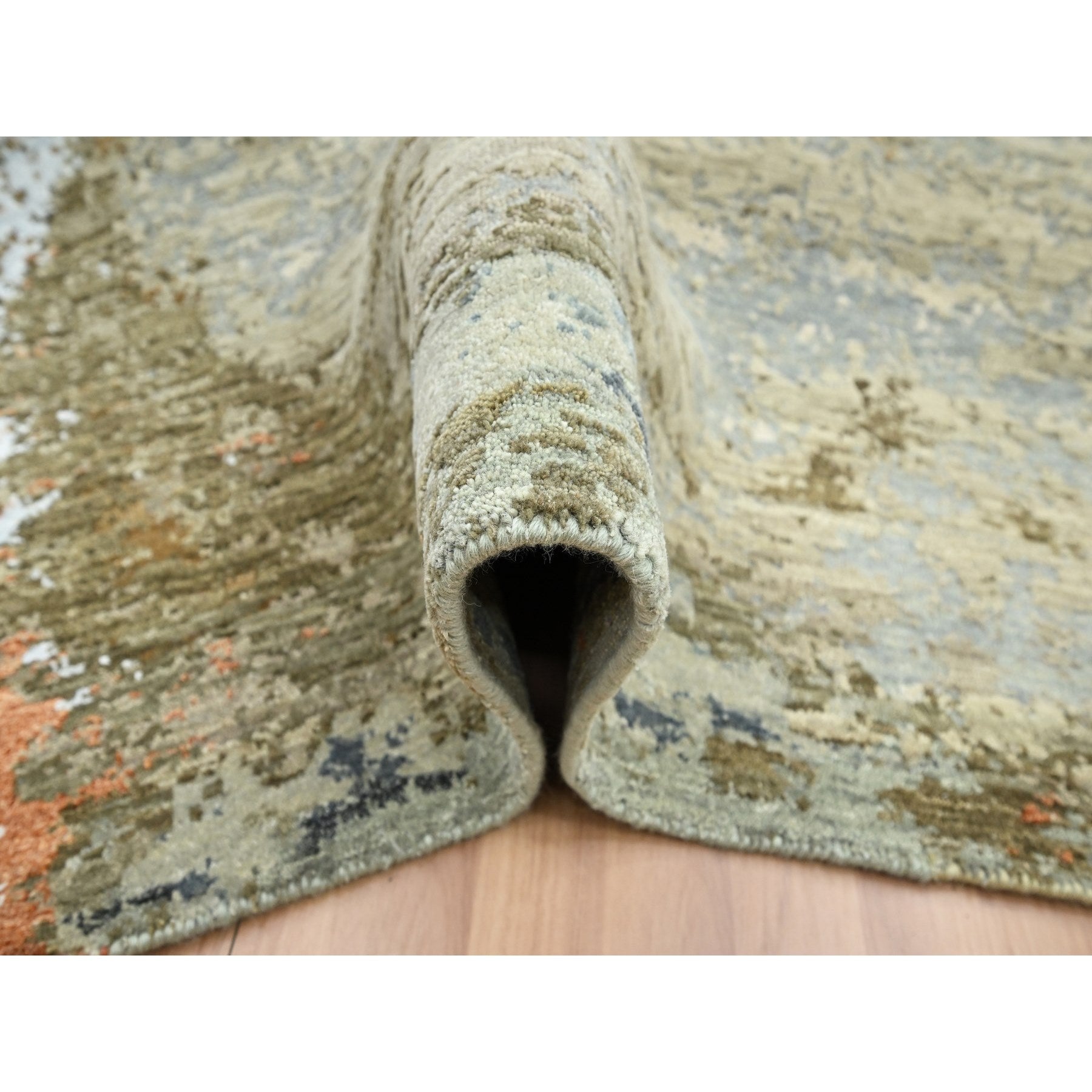 8'1"x10'5" Laurel Green With Aegean Blue, Persian Knot, Abstract With Galaxy Design, Densely Woven, Pure Wool, Hand Knotted, Oriental Rug FWR498792