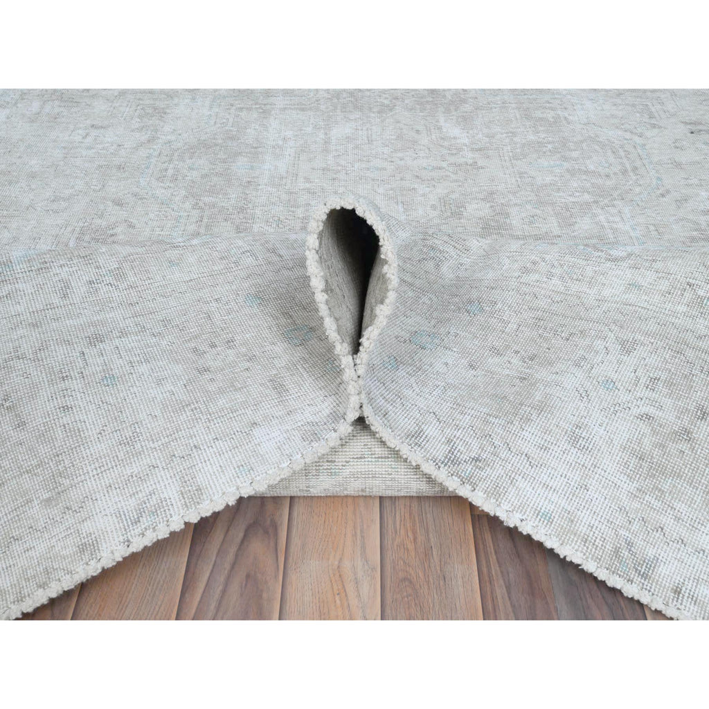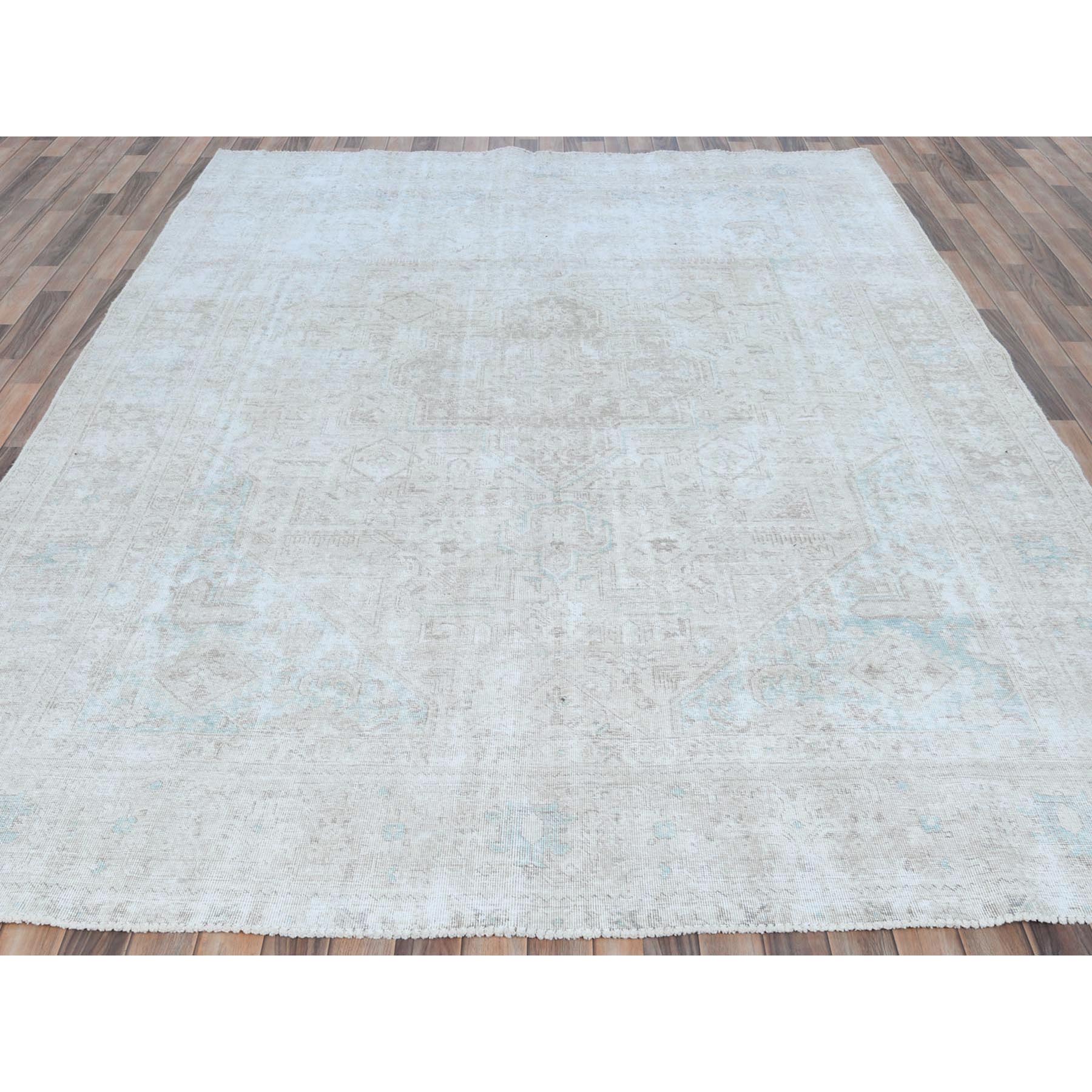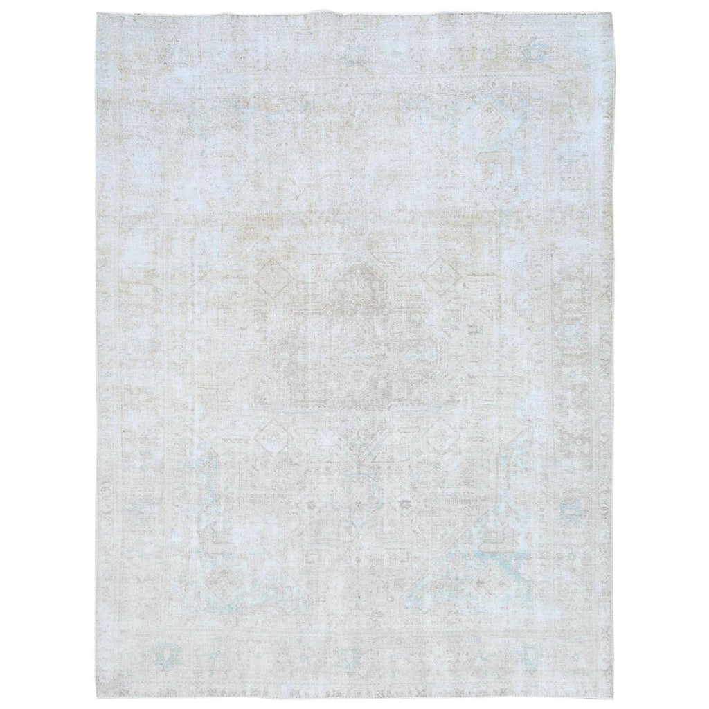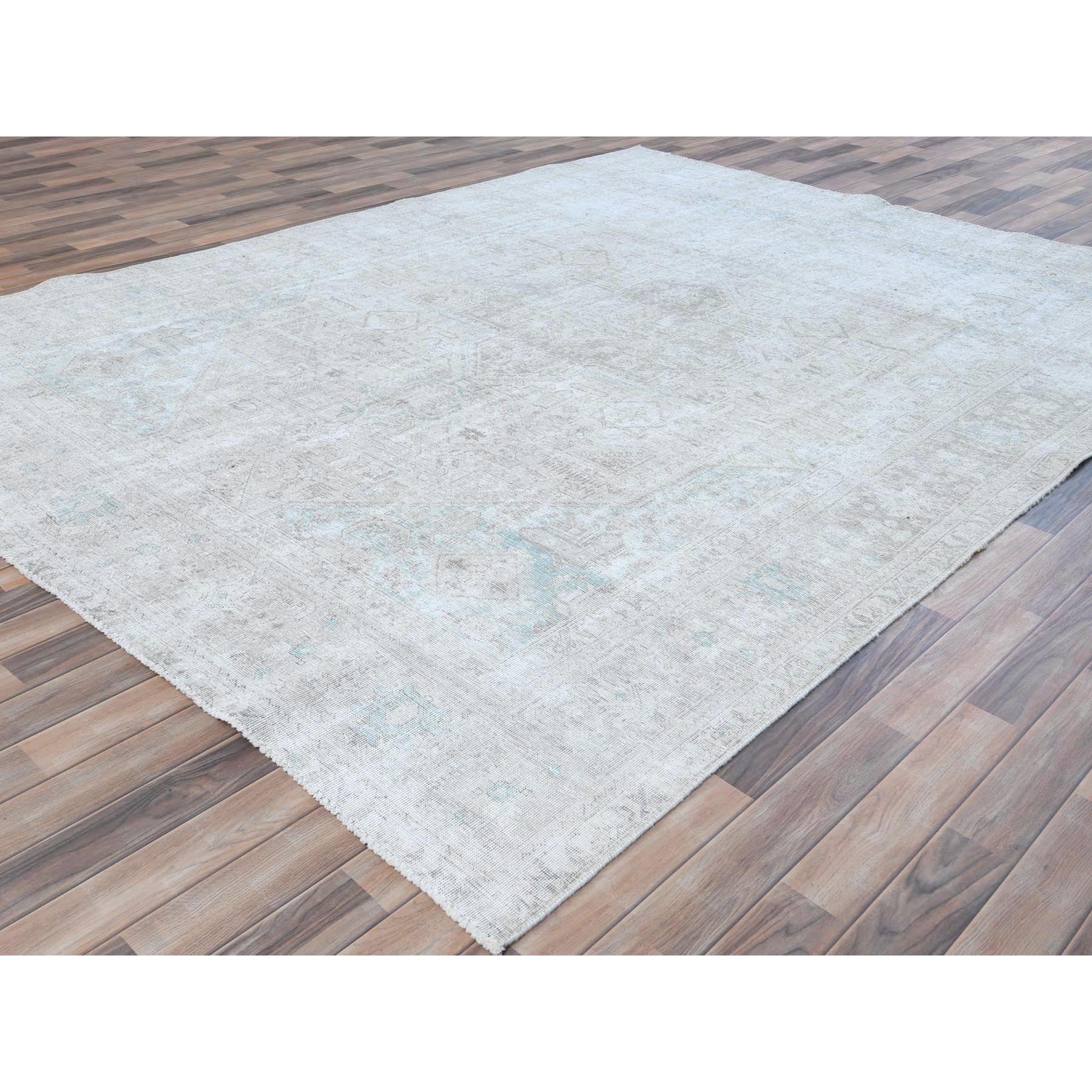 8'1"x10'9" Beige Shabby Chic Vintage Persian Tabriz Hand Knotted Worn Wool, Cropped Thin, Distressed Look Oriental Rug FWR487710