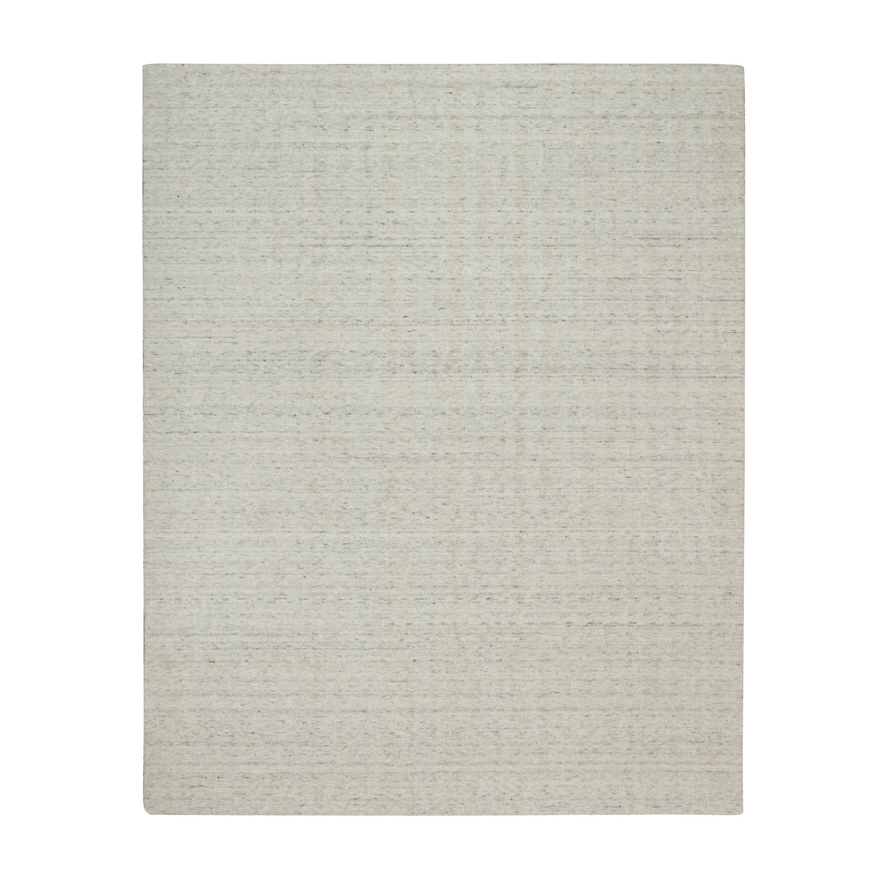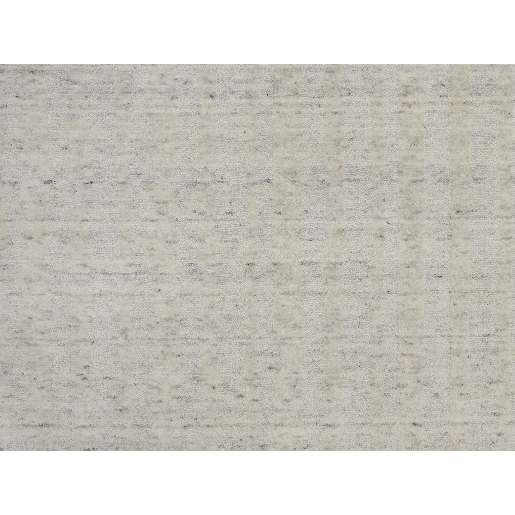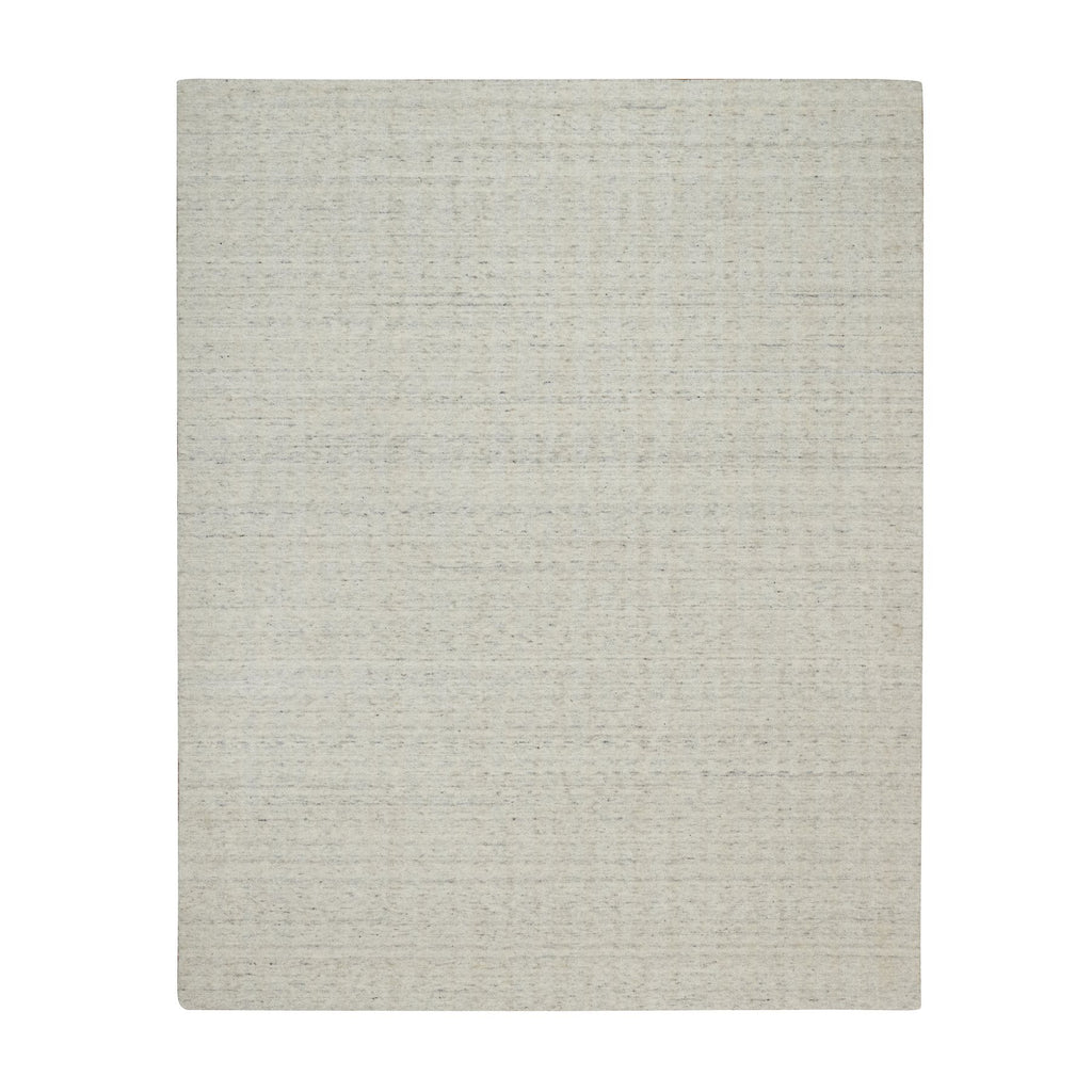 8'1"x10' Alabaster White, Hand Loomed, Vertical Stripes Design With Salt And Pepper Effect, Undyed Natural Wool, Oriental Rug FWR550062