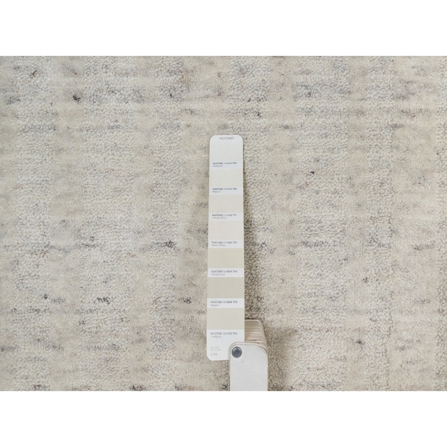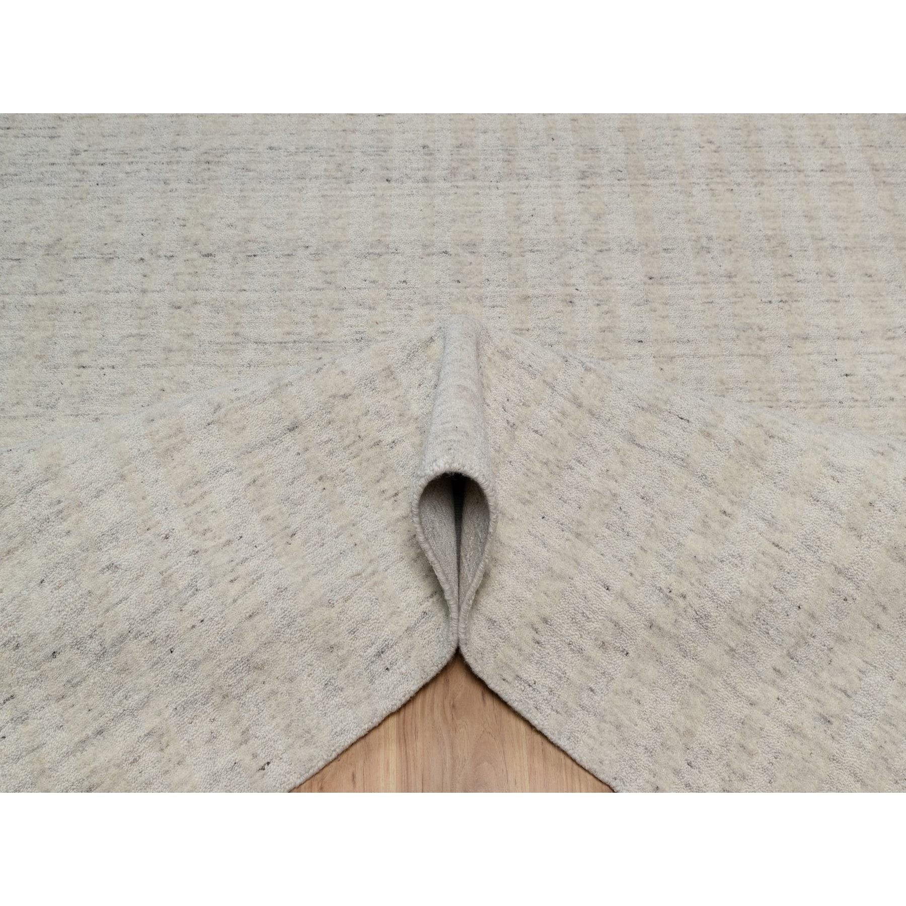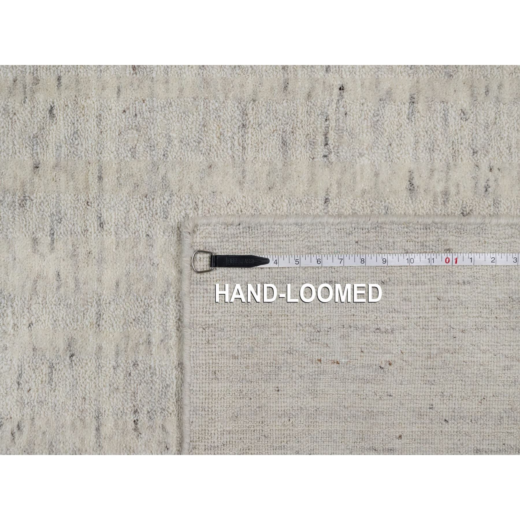 8'1"x10' Alabaster White, Hand Loomed, Vertical Stripes Design With Salt And Pepper Effect, Undyed Natural Wool, Oriental Rug FWR550062