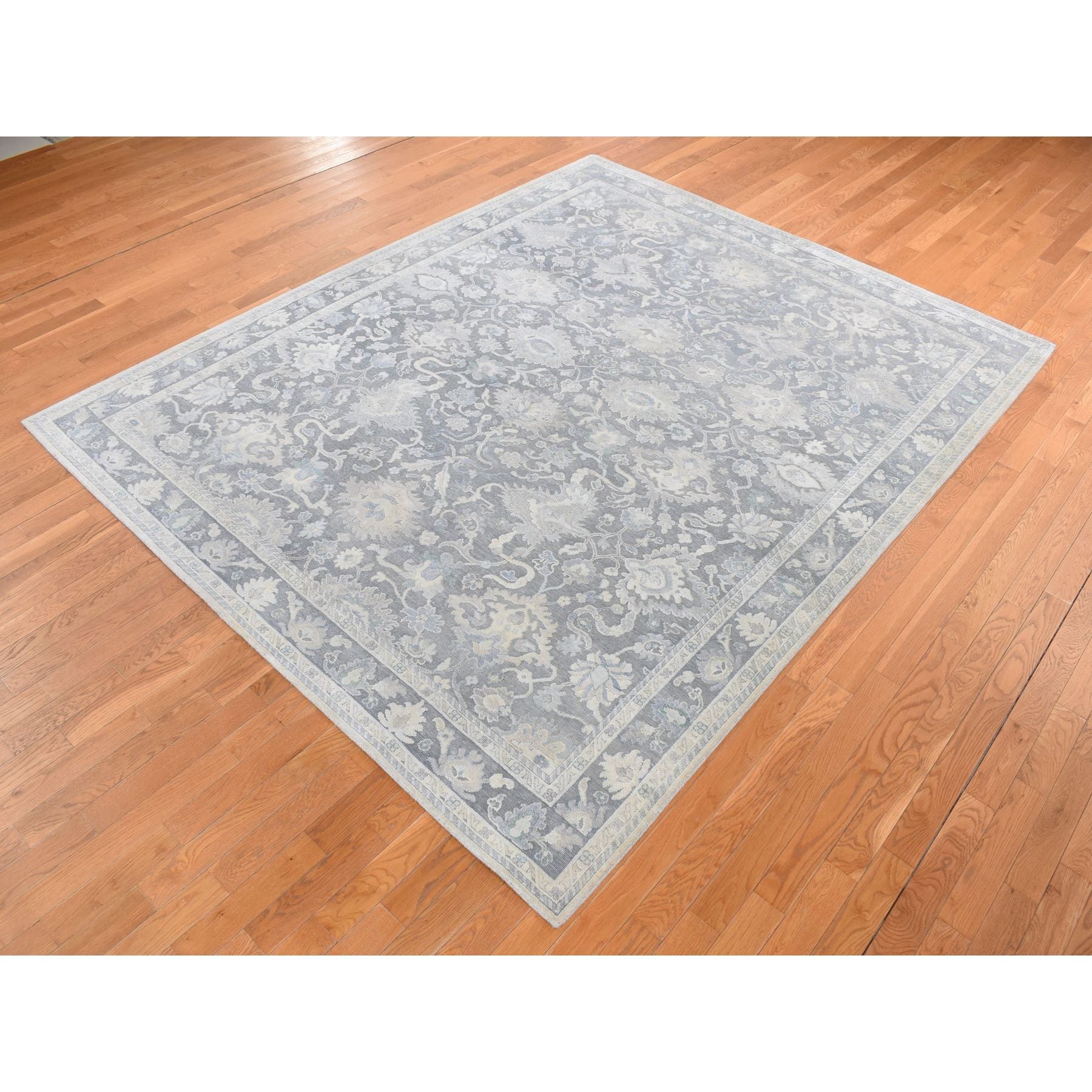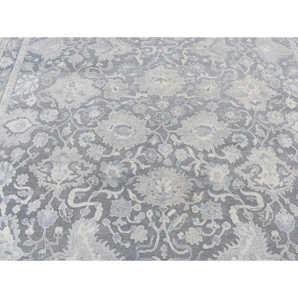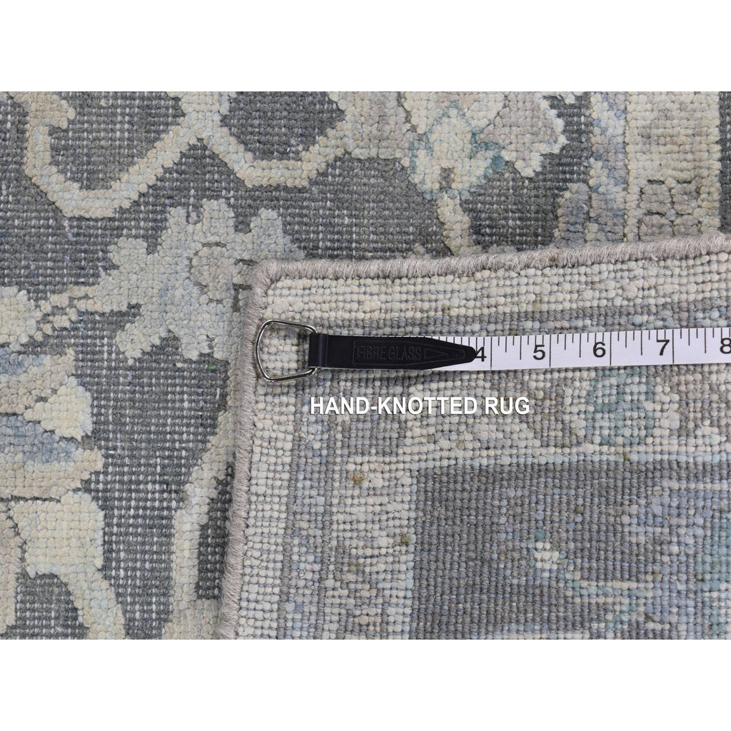 8'1"x10' Battleship Gray, Hand Knotted, Oushak Influence, Pure Silk With Textured Wool, Oriental Rug FWR522222