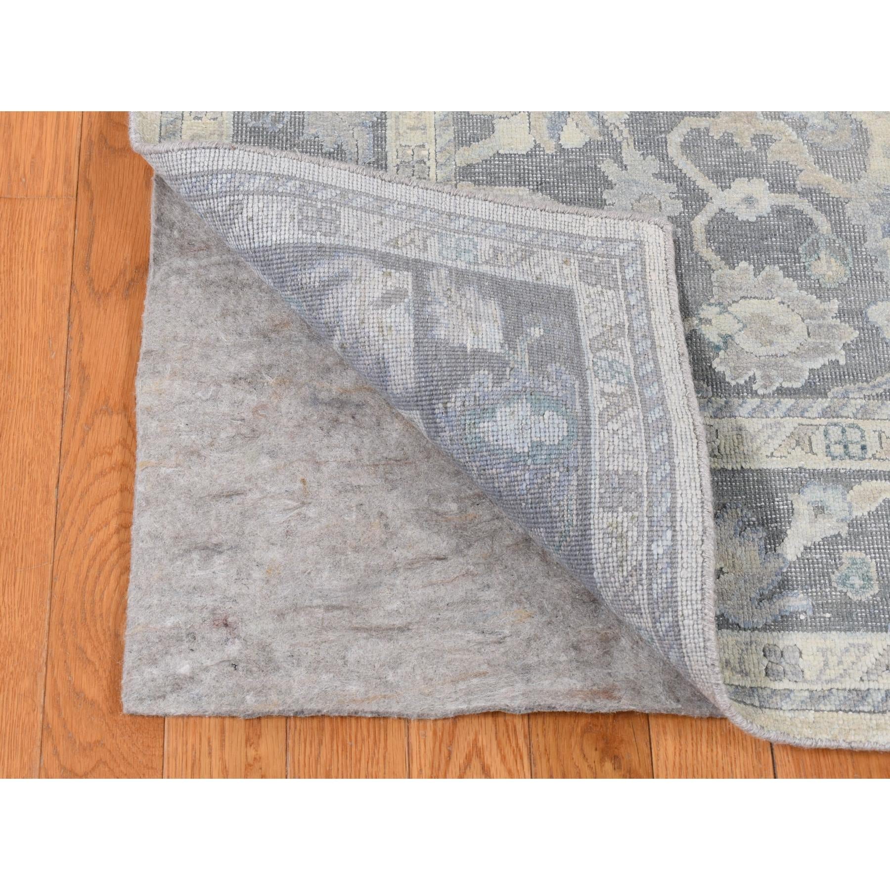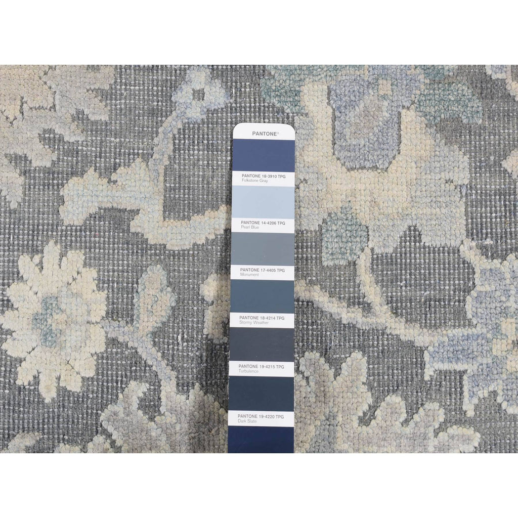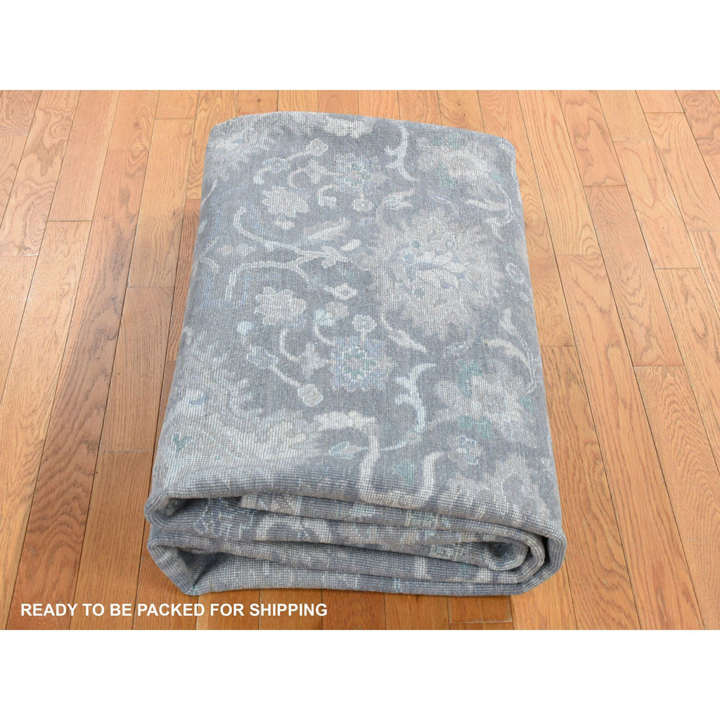 8'1"x10' Battleship Gray, Hand Knotted, Oushak Influence, Pure Silk With Textured Wool, Oriental Rug FWR522222