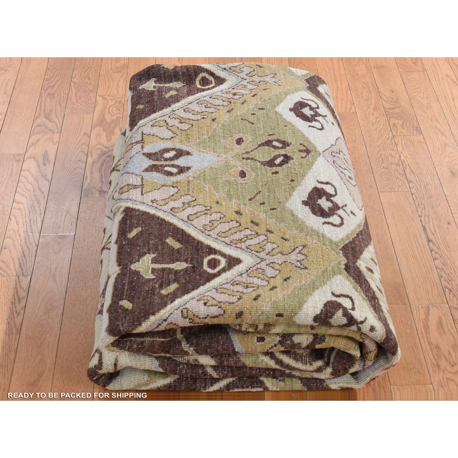 8'1"x10' Bistre Brown, Ikat Tribal And Geometric Design, Pure Wool, Hand Knotted, Oriental Rug FWR522042