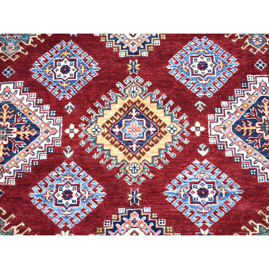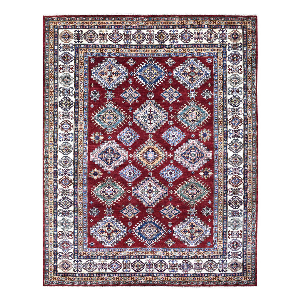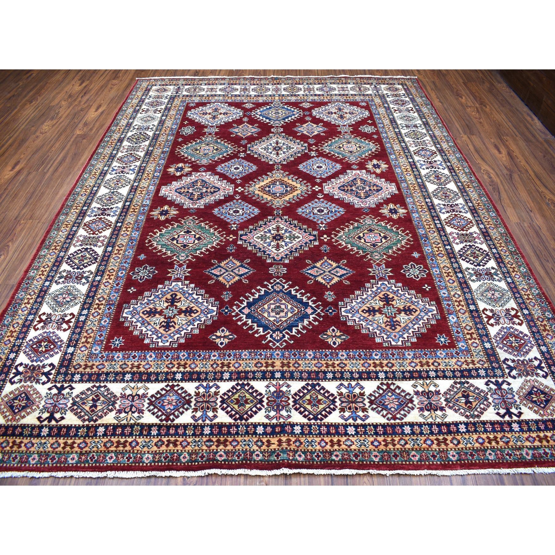 8'1"x10' Deep Red Soft Afghan Wool Hand Knotted Super Kazak With Geometric Design Oriental Rug FWR408348