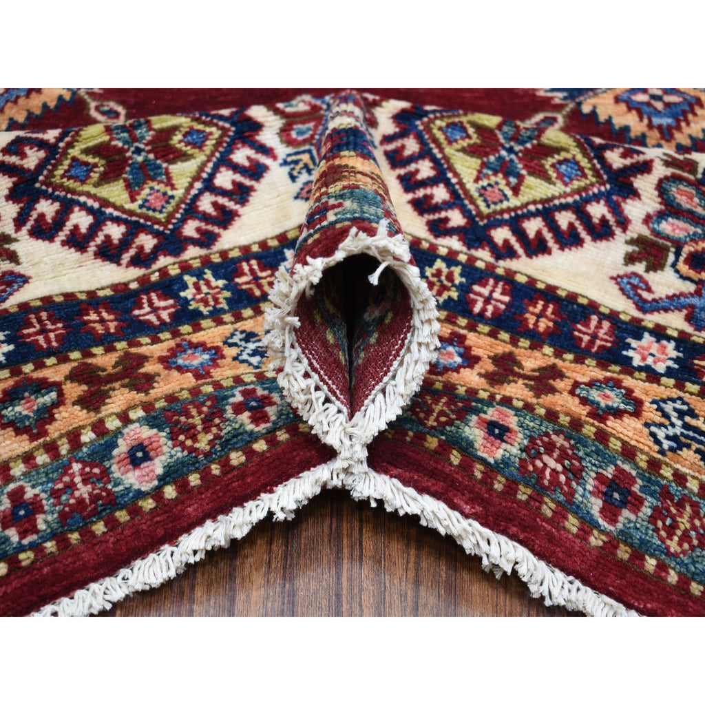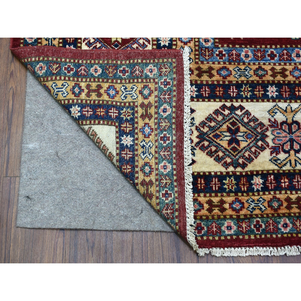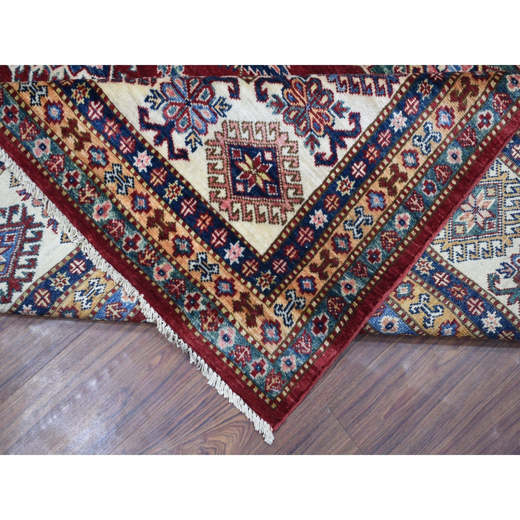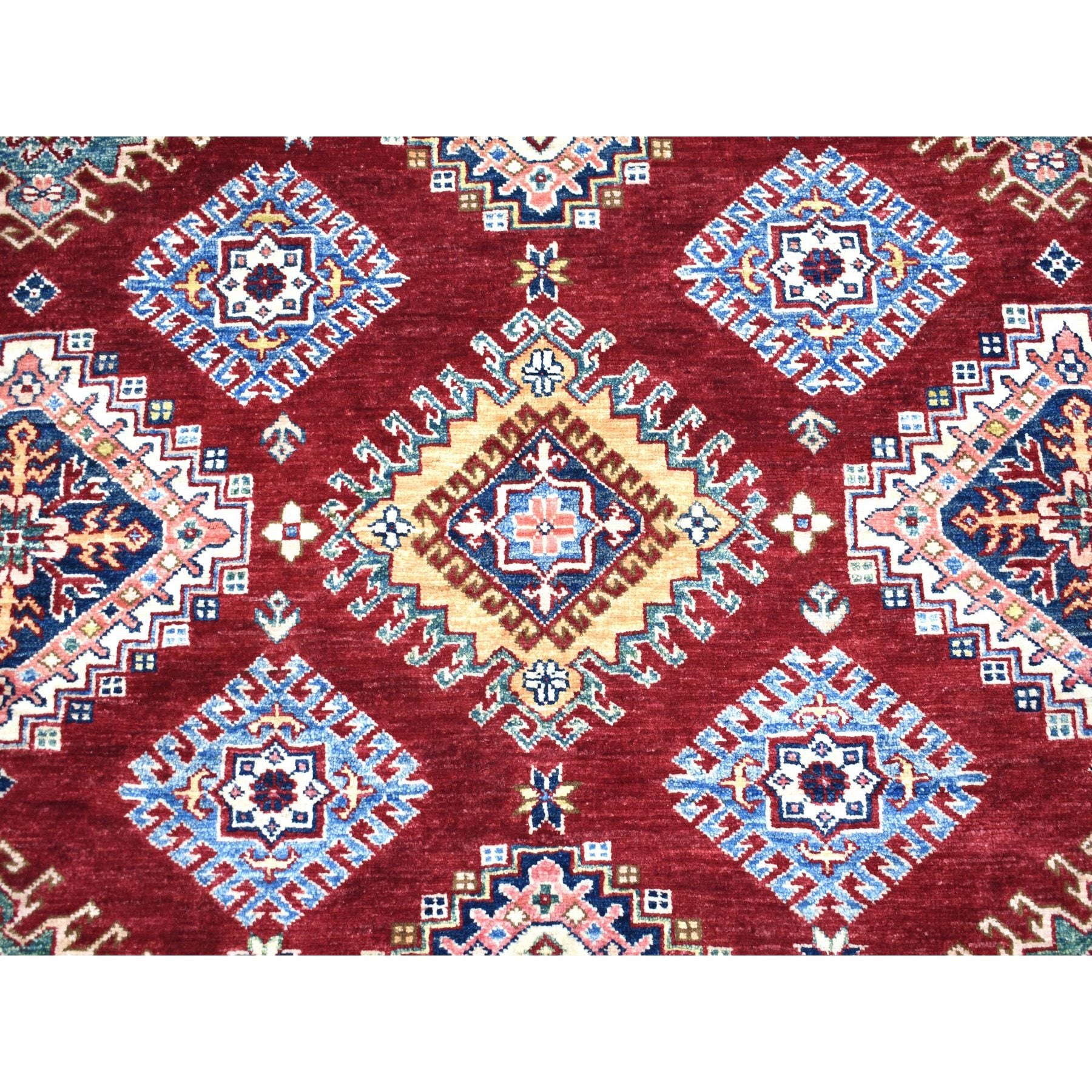 8'1"x10' Deep Red Soft Afghan Wool Hand Knotted Super Kazak With Geometric Design Oriental Rug FWR408348