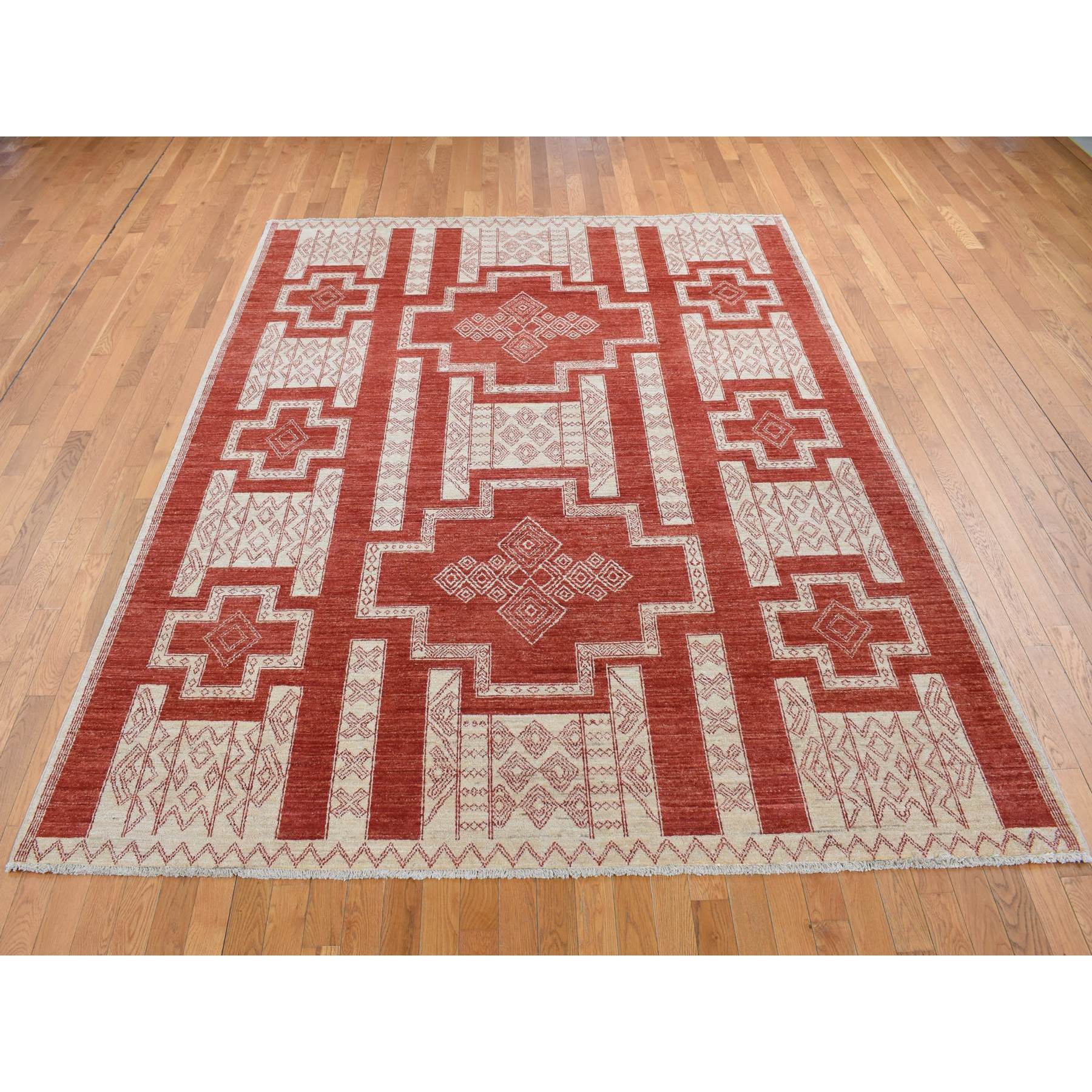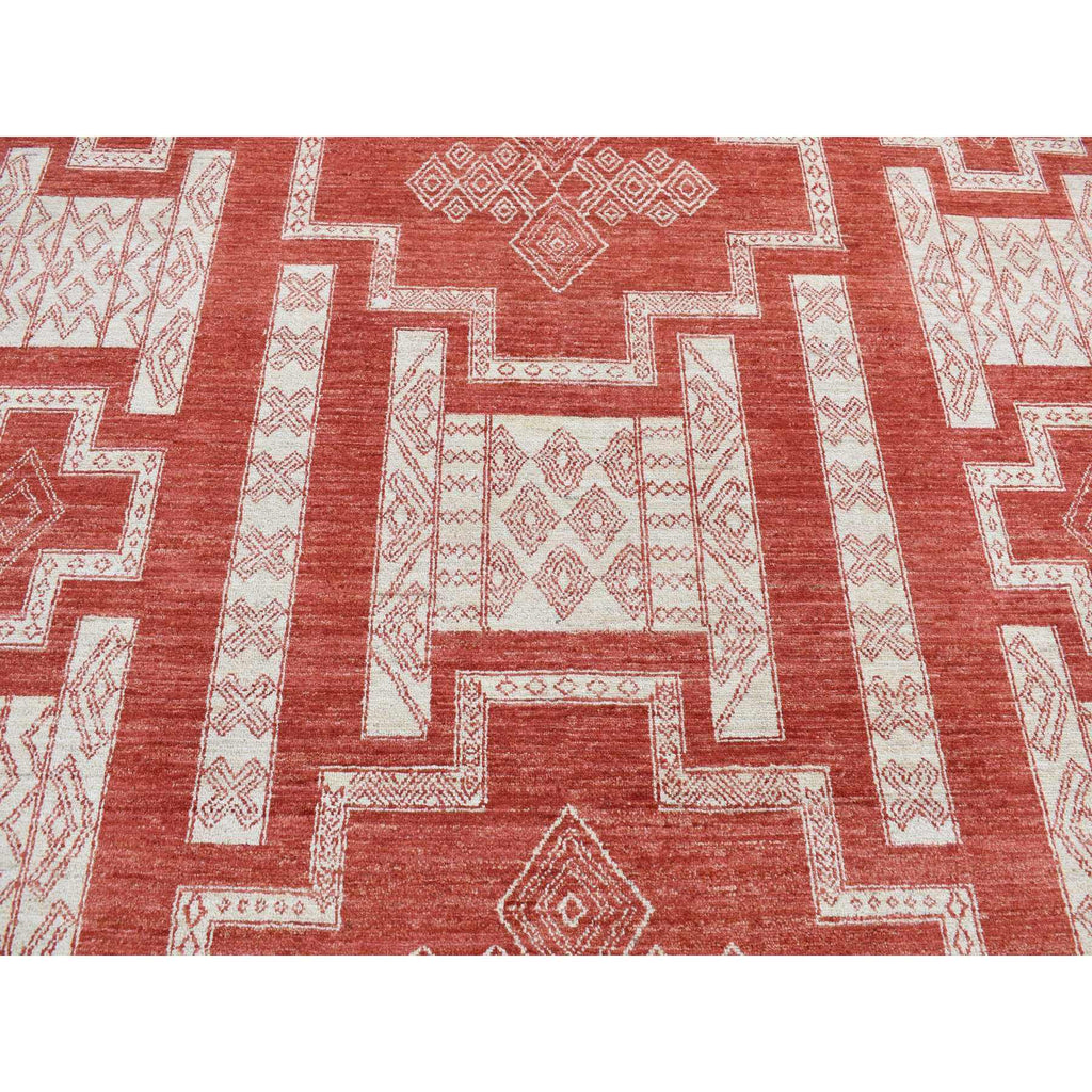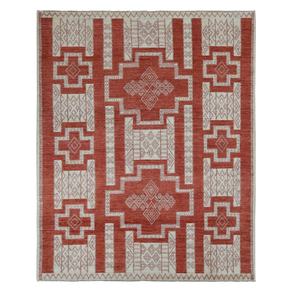 8'1"x10' Fire Brick Red, Pure Wool, Hand Knotted, Peshawar With Intricate Geometric Motifs, Oriental Rug FWR522288