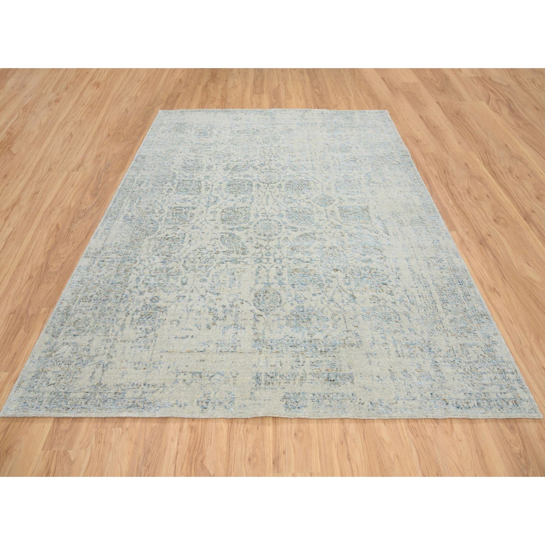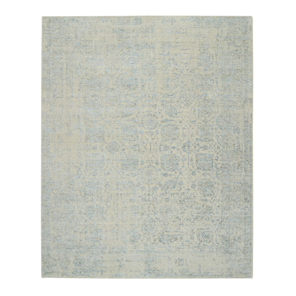 8'1"x10' Gray With Touches Of Blue, Jacquard Hand Loomed Wool And Plant Based Silk, Tabriz Design, Oriental Rug FWR390204