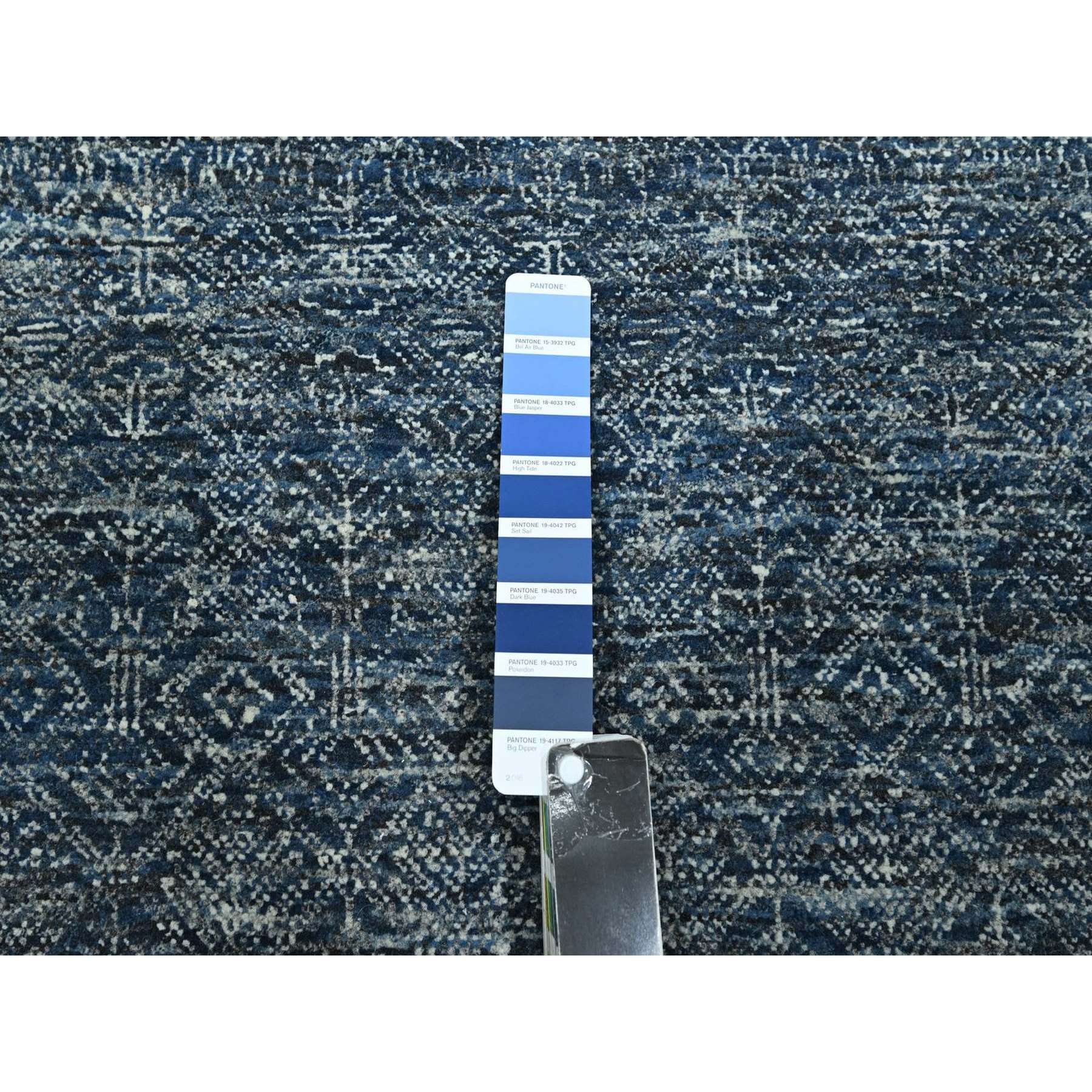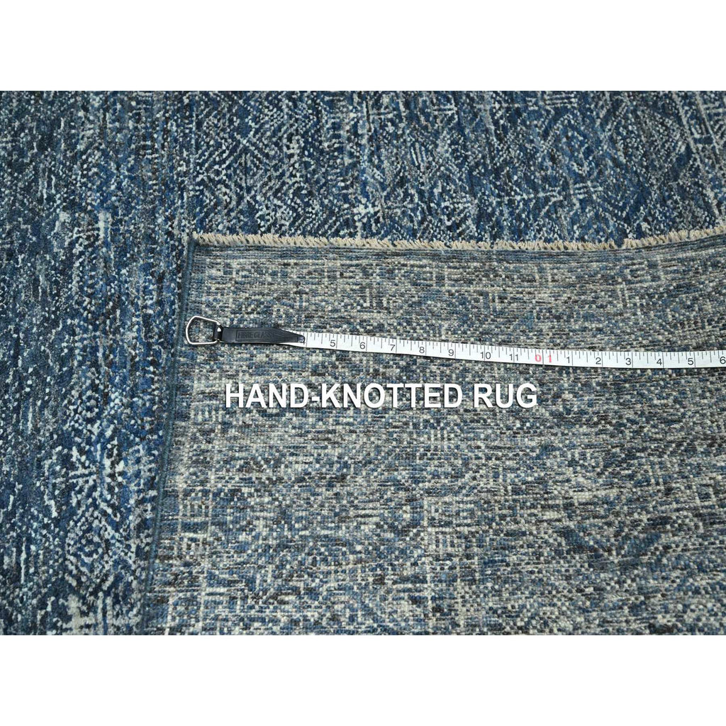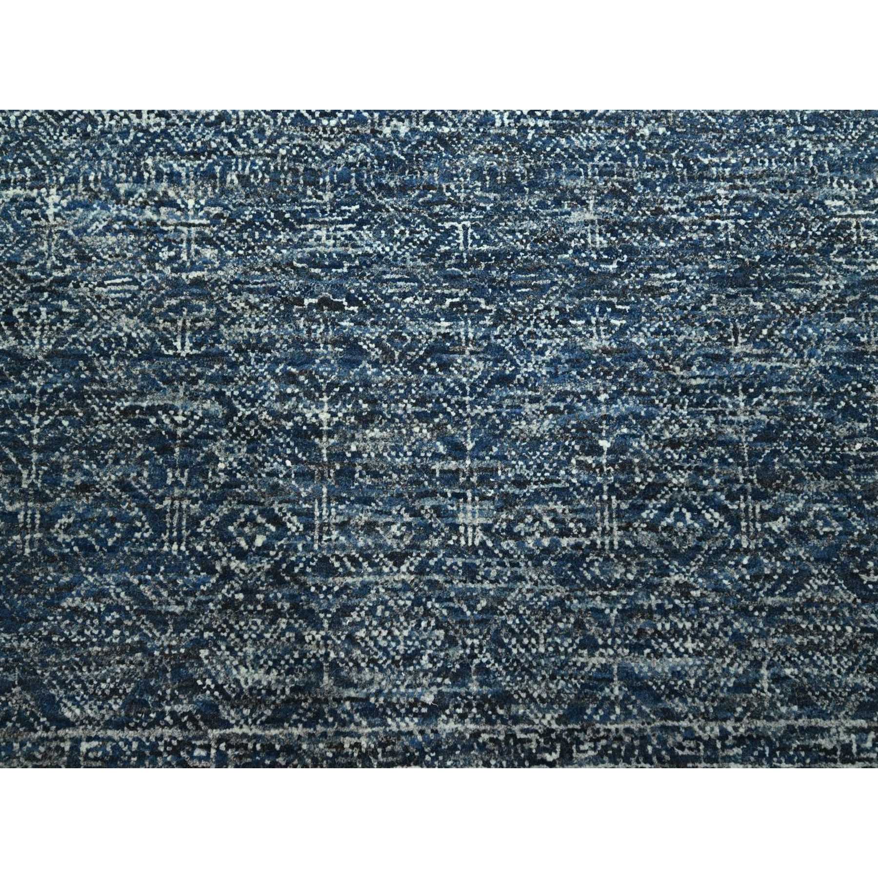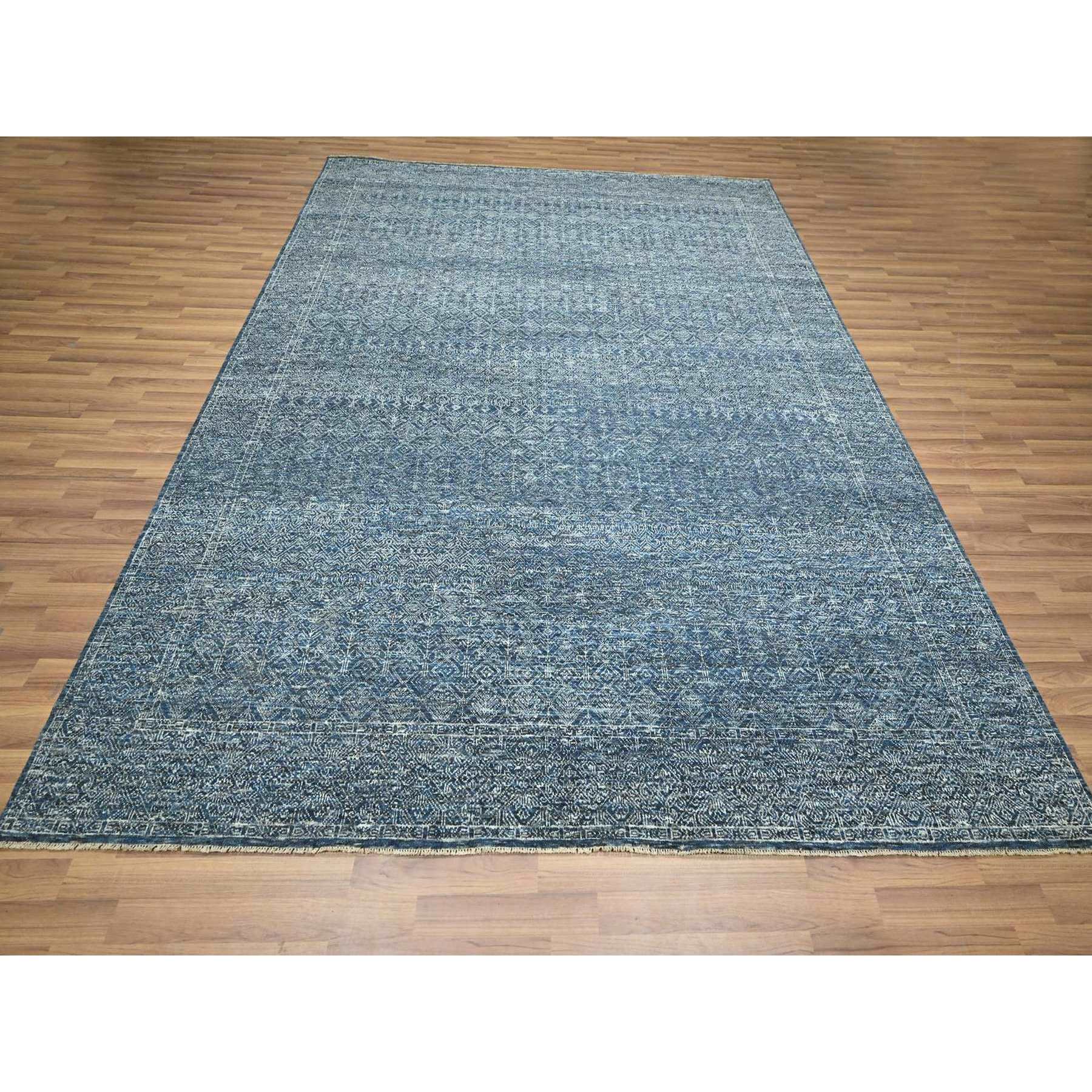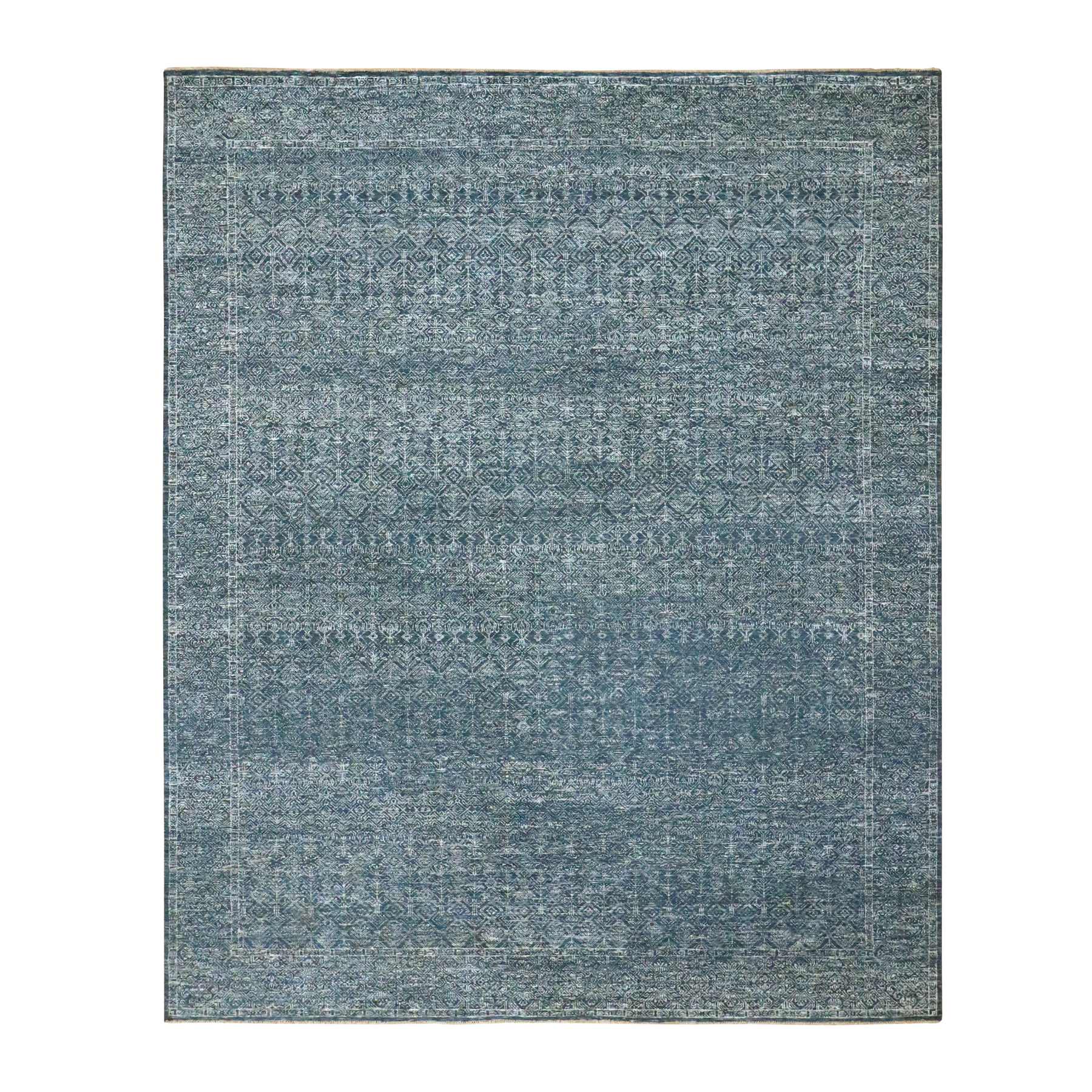 8'1"x10' Imperial Blue, Intricate Repetitive Geometric Tree Design, Tone On Tone, Hand Knotted, Wool And Silk, Oriental Rug FWR459372