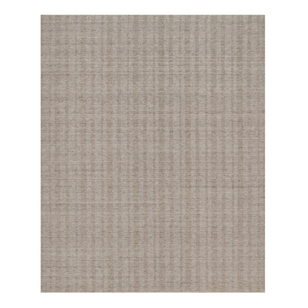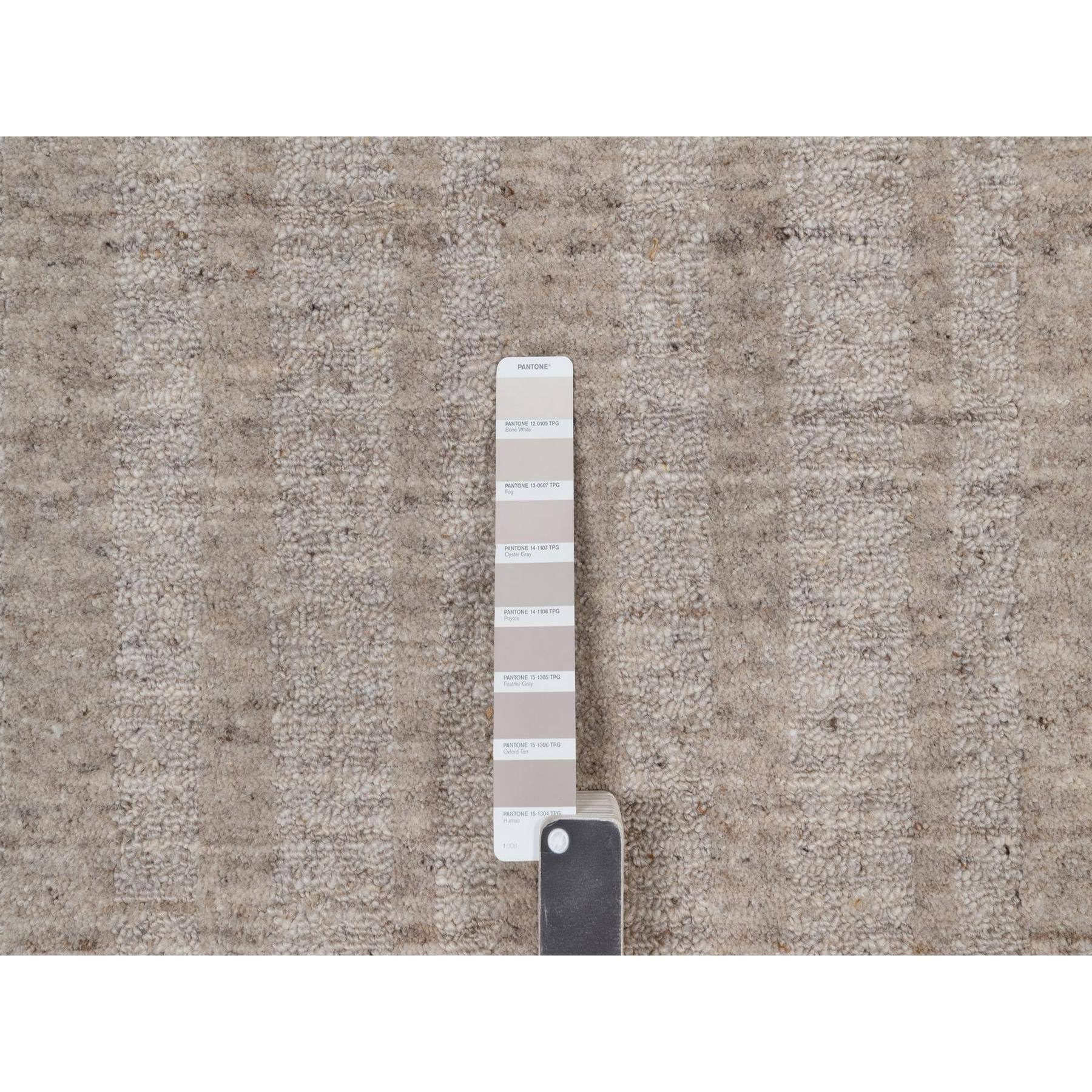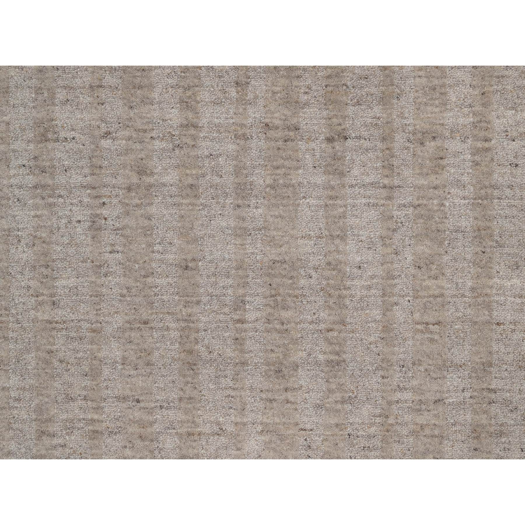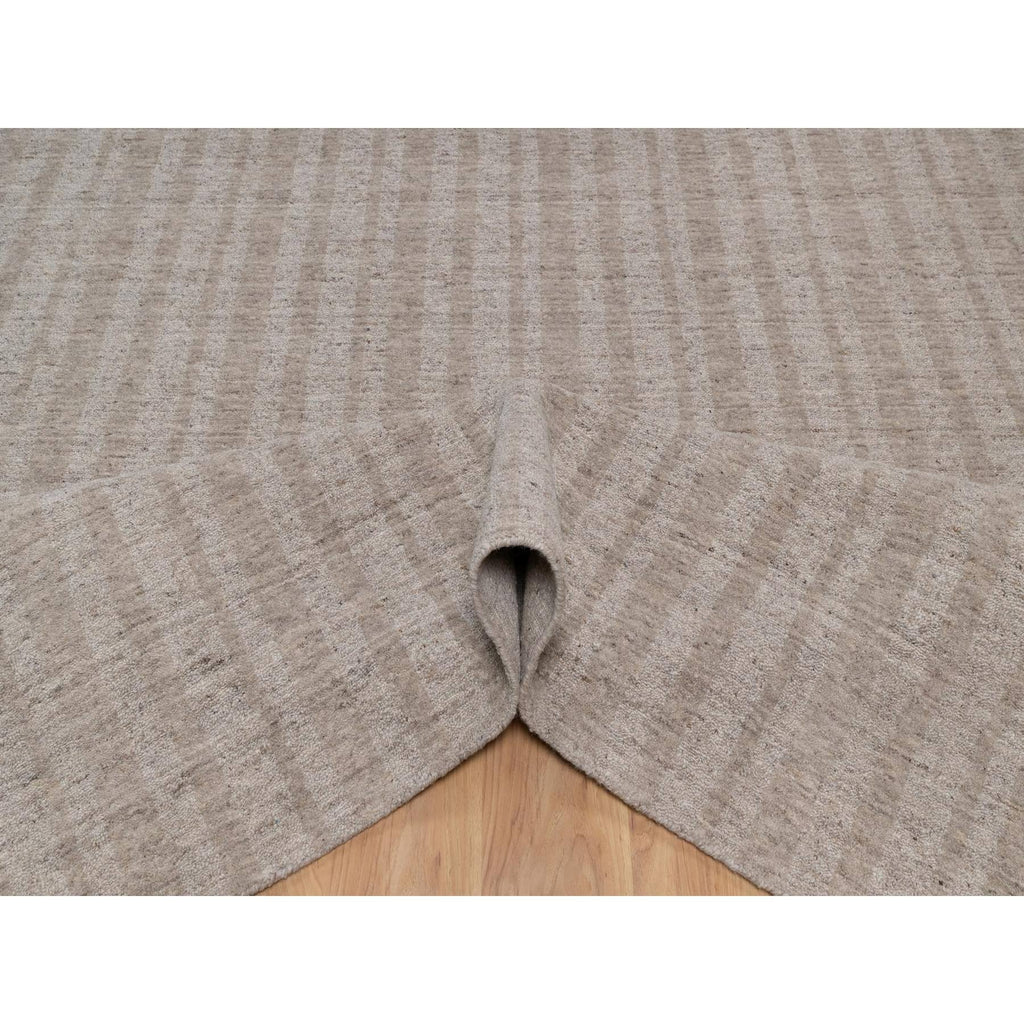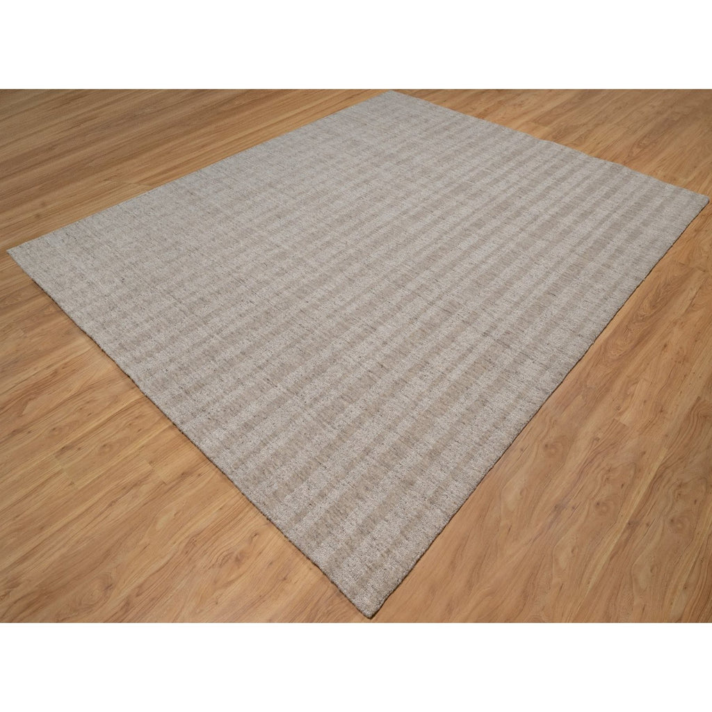 8'1"x10' Tan Brown, Hand Loomed, Salt And Pepper Effect With Vertical Stripes Design, Undyed Natural Wool, Oriental Rug FWR549990