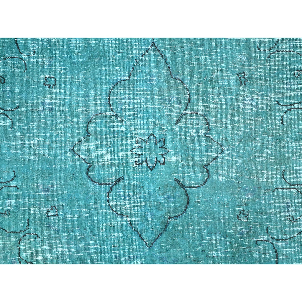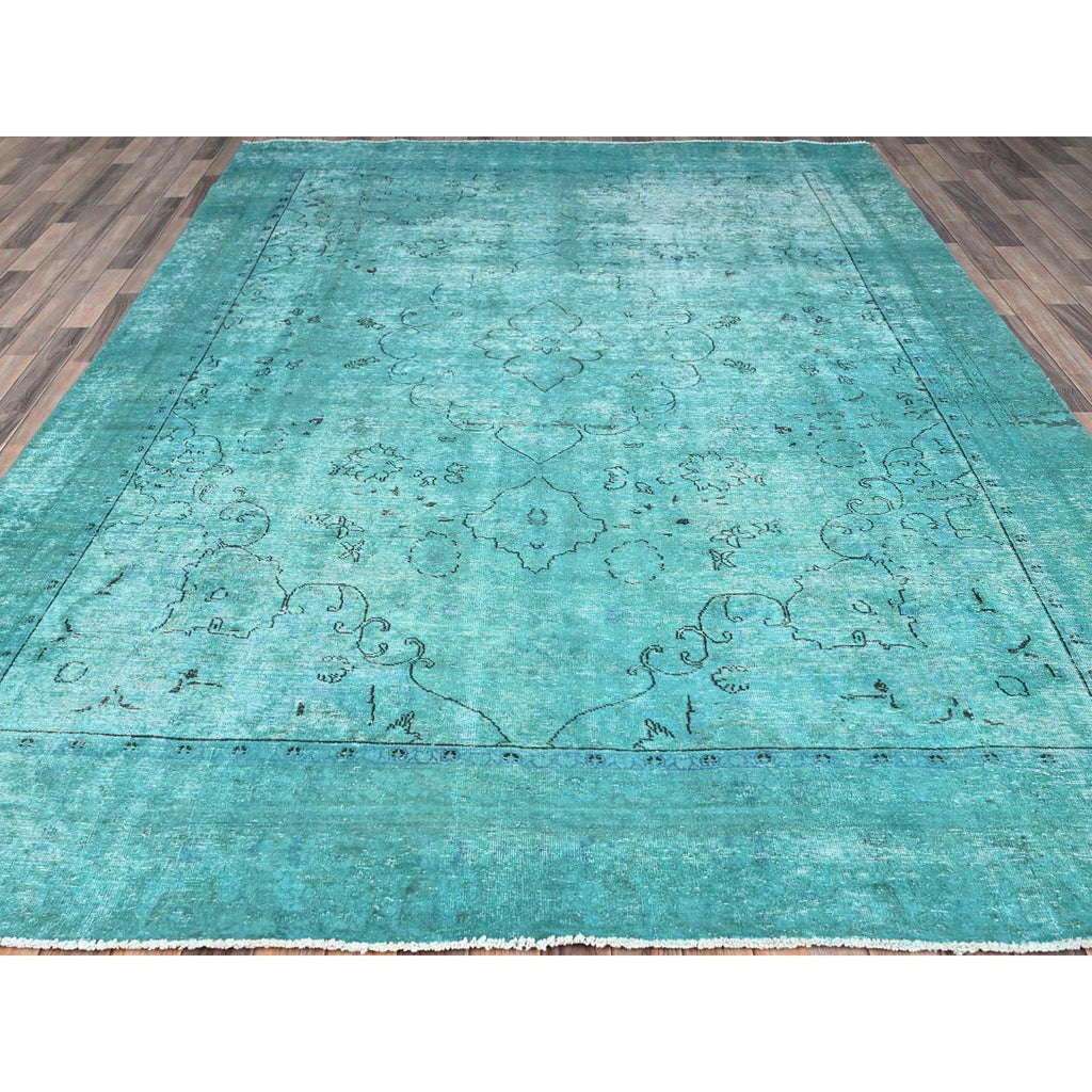 8'1"x11' Deep Green, Overdyed Vintage Persian Tabriz Sides And Ends Professionally Secured And Cleaned, Distressed Sheared Low, Hand Knotted, Cropped Thin, Abrash Evenly Worn 100% Wool Oriental Rug FWR521592