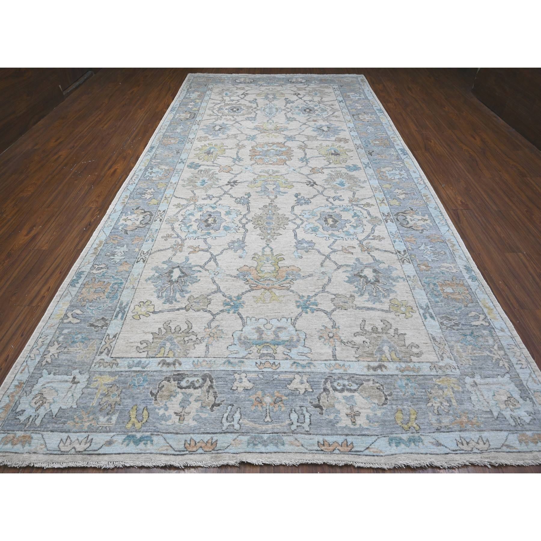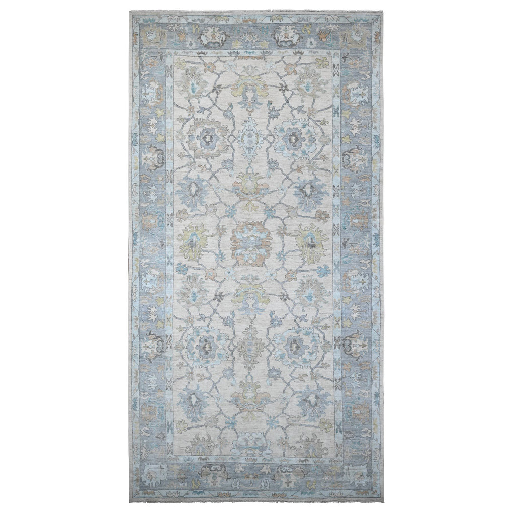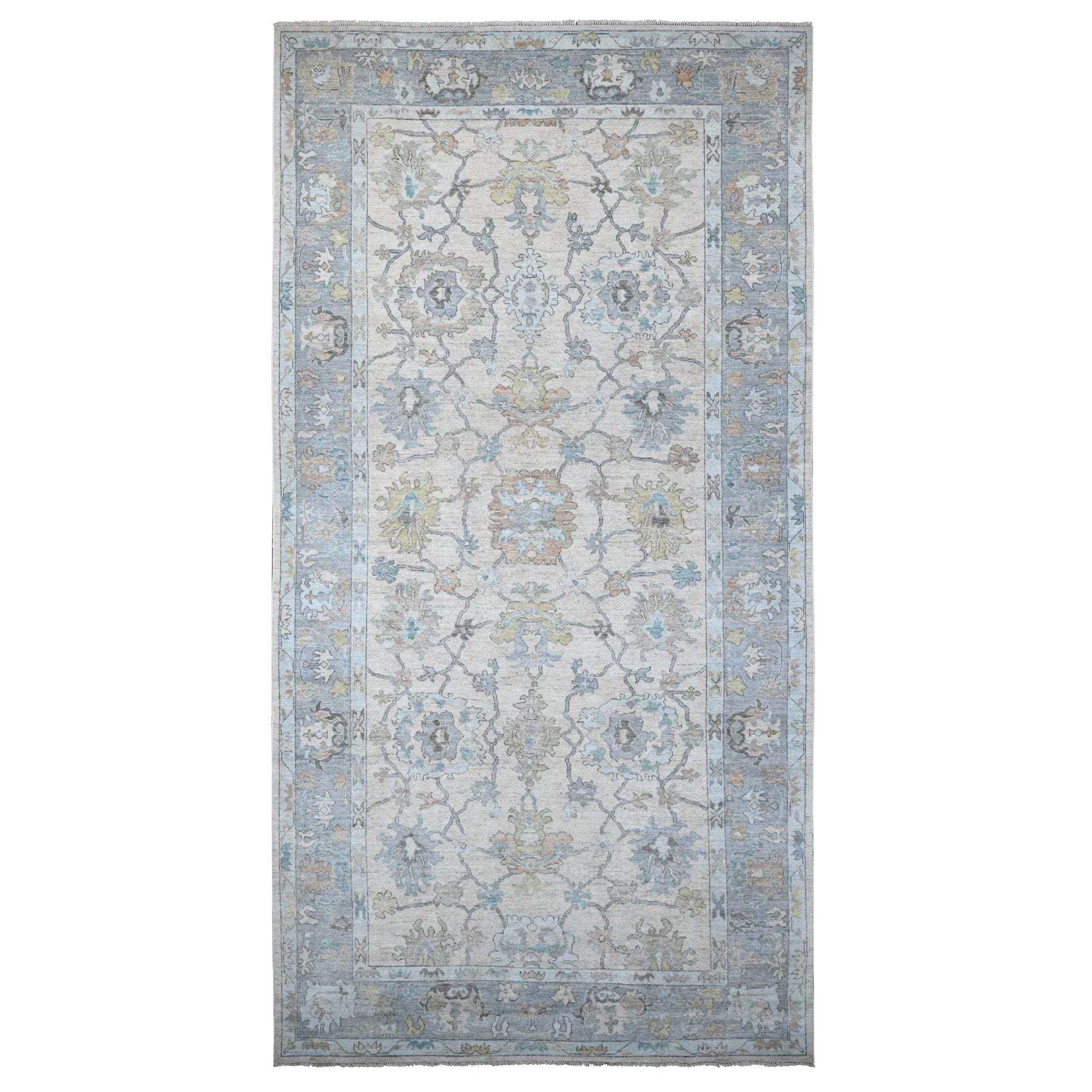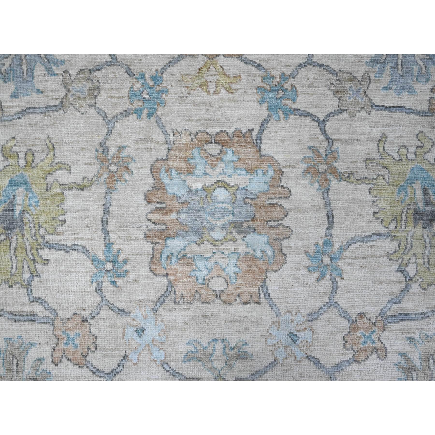 8'1"x15'7" Platinum Gray, Wool Foundation, Natural Dyes With Rural Floral All Over Design, Hand Knotted Afghan Angora Oushak, Xl Oriental Rug FWR535560