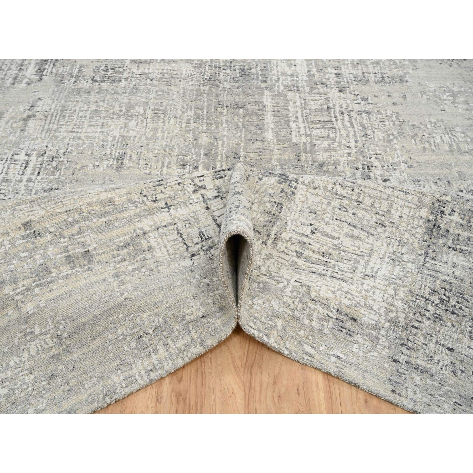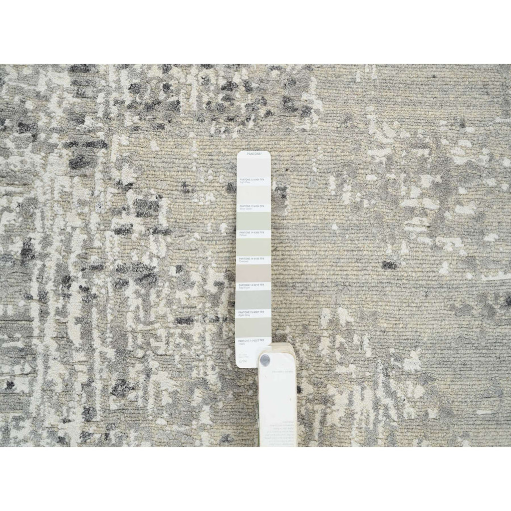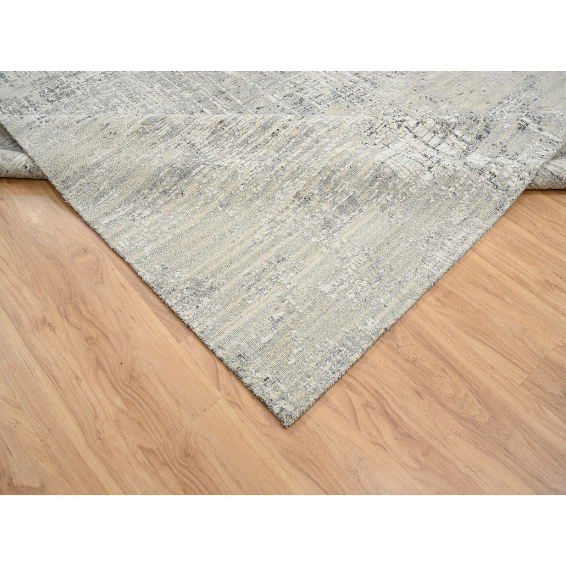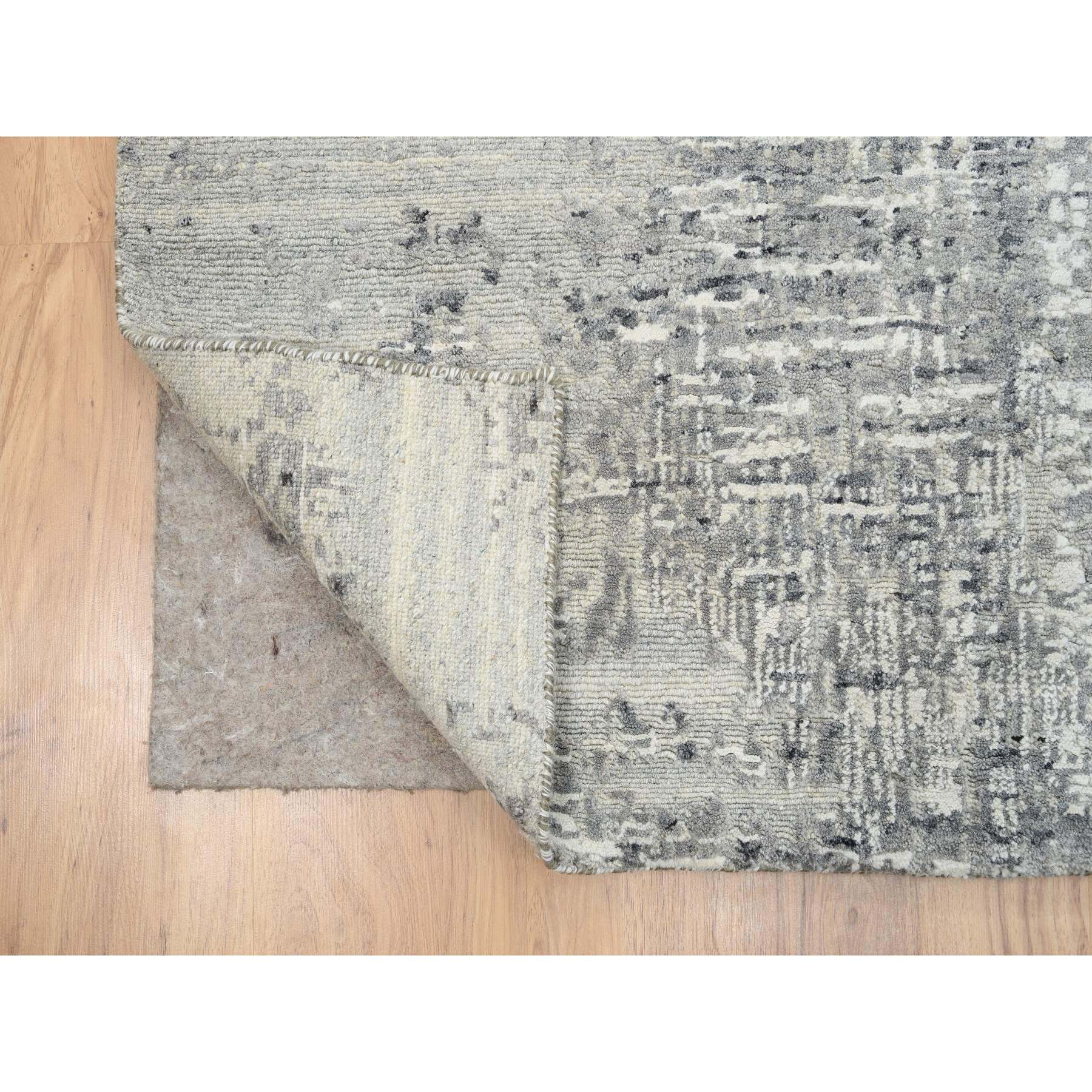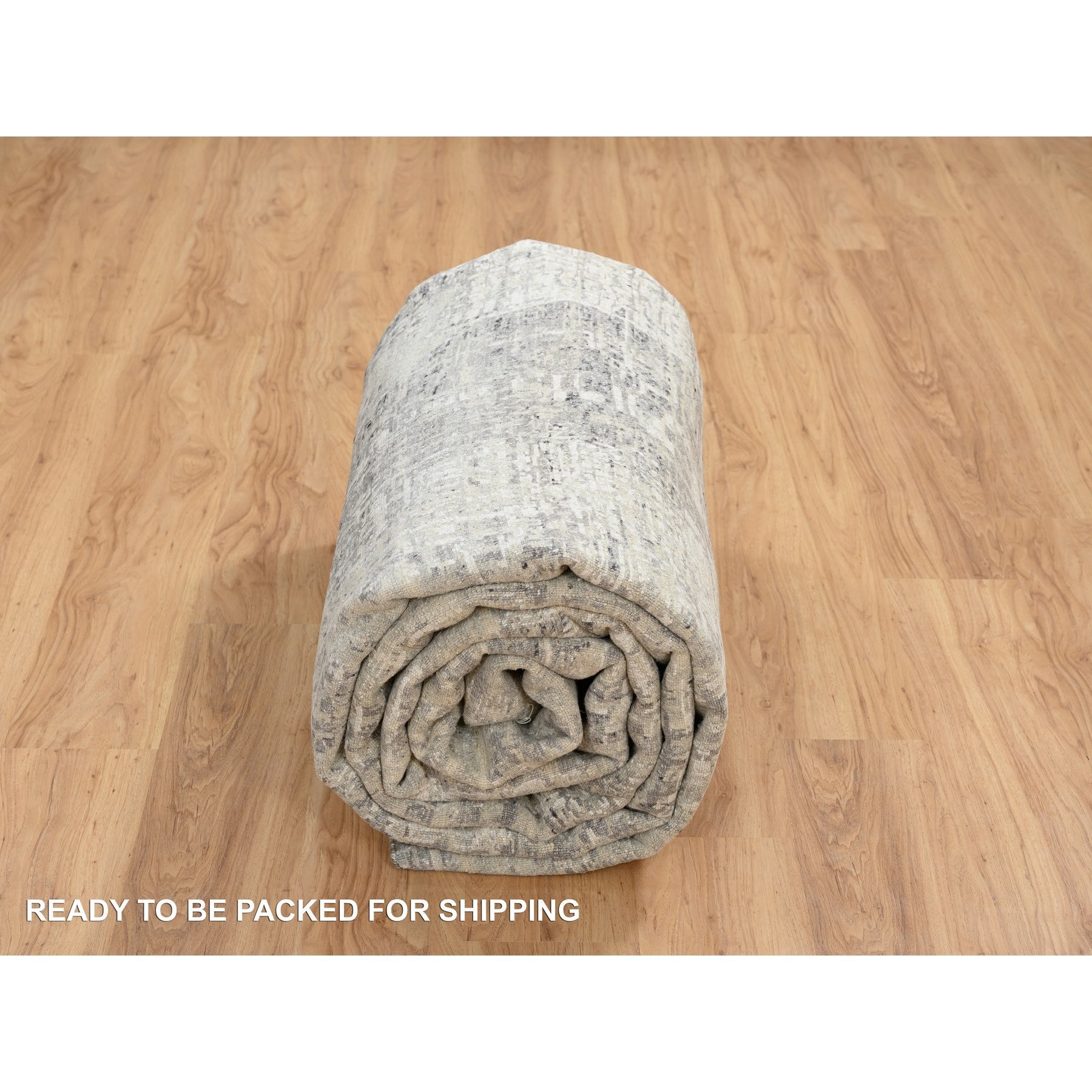 8'1"x16' Light Gray, Modern Design, Hand Spun Undyed Natural Wool, Hand Knotted, Gallery Size Runner Oriental Rug FWR388134