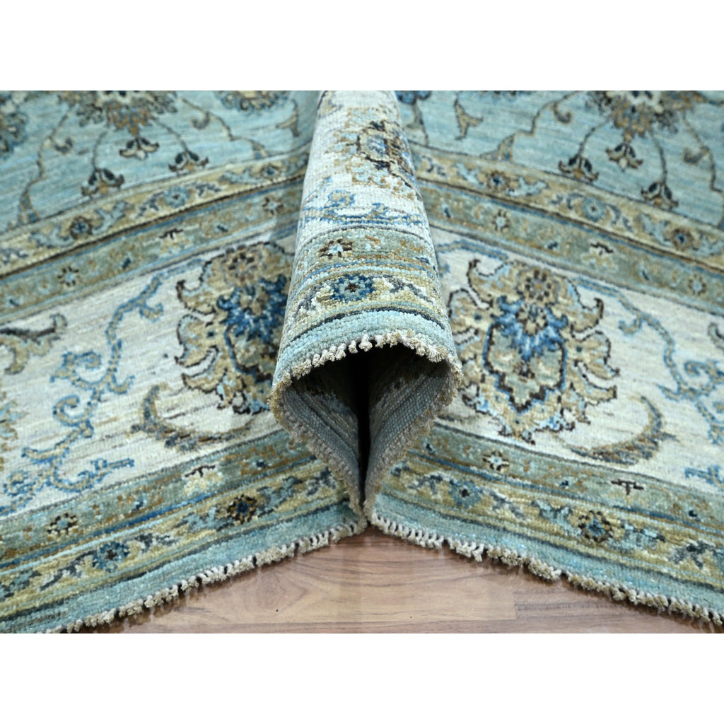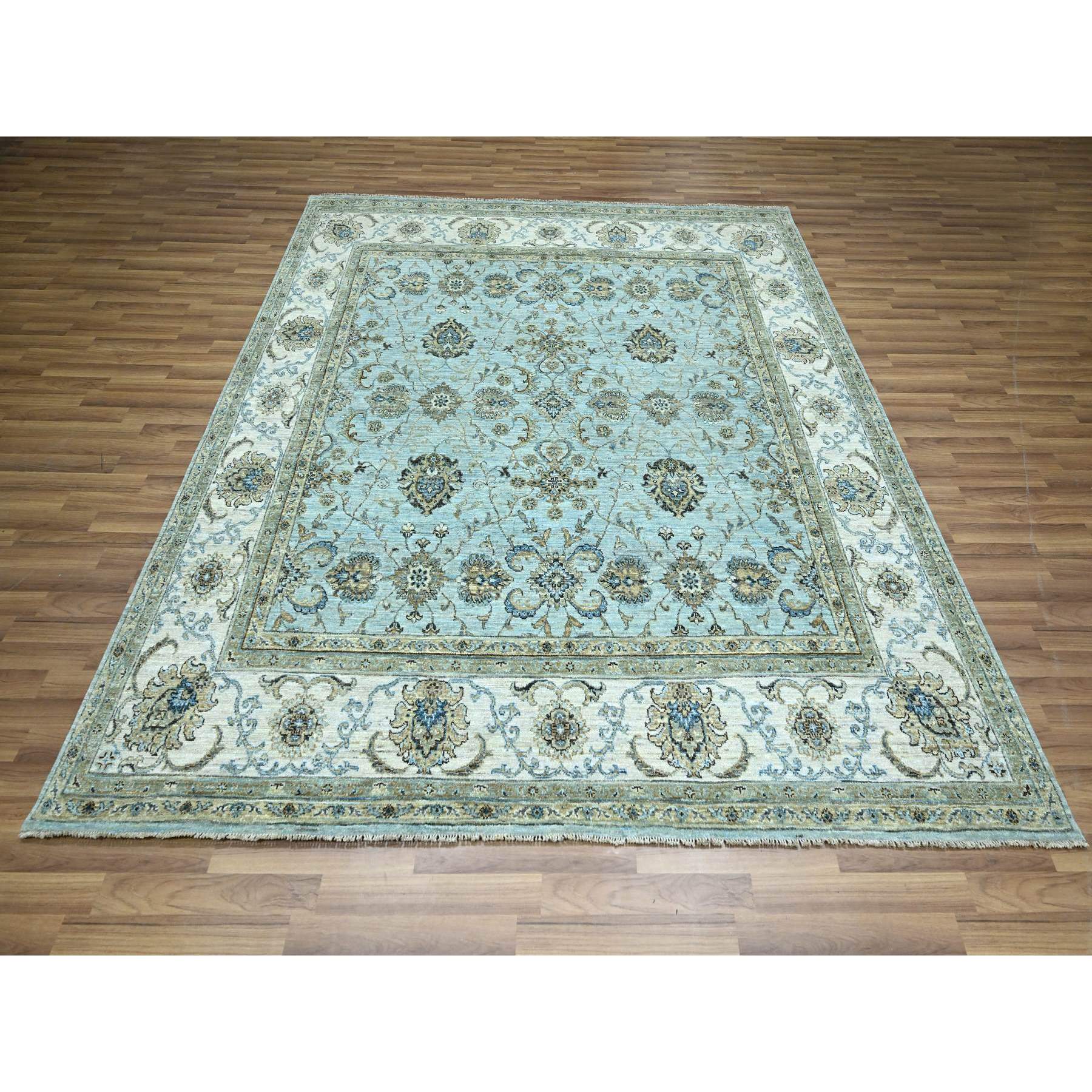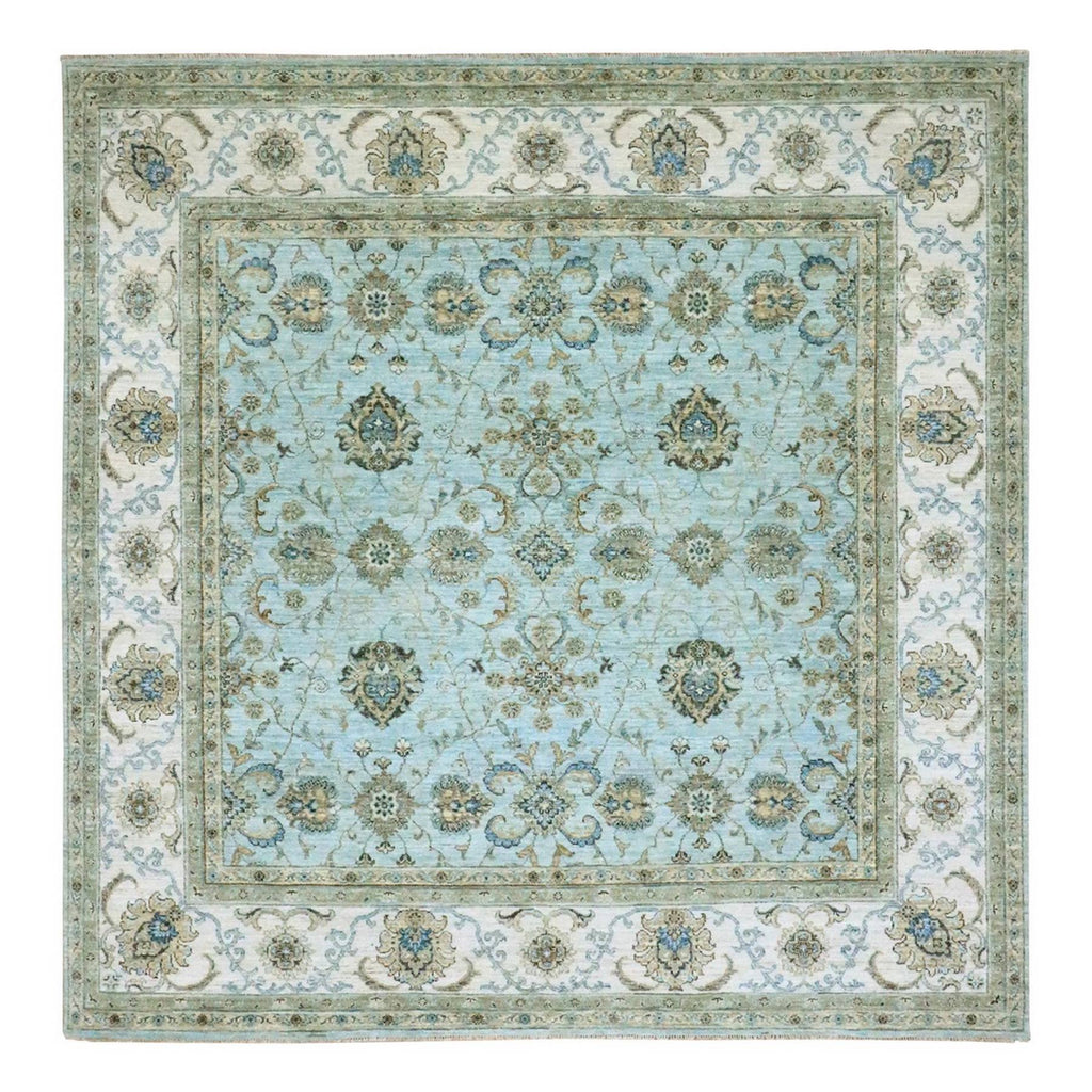 8'1"x8'1" Crystal Blue, Agra, Shah Abbas Flower Vines Design, Luxurious Wool, Denser Weave, Vegetable Dyes, Hand Knotted, Square, Oriental Rug FWR456804