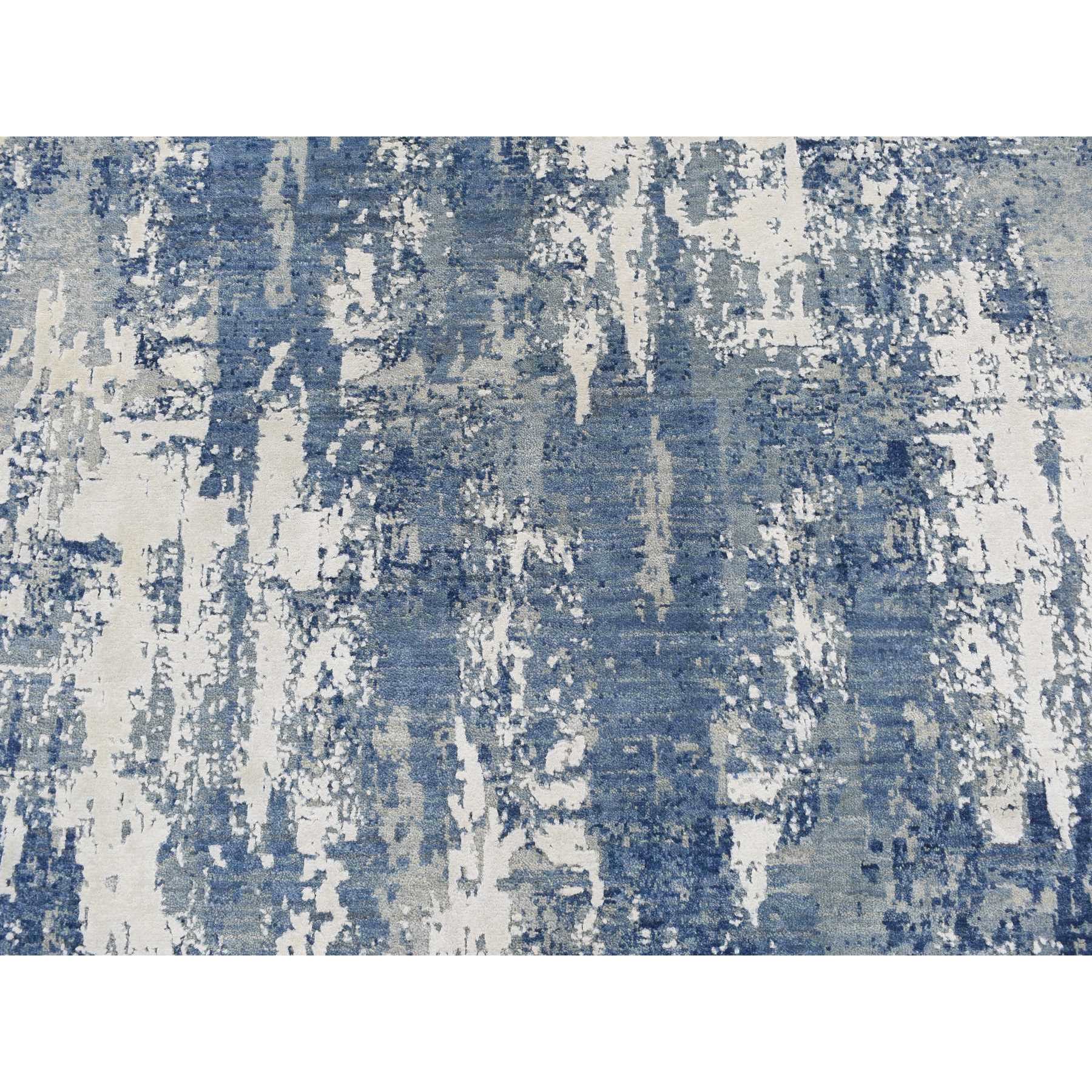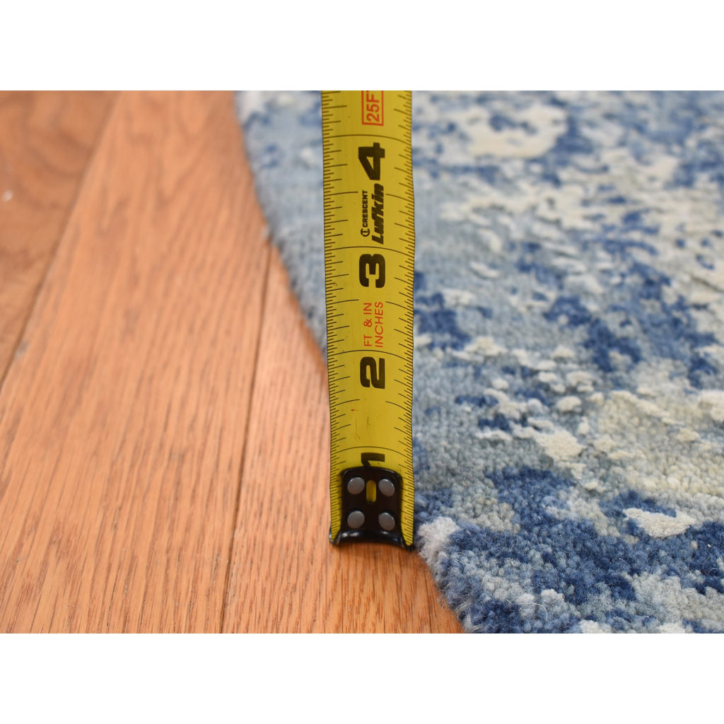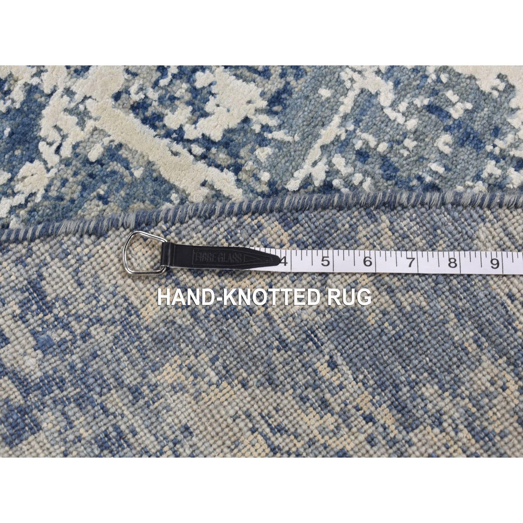 8'1"x8'1" Prussian Blue, Oceanic Abstract Design, Wool And Pure Silk, Hand Knotted, Round Oriental Rug FWR524136