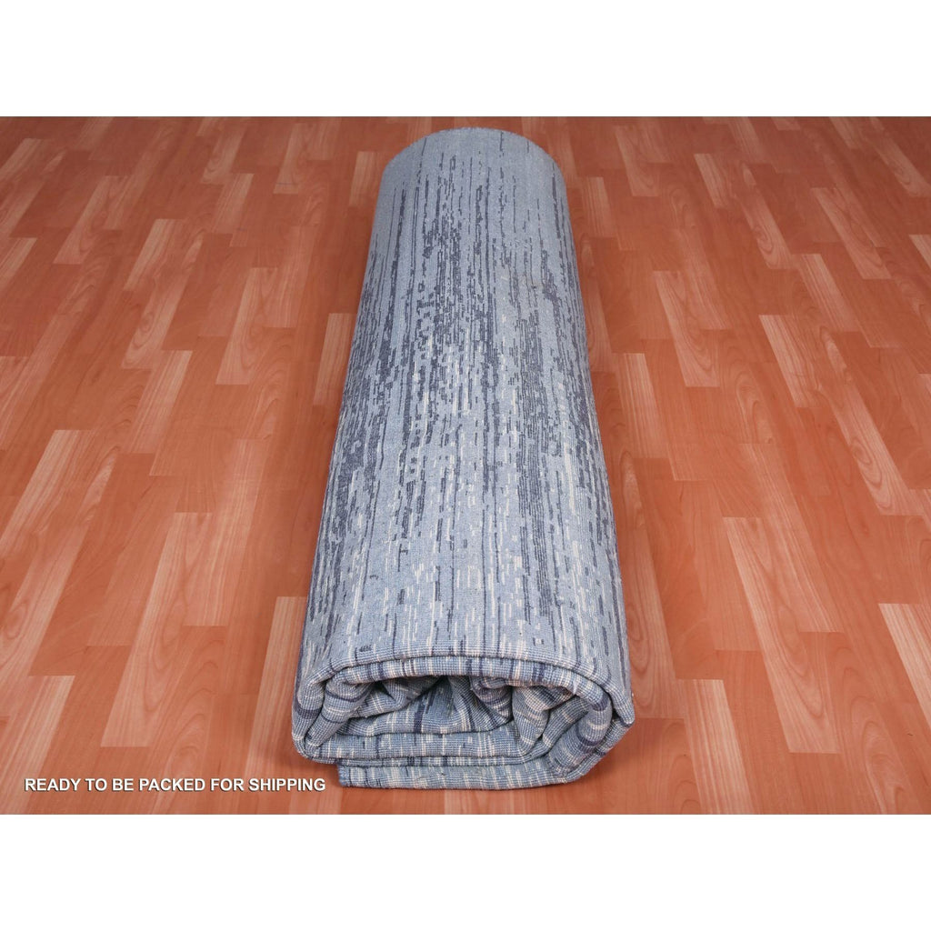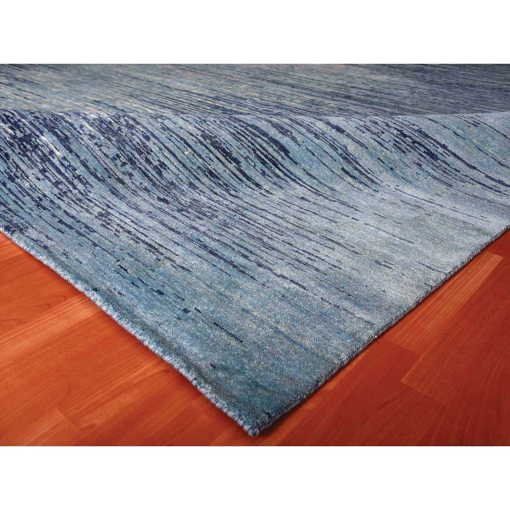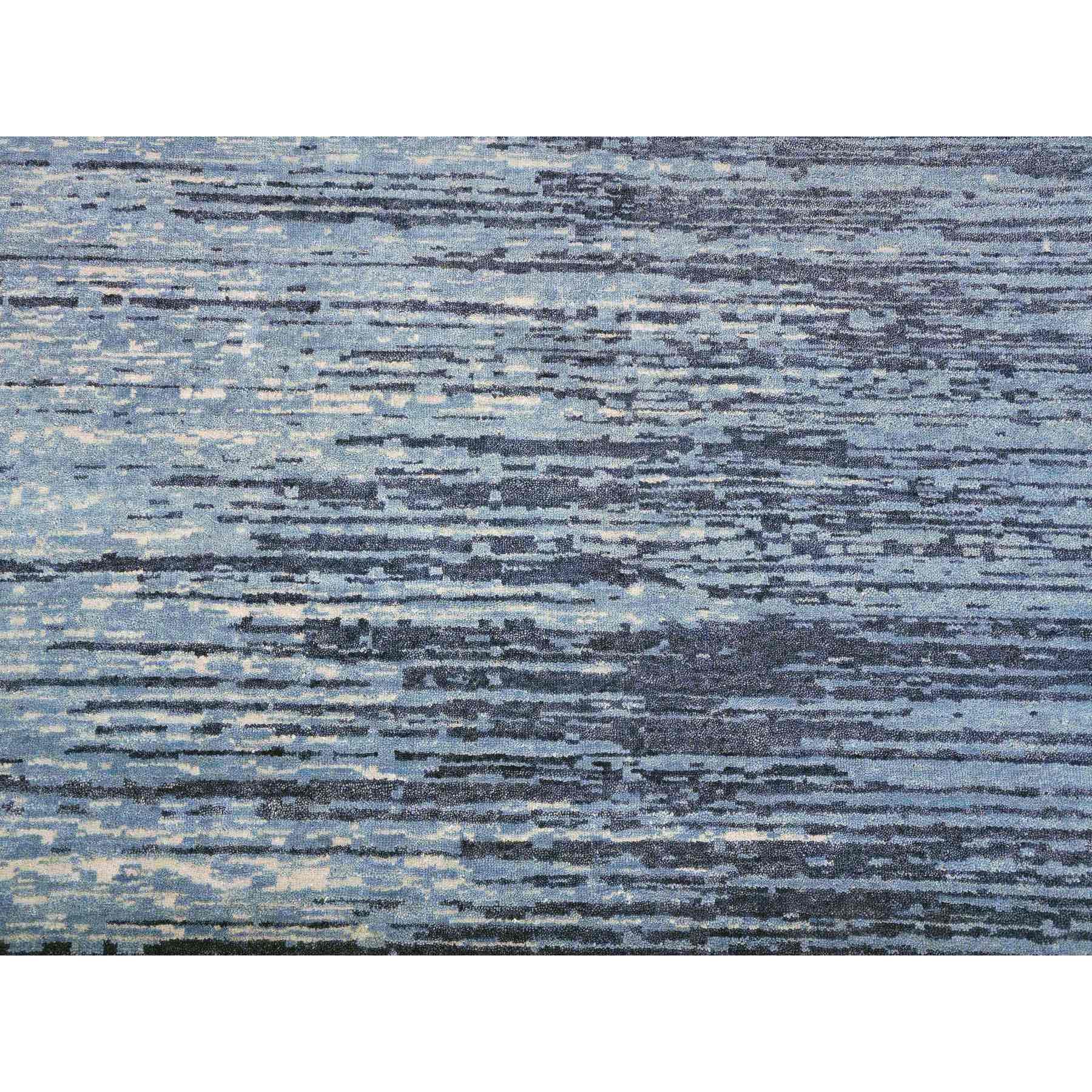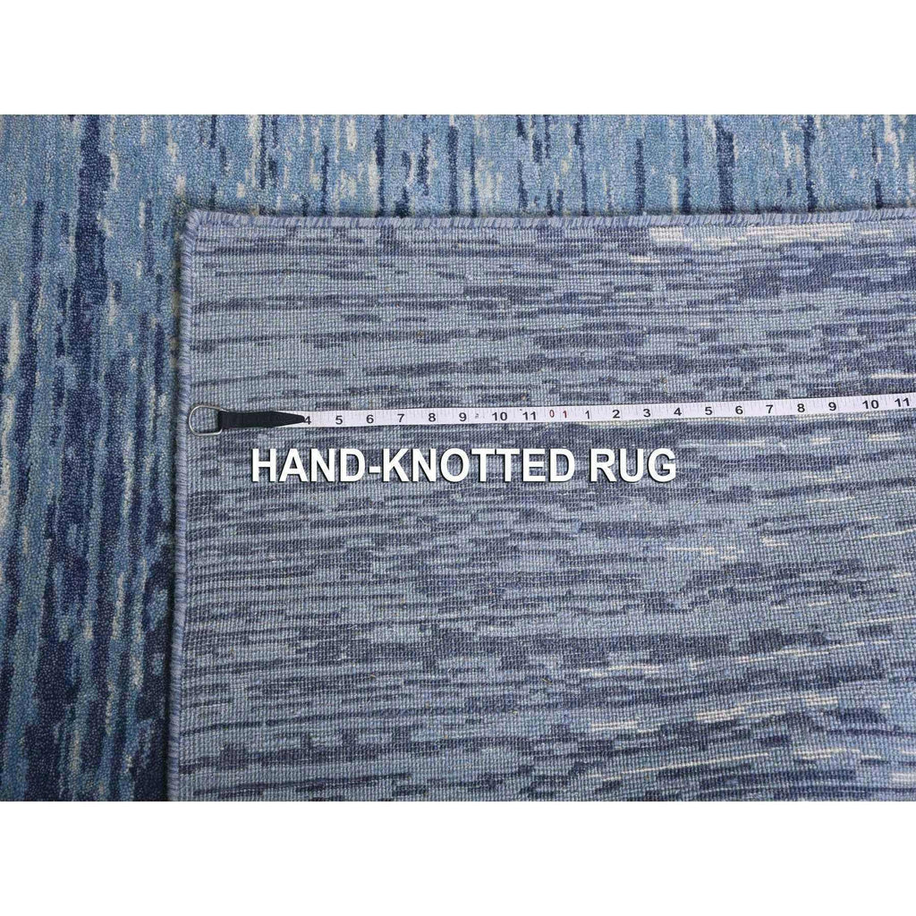 8'1"x8'1" Pure Wool Horizontal Ombre Design Blue Oceanic Hand Knotted Square Oriental Rug FWR401106