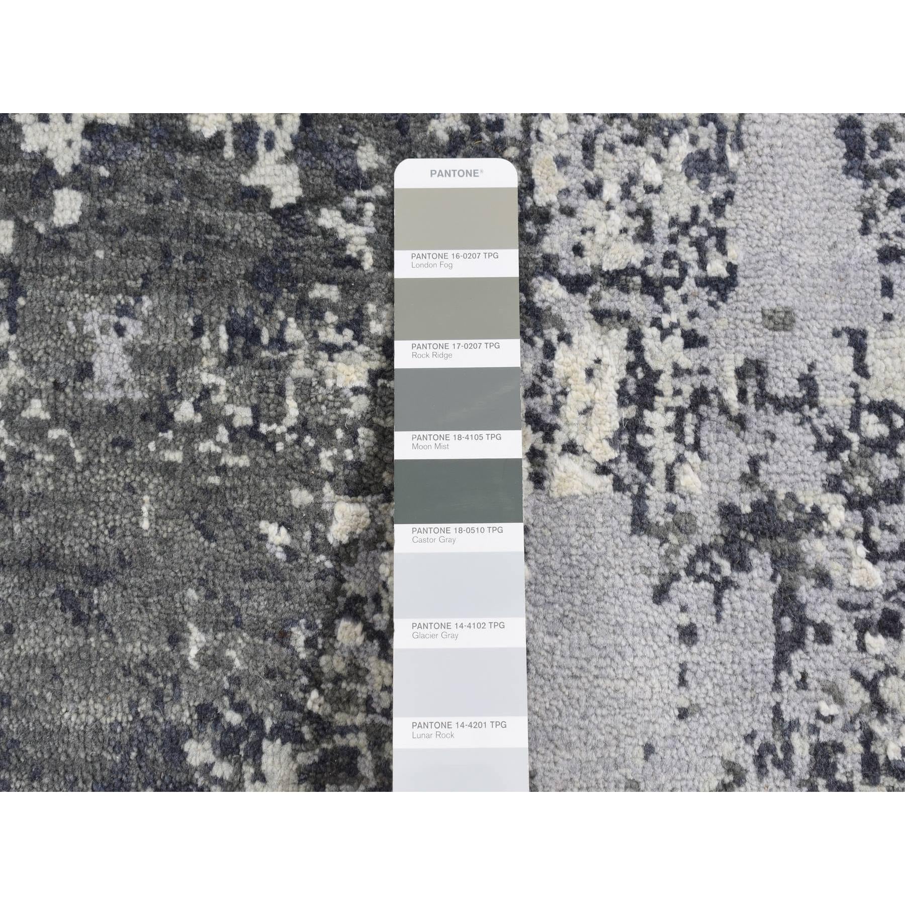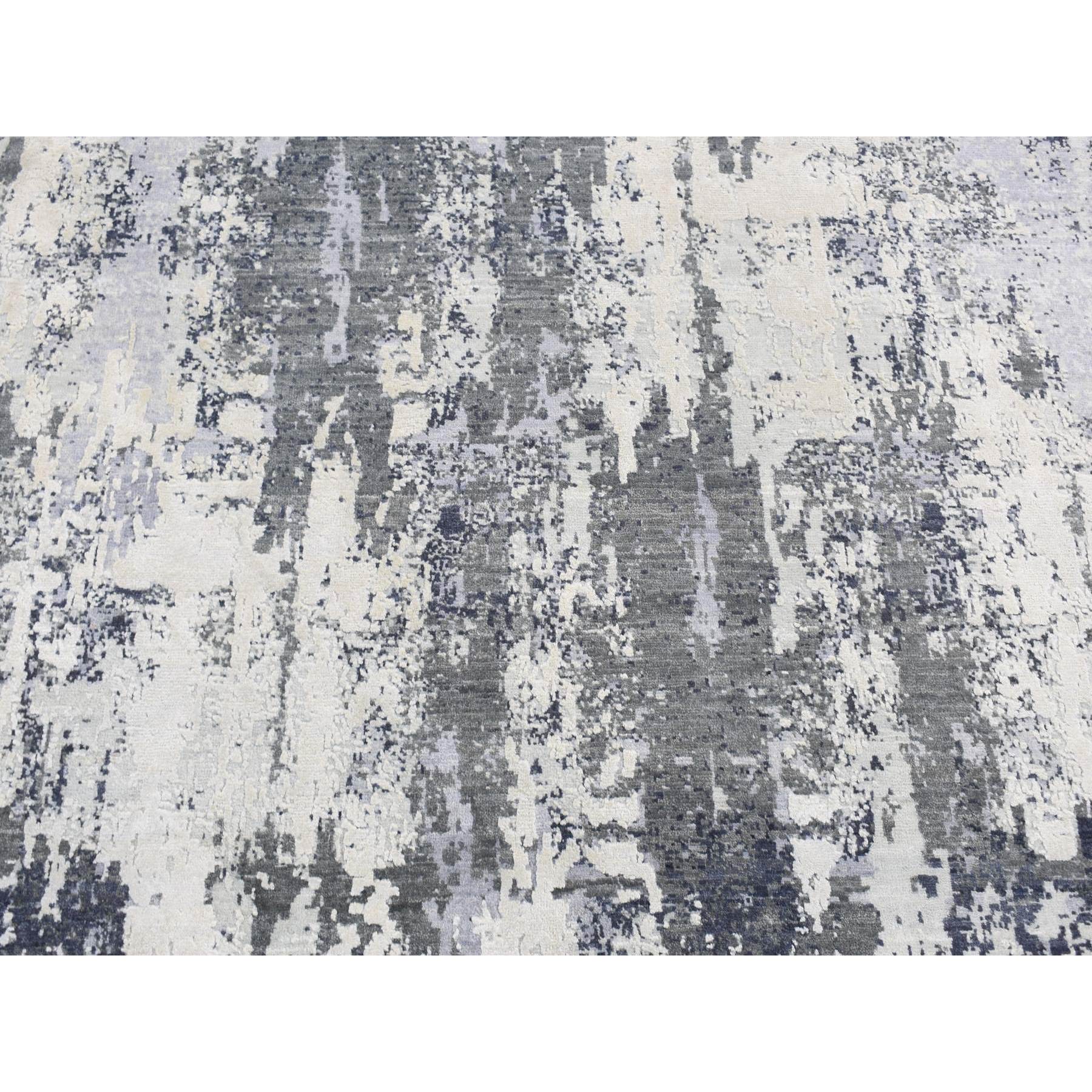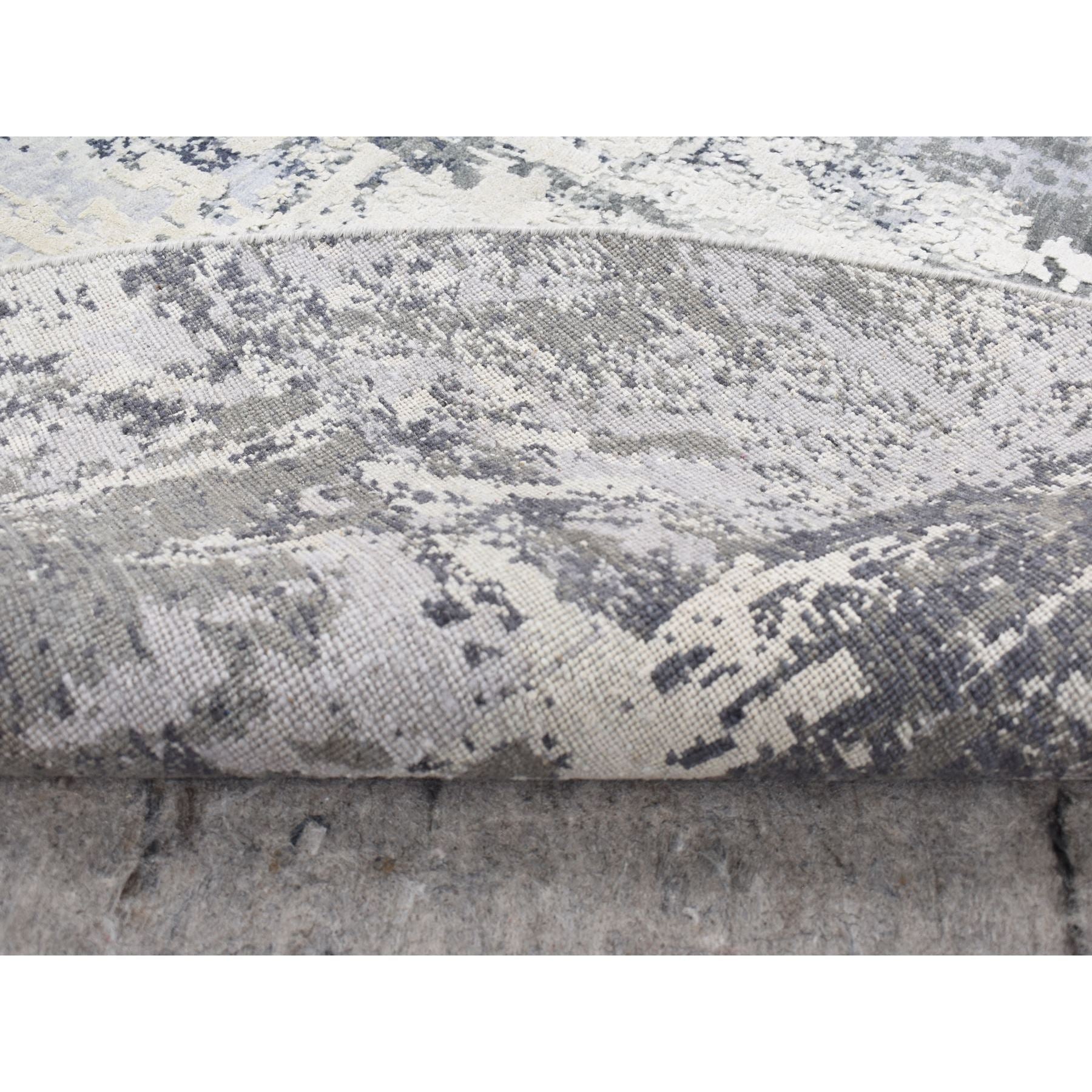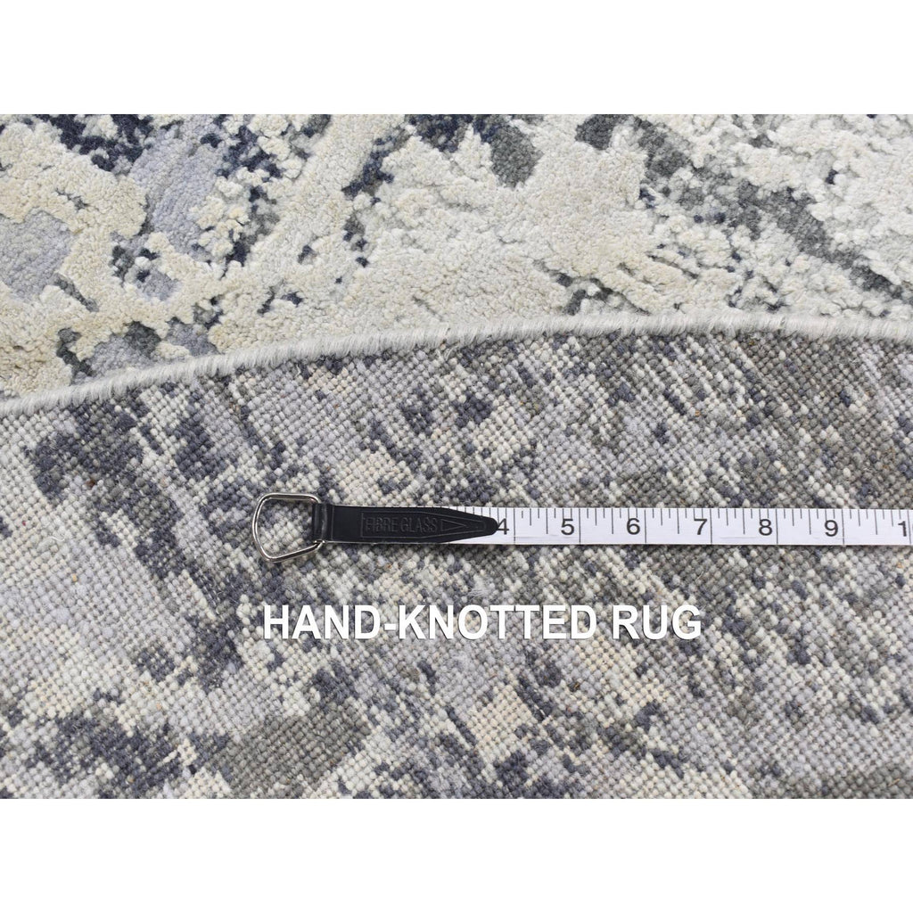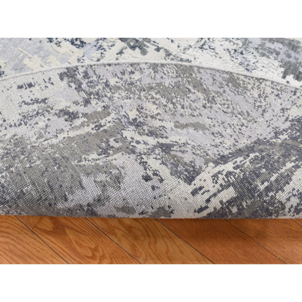 8'1"x8'1" Smokey Gray, Abstract Design, Wool And Pure Silk, Hand Knotted, Round Oriental Rug FWR526458