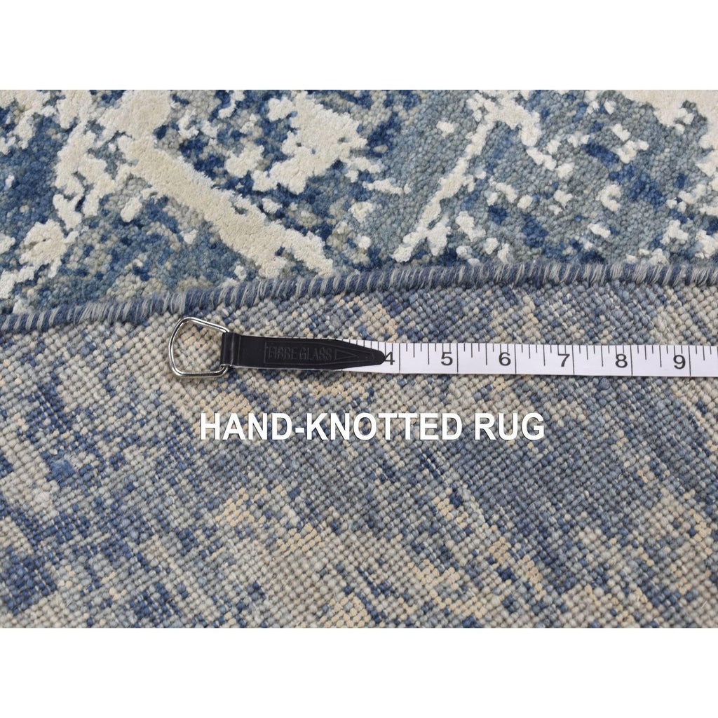8'1"x8'1" Space Cadet Blue, Abstract Design, Wool And Pure Silk, Hand Knotted, Round Oriental Rug FWR526416