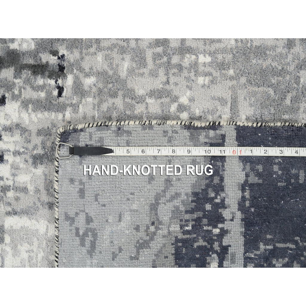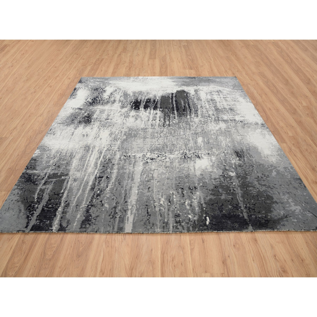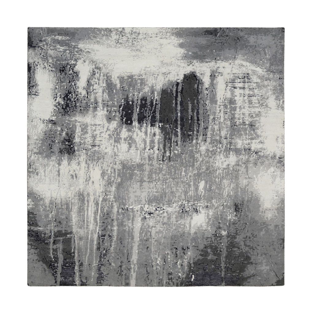 8'1"x8'1" Wool And Silk Ivory Abstract Design Hand Knotted Oriental Square Rug FWR379068