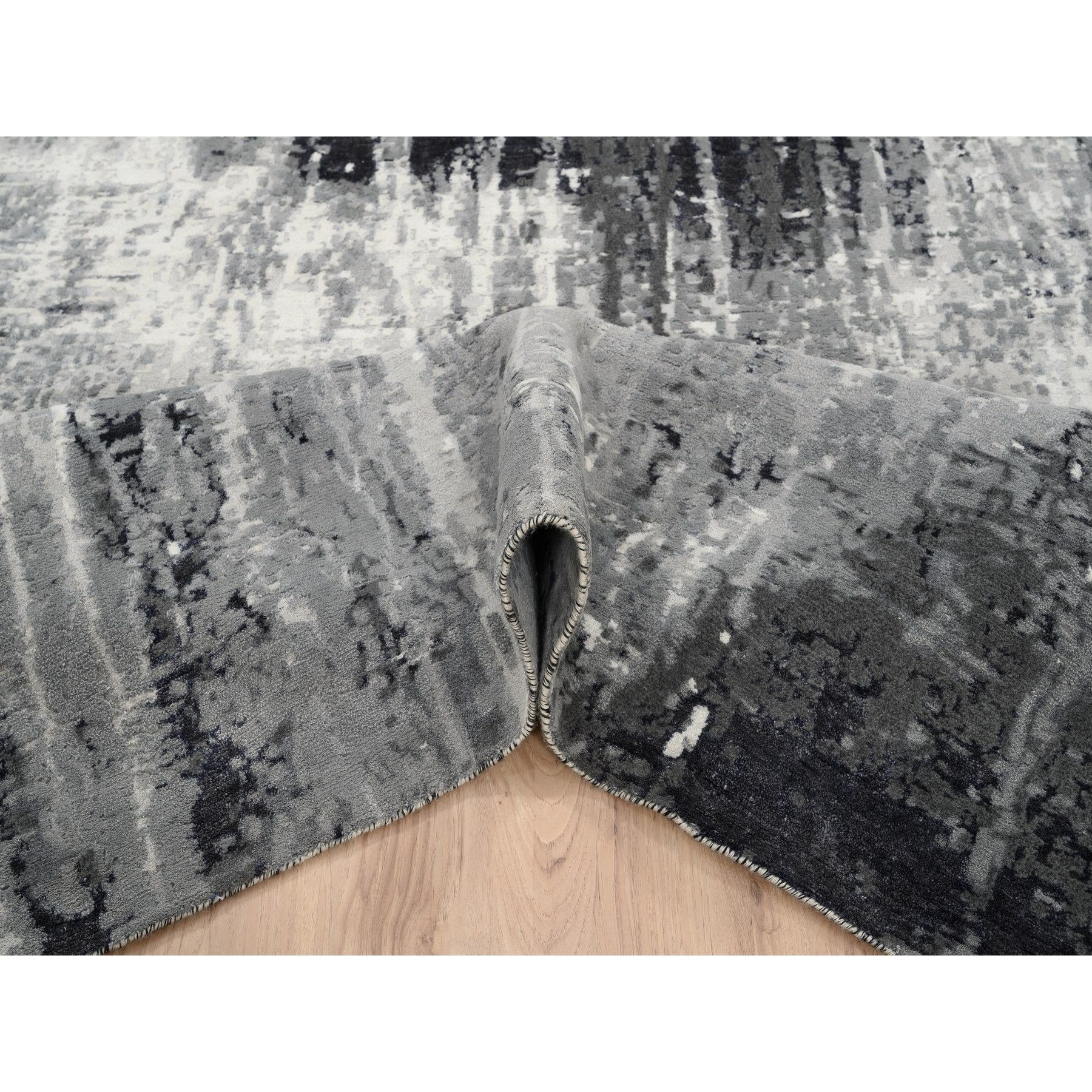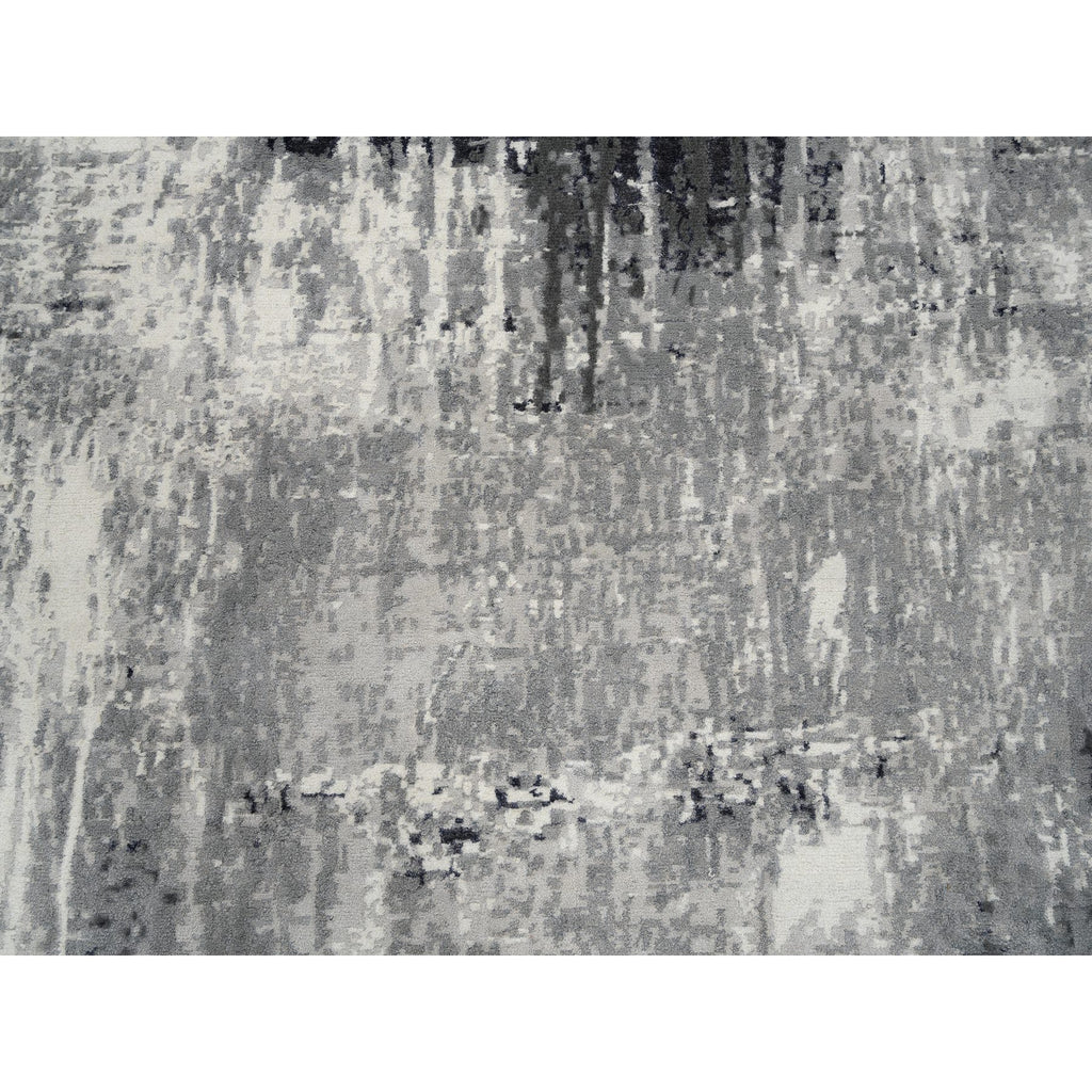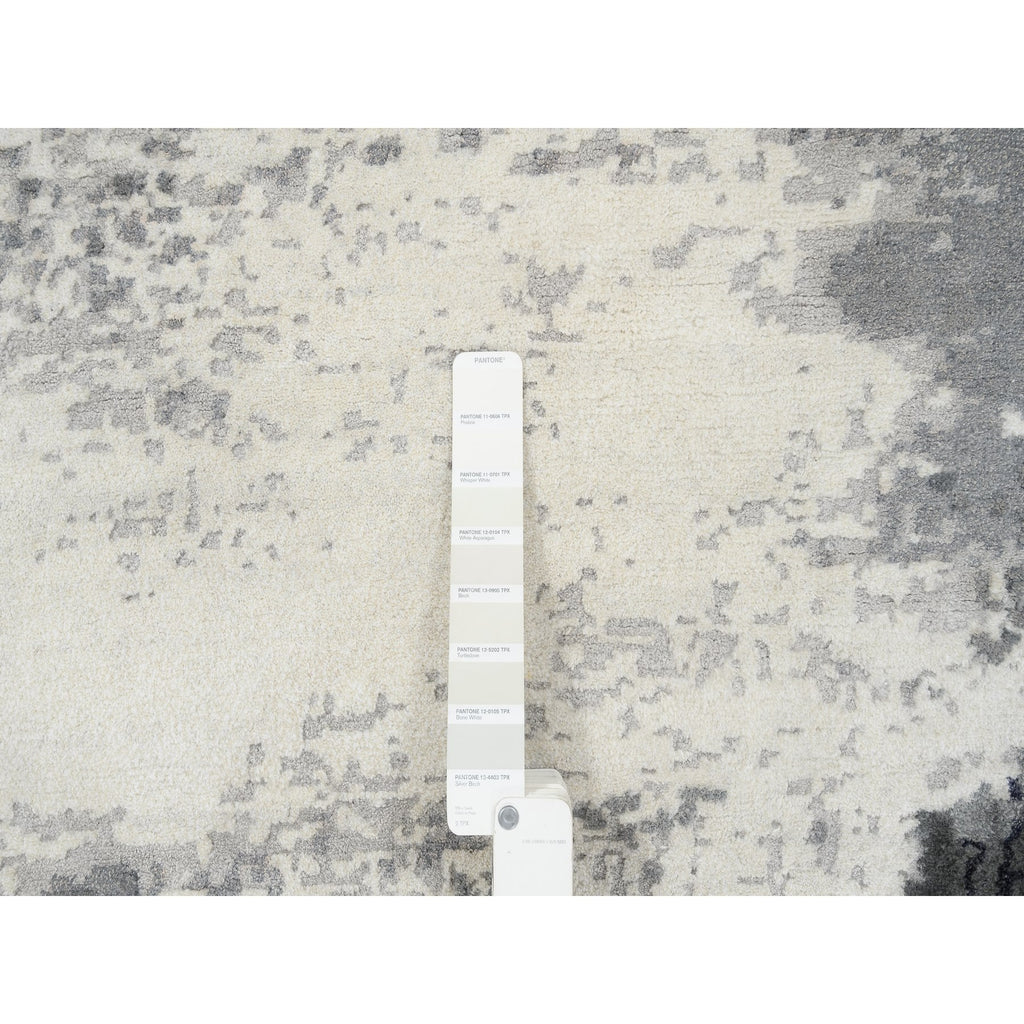 8'1"x8'1" Wool And Silk Ivory Abstract Design Hand Knotted Oriental Square Rug FWR379068