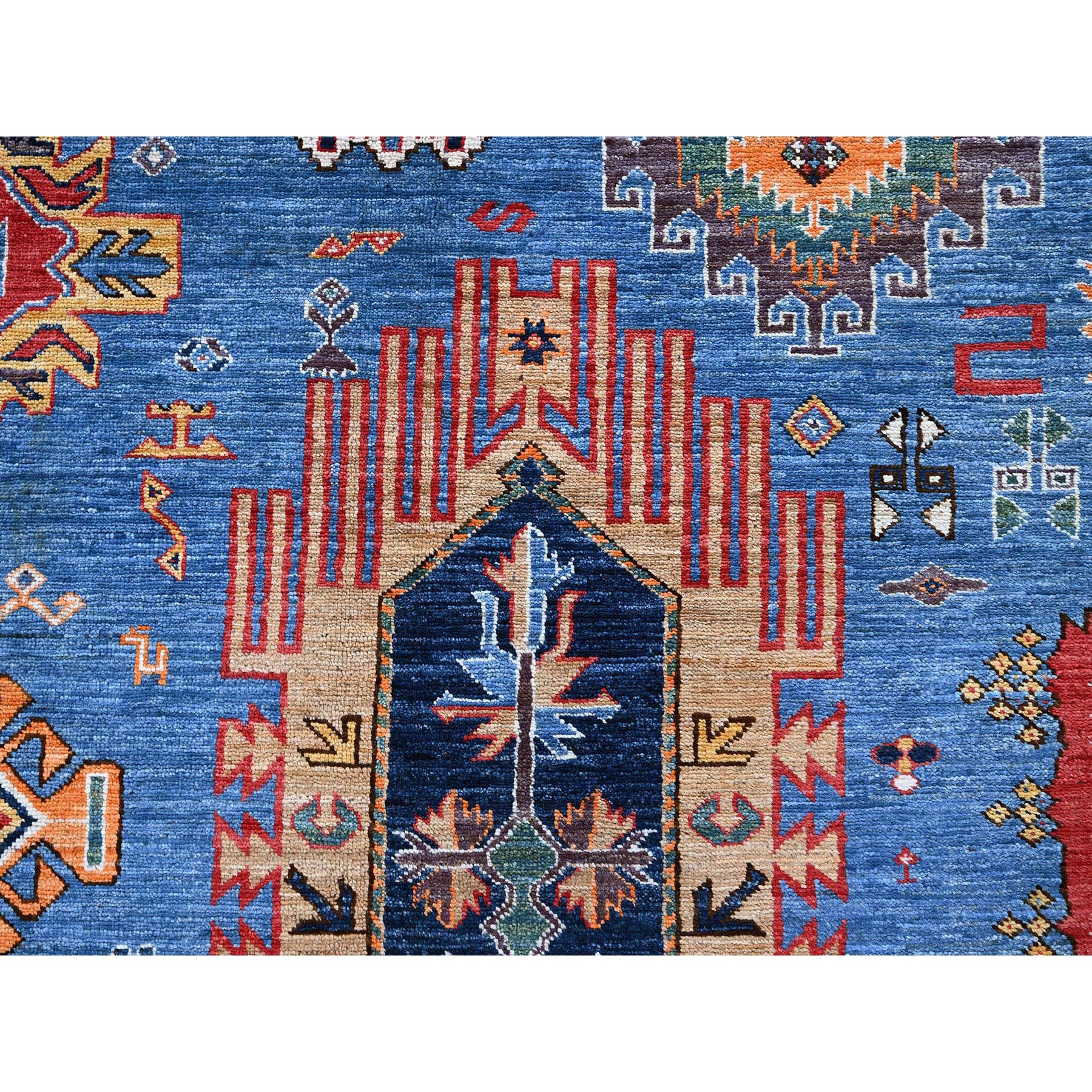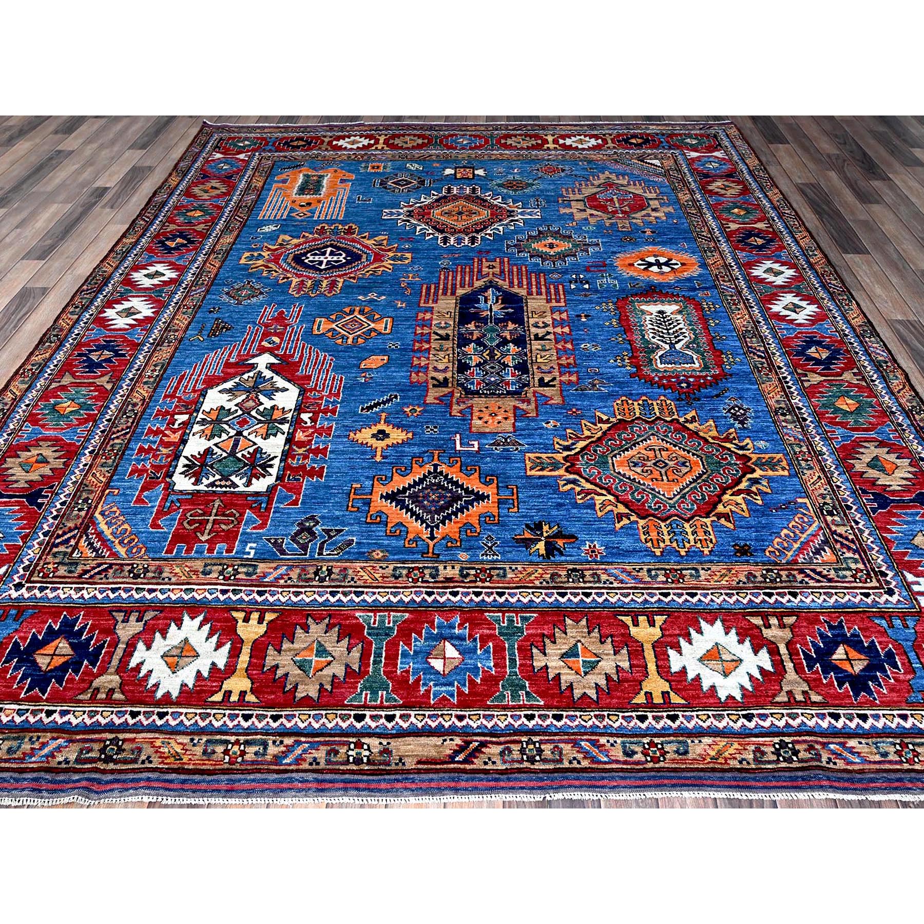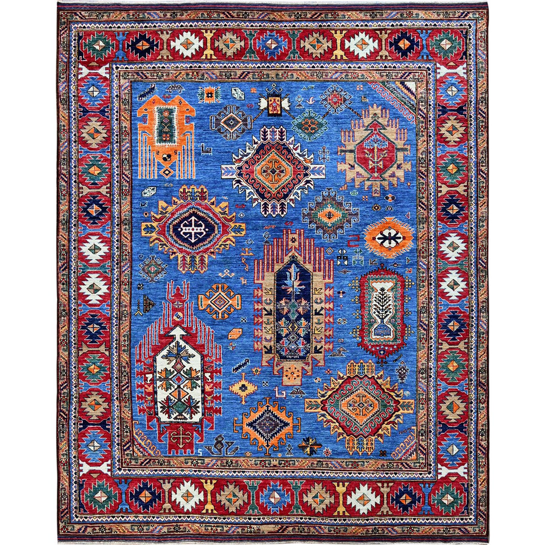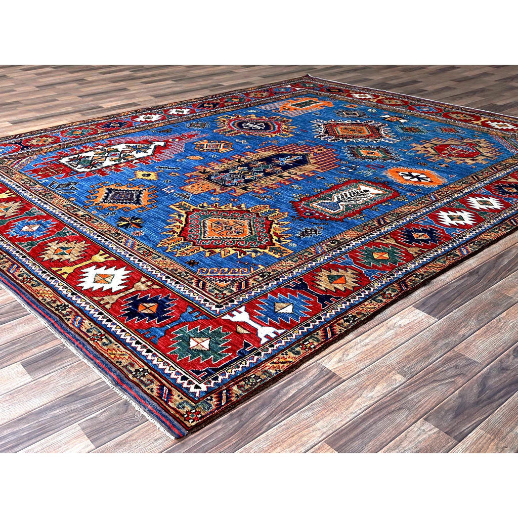 8'1"x9'10" Bayern Blue, Afghan Ersari With Turkish Knot, Caucasian Design Revival, Vegetable Dyes, Hand Knotted, 100% Wool, Oriental Rug FWR3312