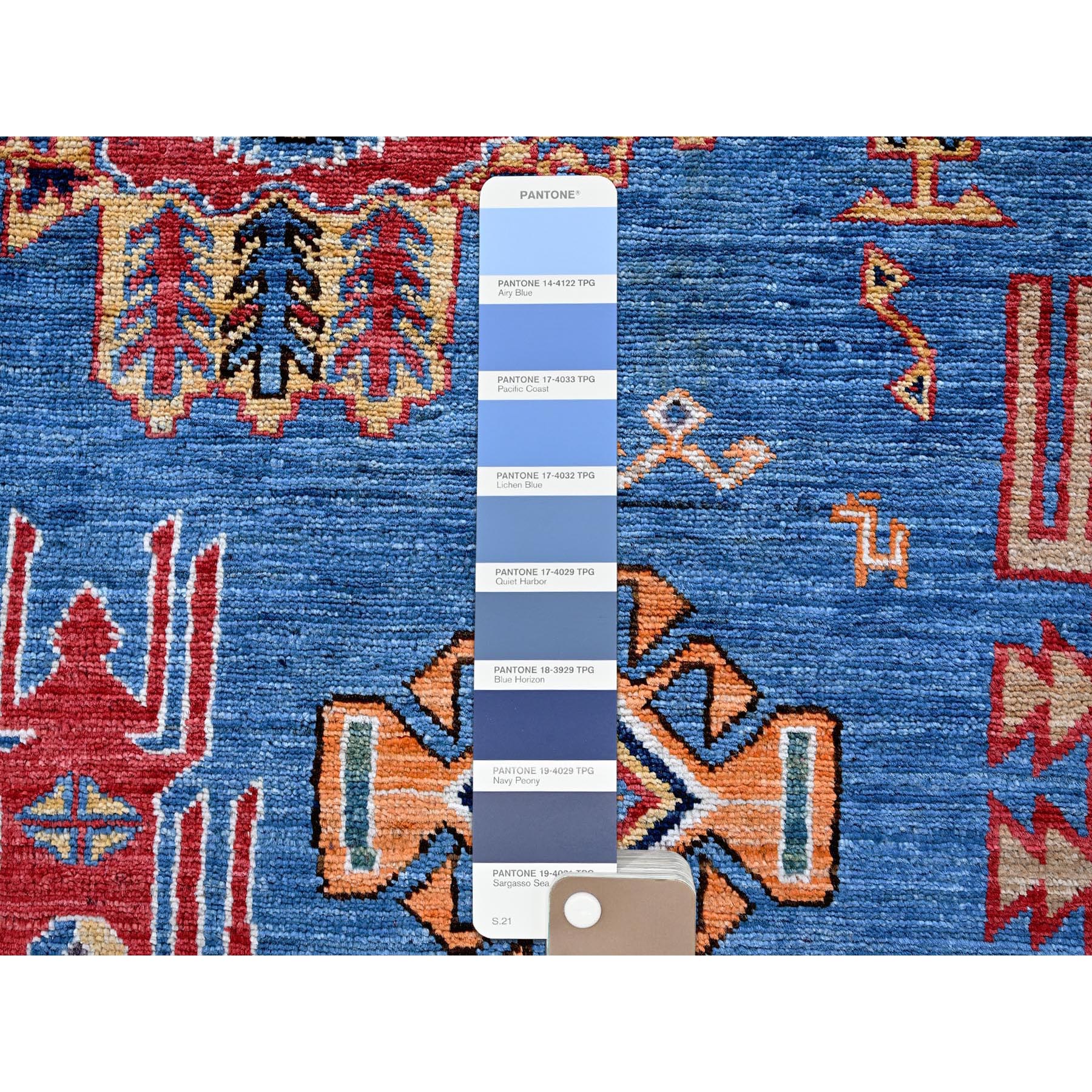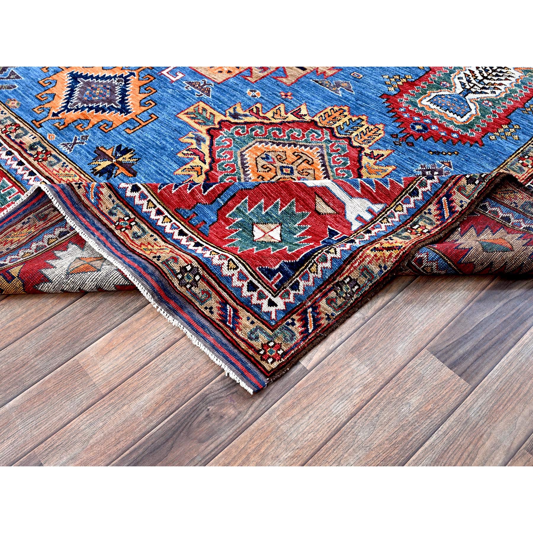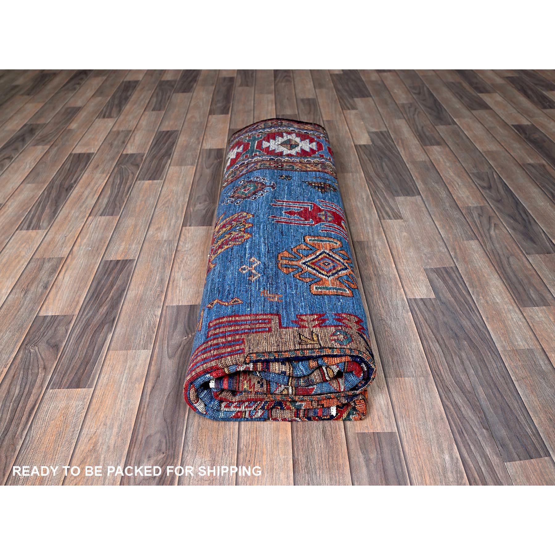 8'1"x9'10" Bayern Blue, Afghan Ersari With Turkish Knot, Caucasian Design Revival, Vegetable Dyes, Hand Knotted, 100% Wool, Oriental Rug FWR3312