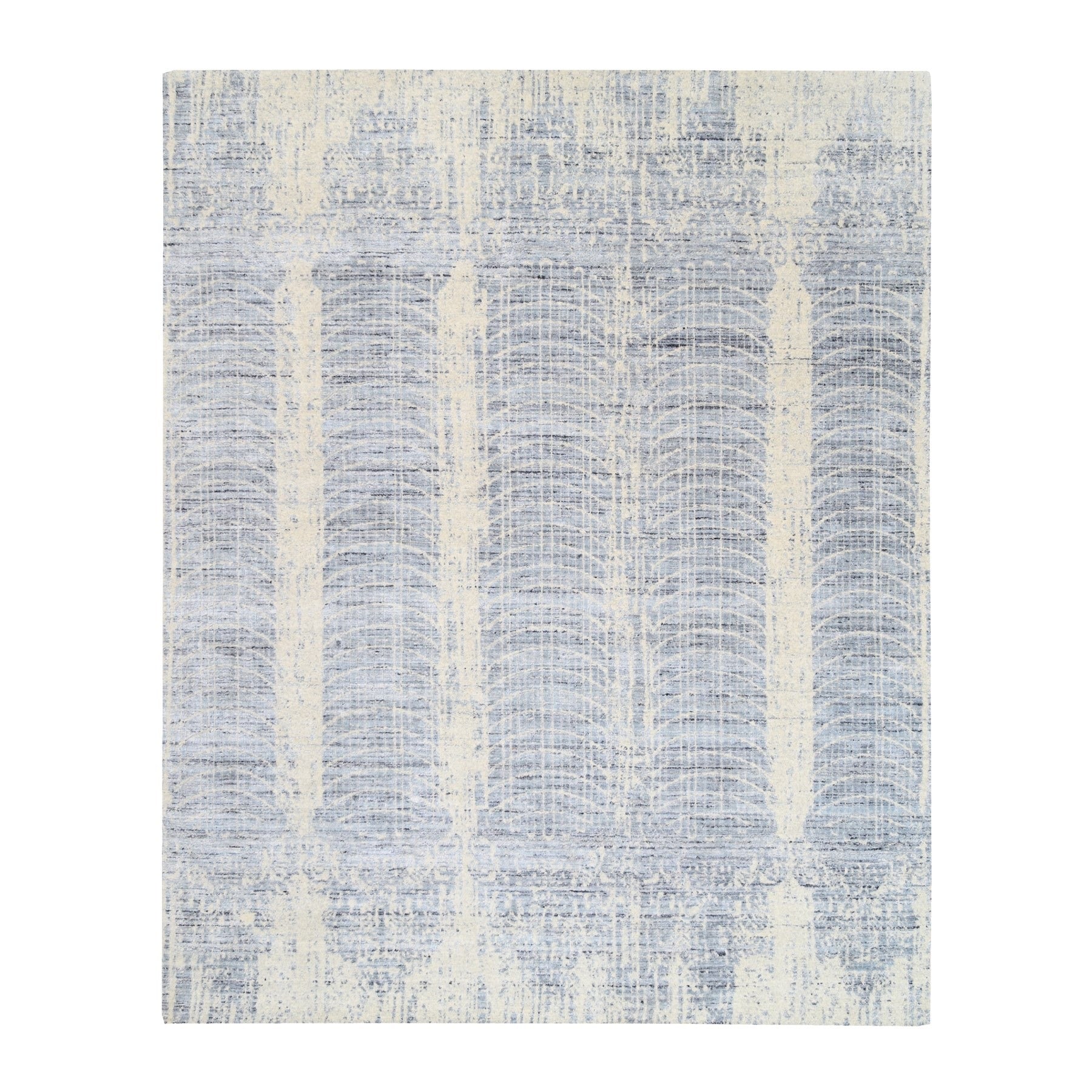 8'1"x9'10" Gray Jacquard Hand Loomed Tone On Tone Transitional Erased Design Wool And Plant Based Silk Oriental Rug FWR373548