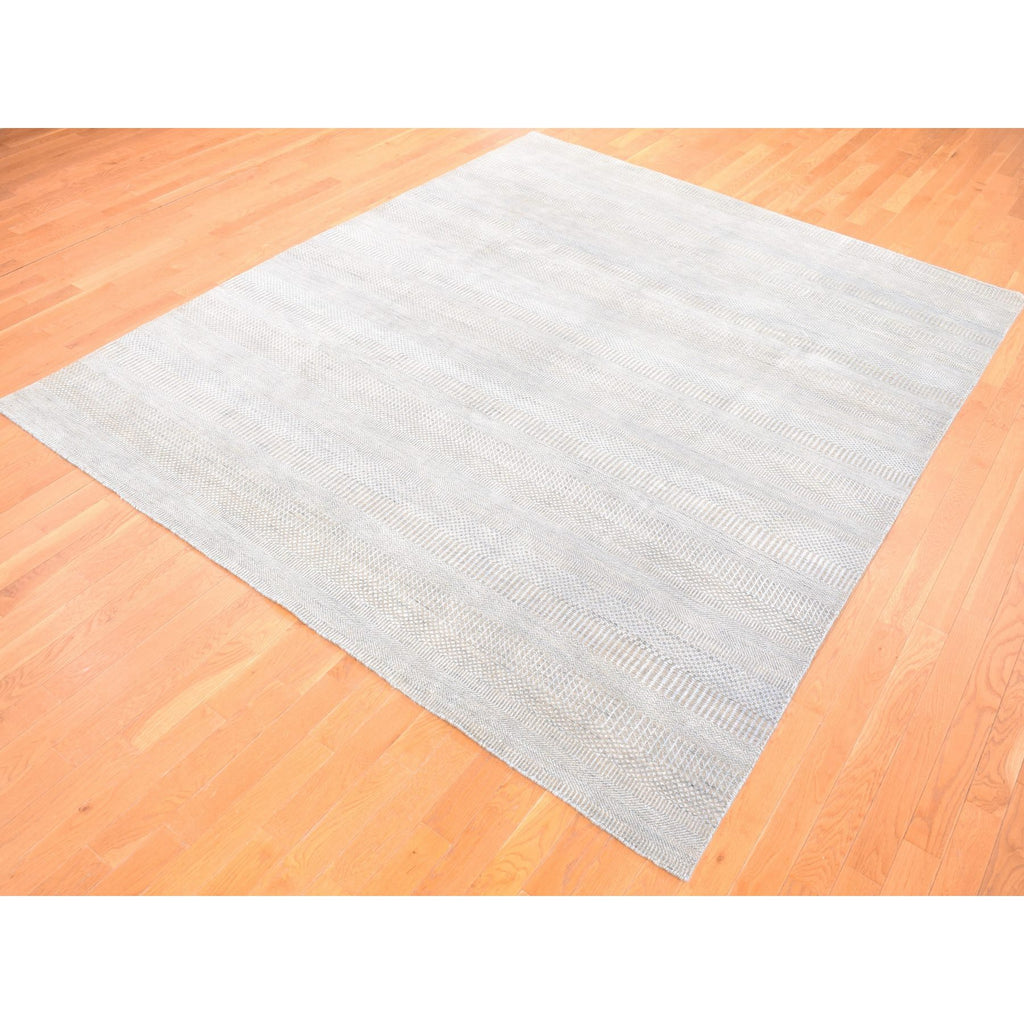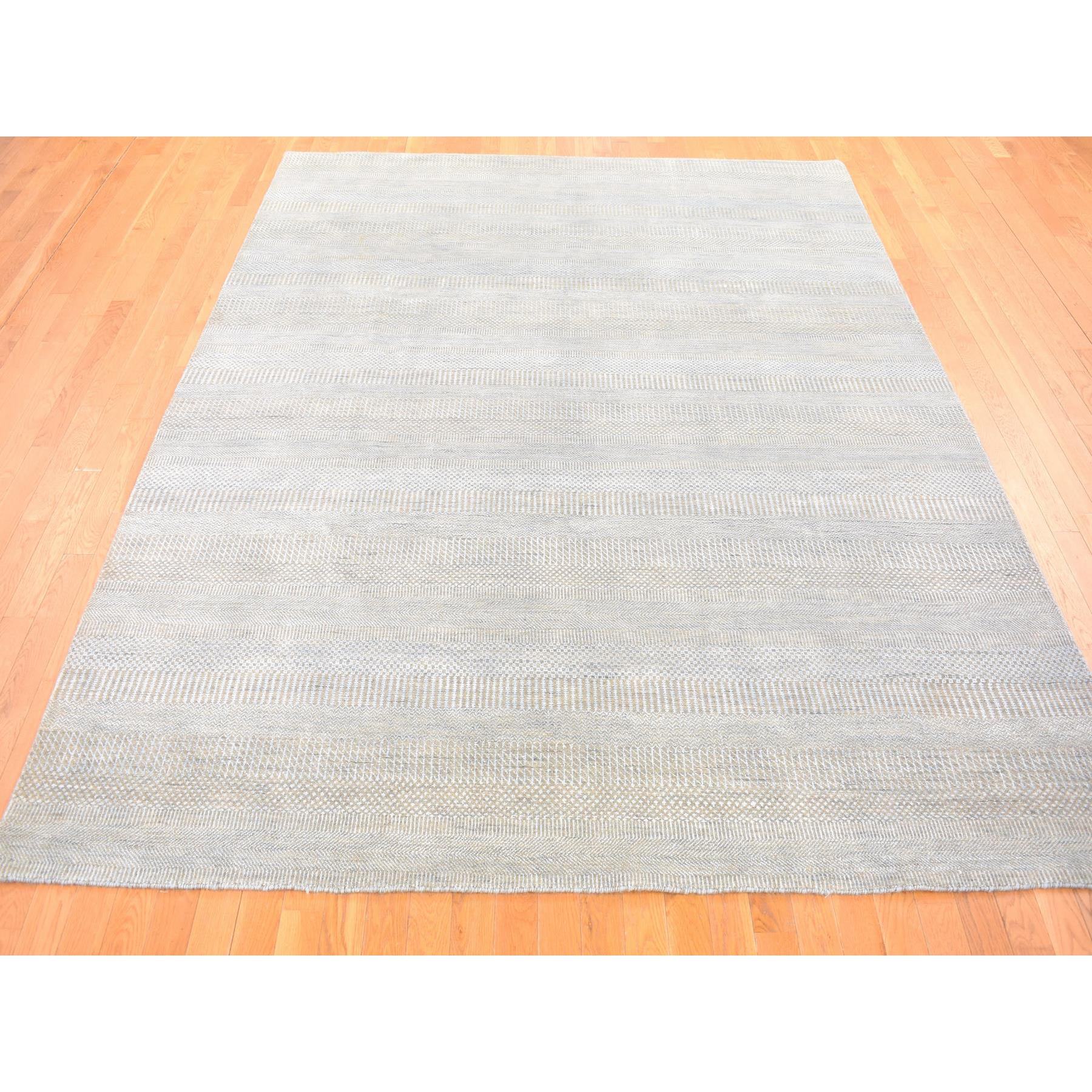 8'1"x9'10" Light Grey, Modern, Hand Knotted, Grass Design, Densely Woven, Wool And Silk, Oriental Rug FWR480390