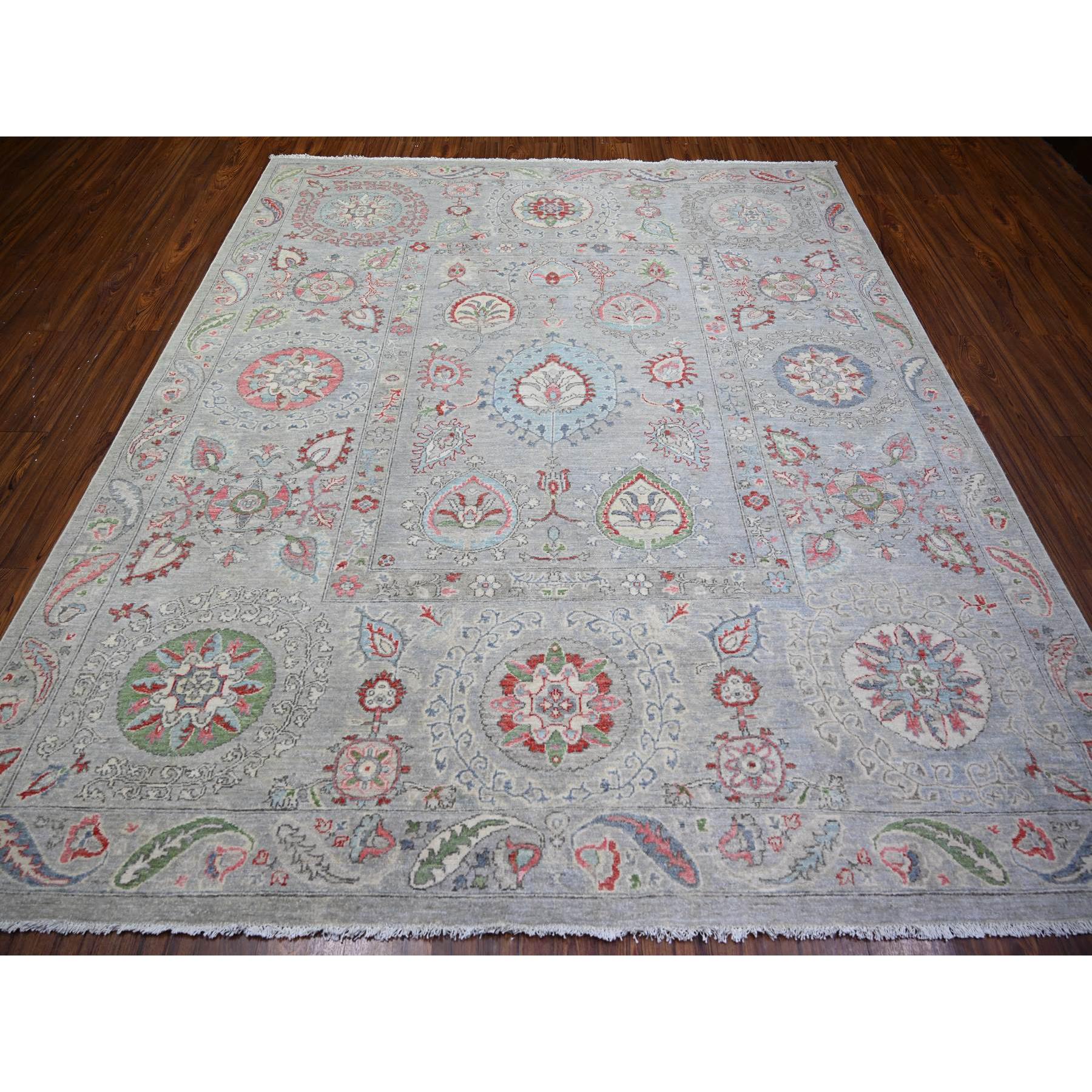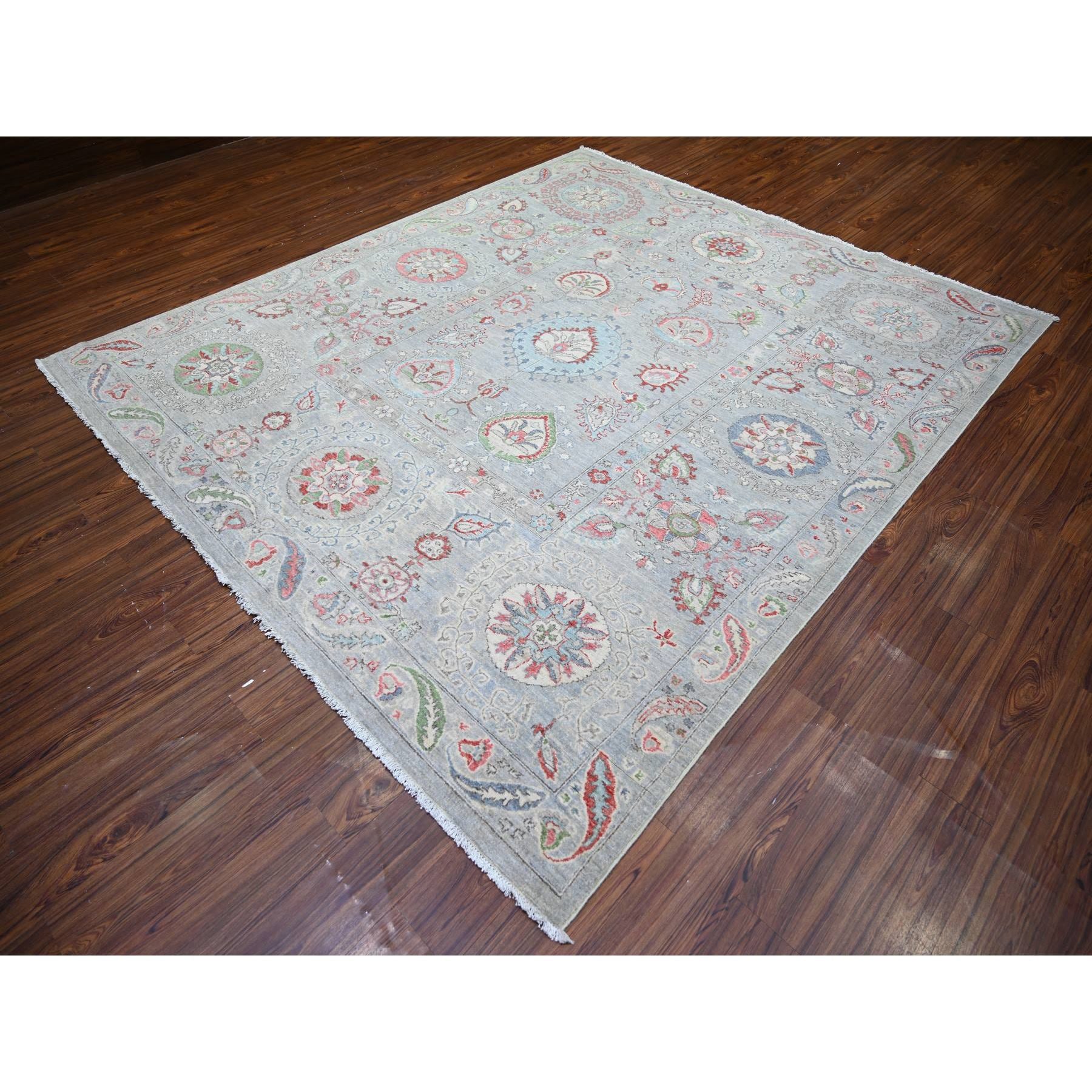 8'1"x9'3" Tan Color, Finer Peshawar With Uzbek Suzani Design, Densely Woven Natural Dyes, Pure Wool Hand Knotted, Oriental Rug FWR439476