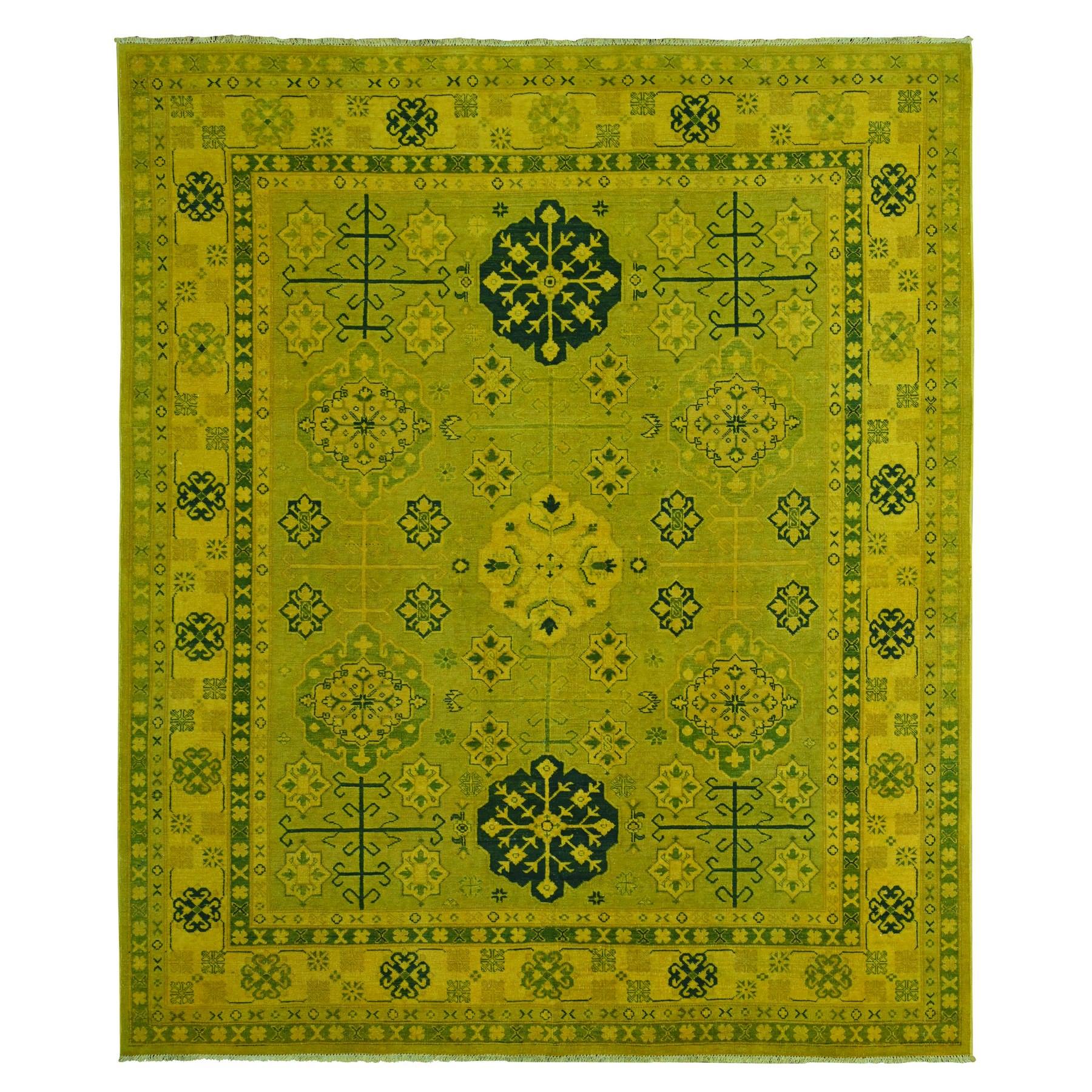 8'1"x9'5" Golden Yellow, Overdyed Kazak With All Over Star Design, 100% Wool, Hand Knotted, Oriental Rug FWR122688
